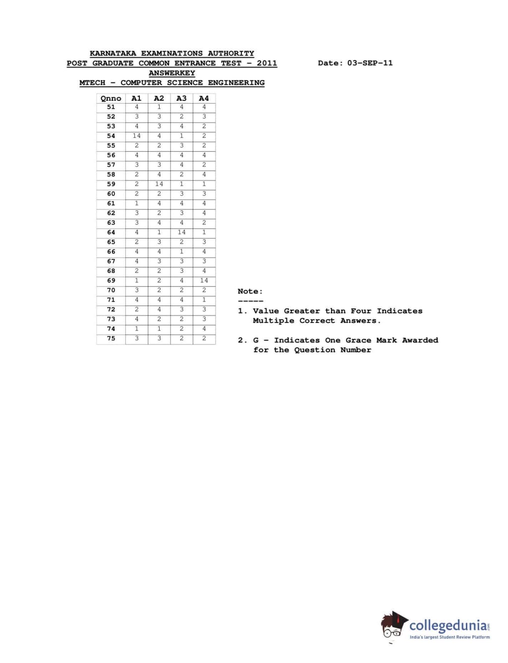 | Karnataka PGCET 2011 Computer Science and Engineering Question Paper PDF | Karnataka PGCET 2011 Computer Science and Engineering Answer Key PDF |