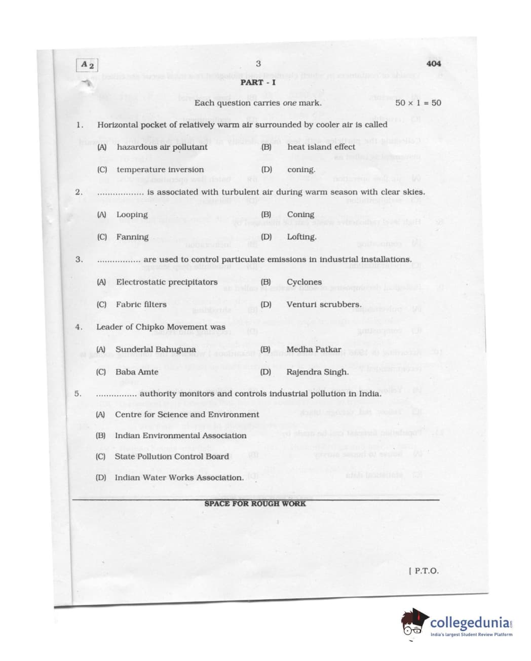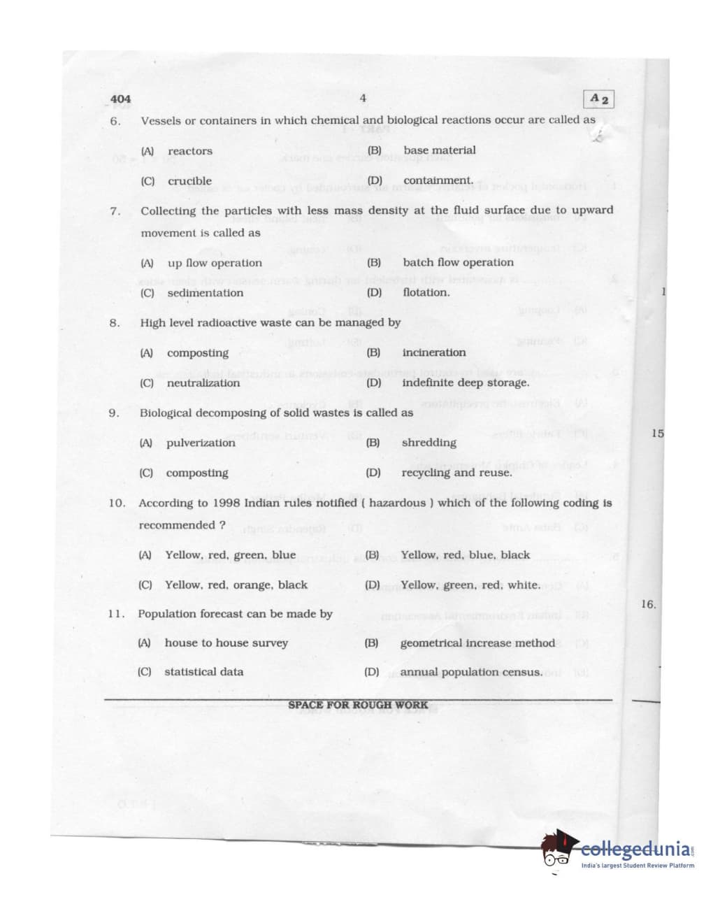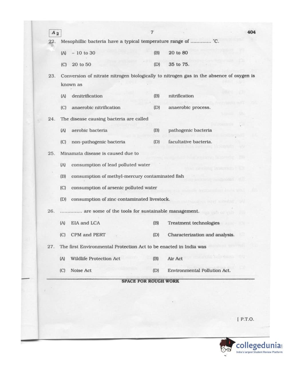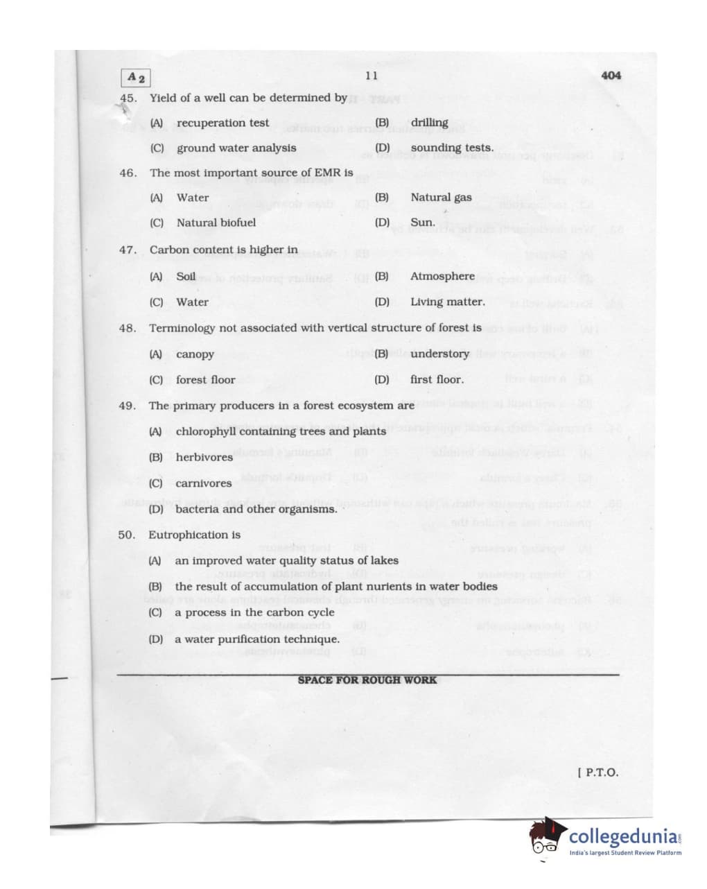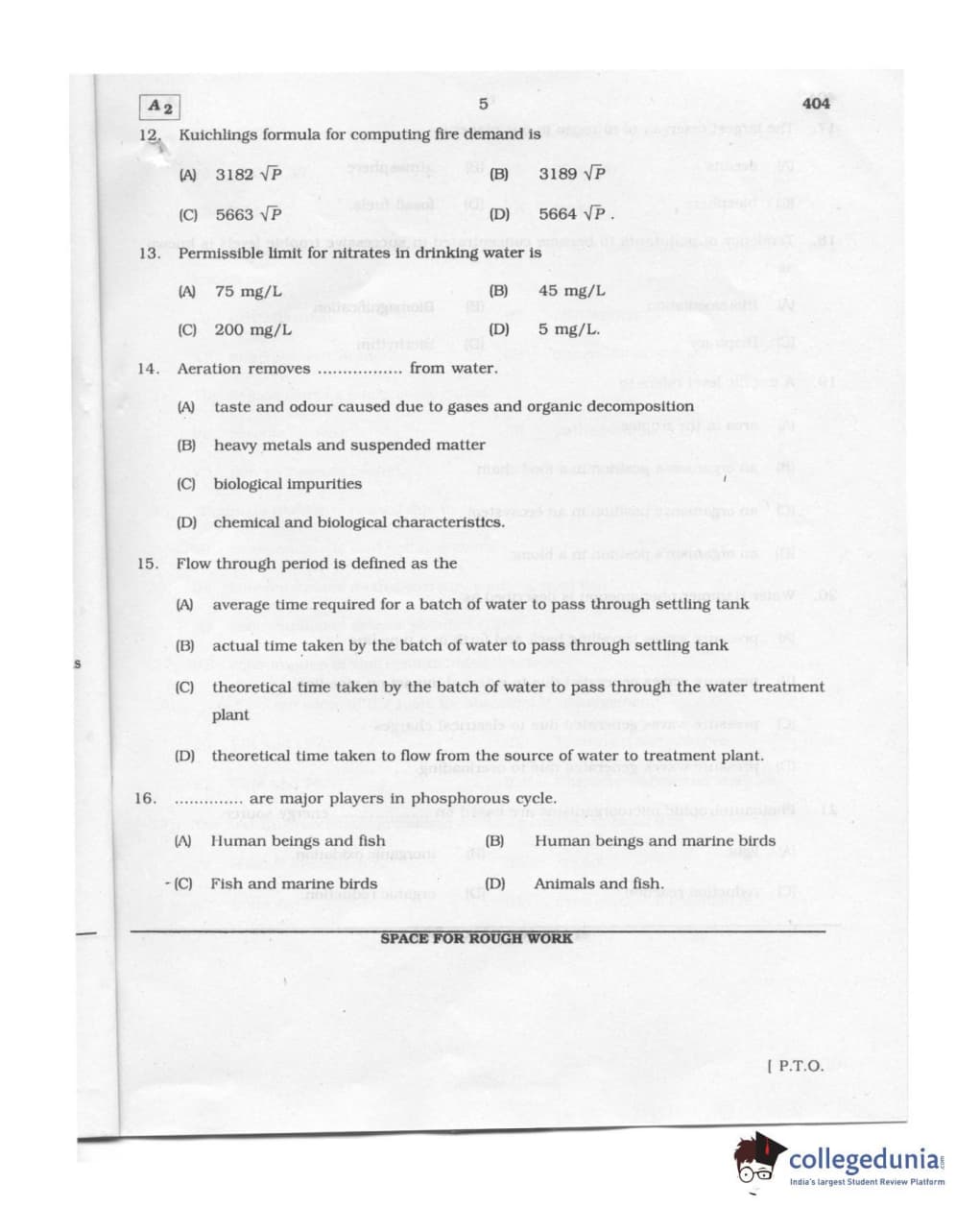 Karnataka PGCET 2011 Environmental Engineering Question paper with answer key pdf conducted on August 6, 2011 from for A-2 is available for download. The exam was successfully organized by Karnataka Examinations Authority (KEA). The question paper comprised a total of 75 questions.