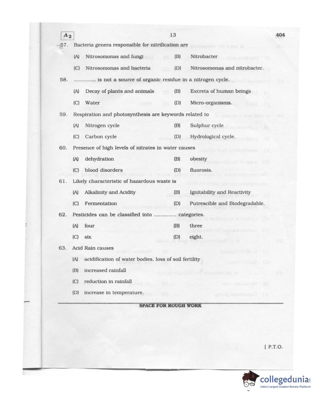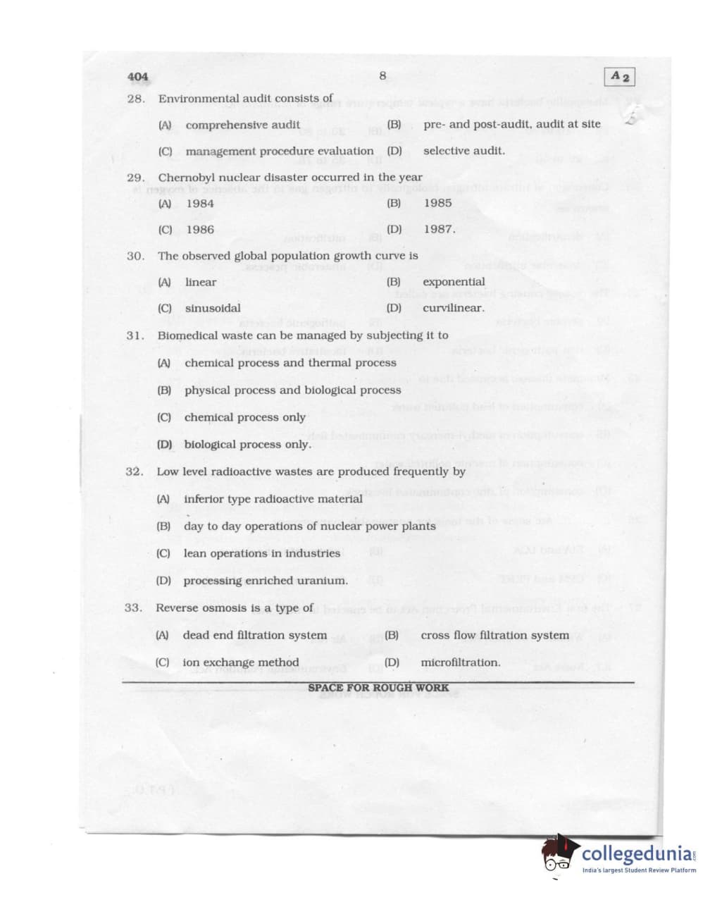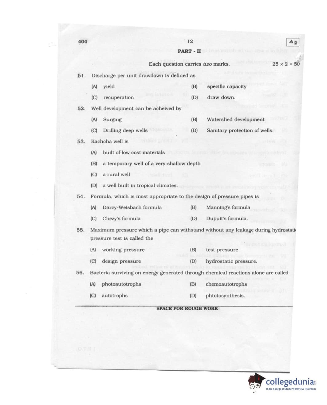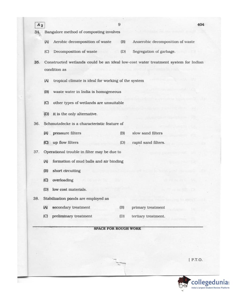 Karnataka PGCET 2011 Environmental Engineering Question paper with answer key pdf conducted on August 6, 2011 from for A-2 is available for download. The exam was successfully organized by Karnataka Examinations Authority (KEA). The question paper comprised a total of 75 questions.