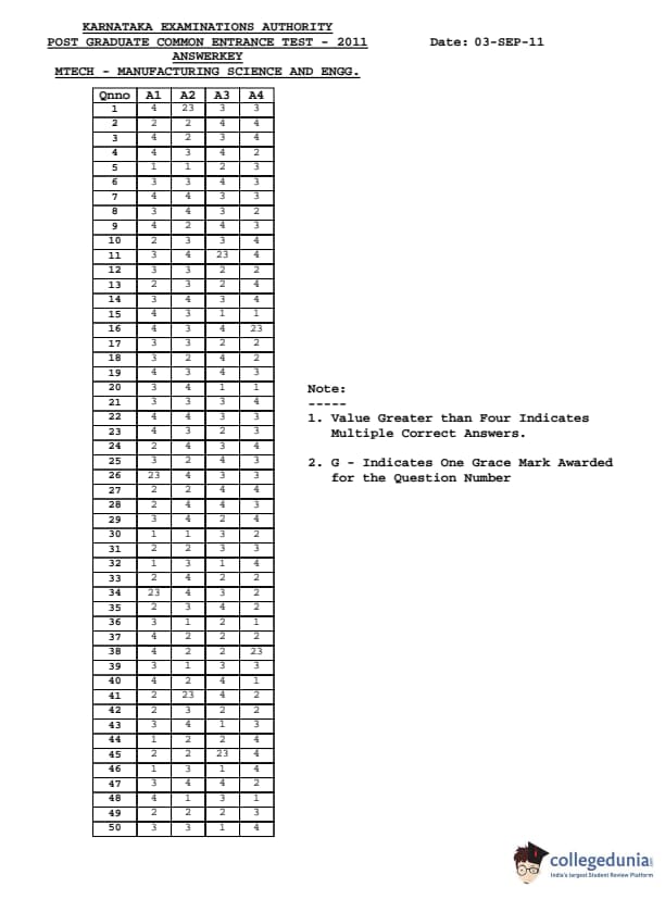 Collegedunia has provided Karnataka PGCET Previous Year Question paper pdf with answer key in the links given below: