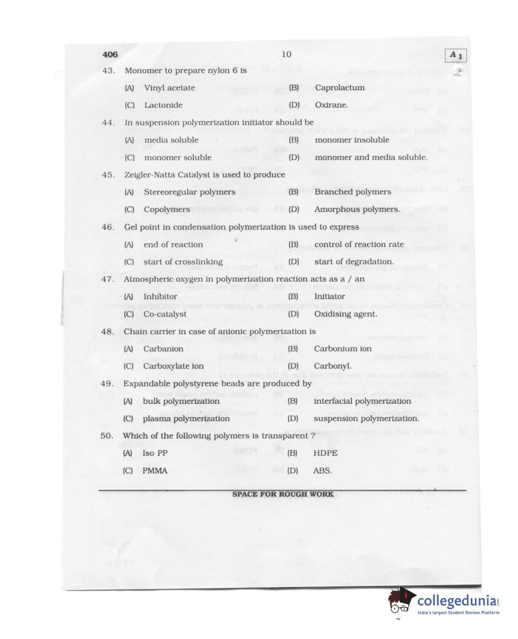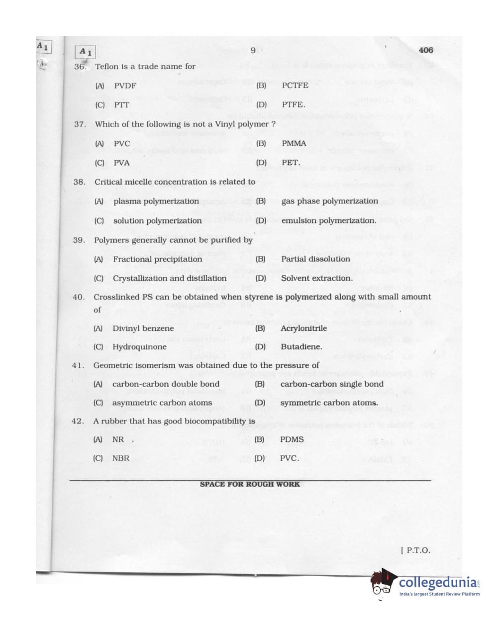 Karnataka PGCET 2011 Polymer Science and Technology Question Paper with Answer Key PDFs (August 6- Morning Session)