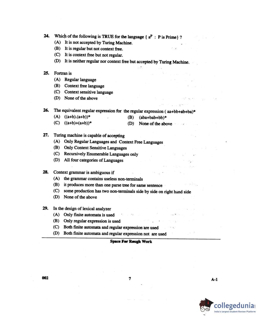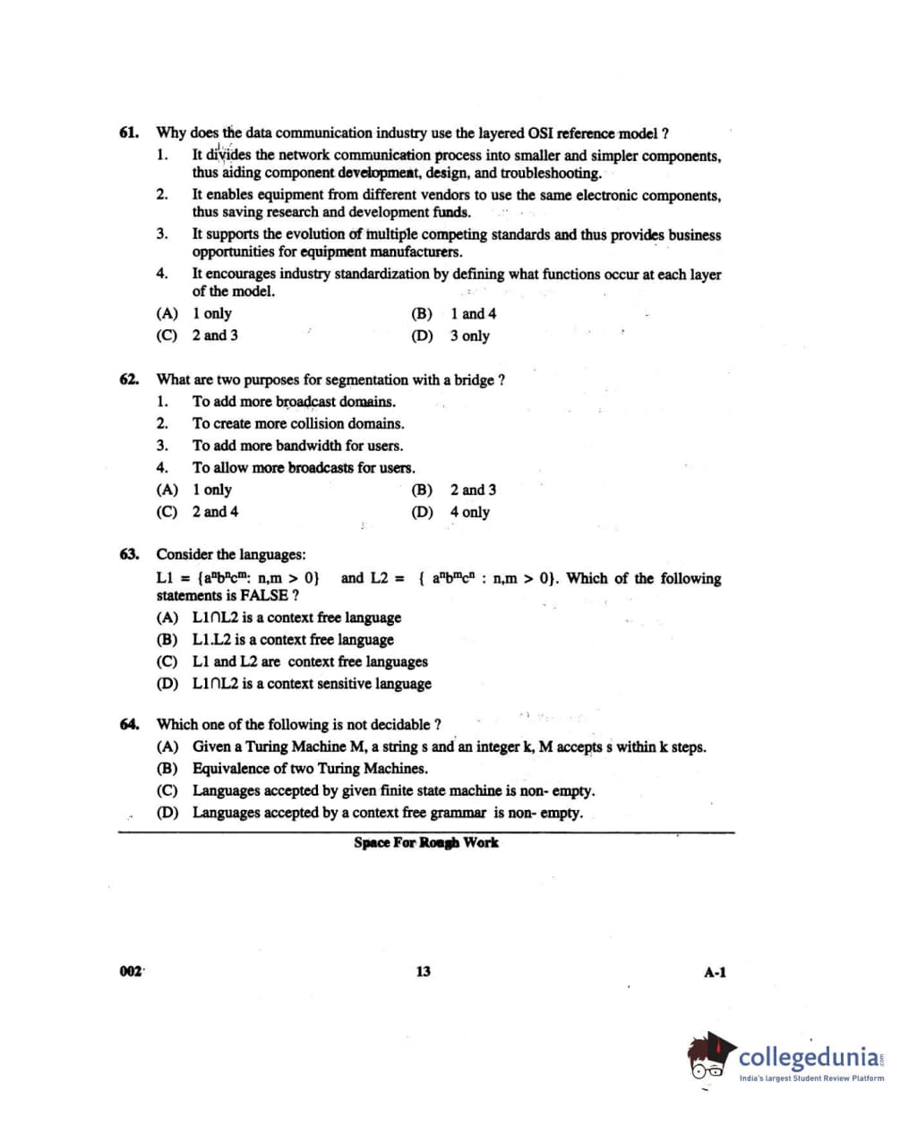 Karnataka PGCET 2013 Computer Science and Engineering Question Paper with Answer Key PDF for Forenoon Session