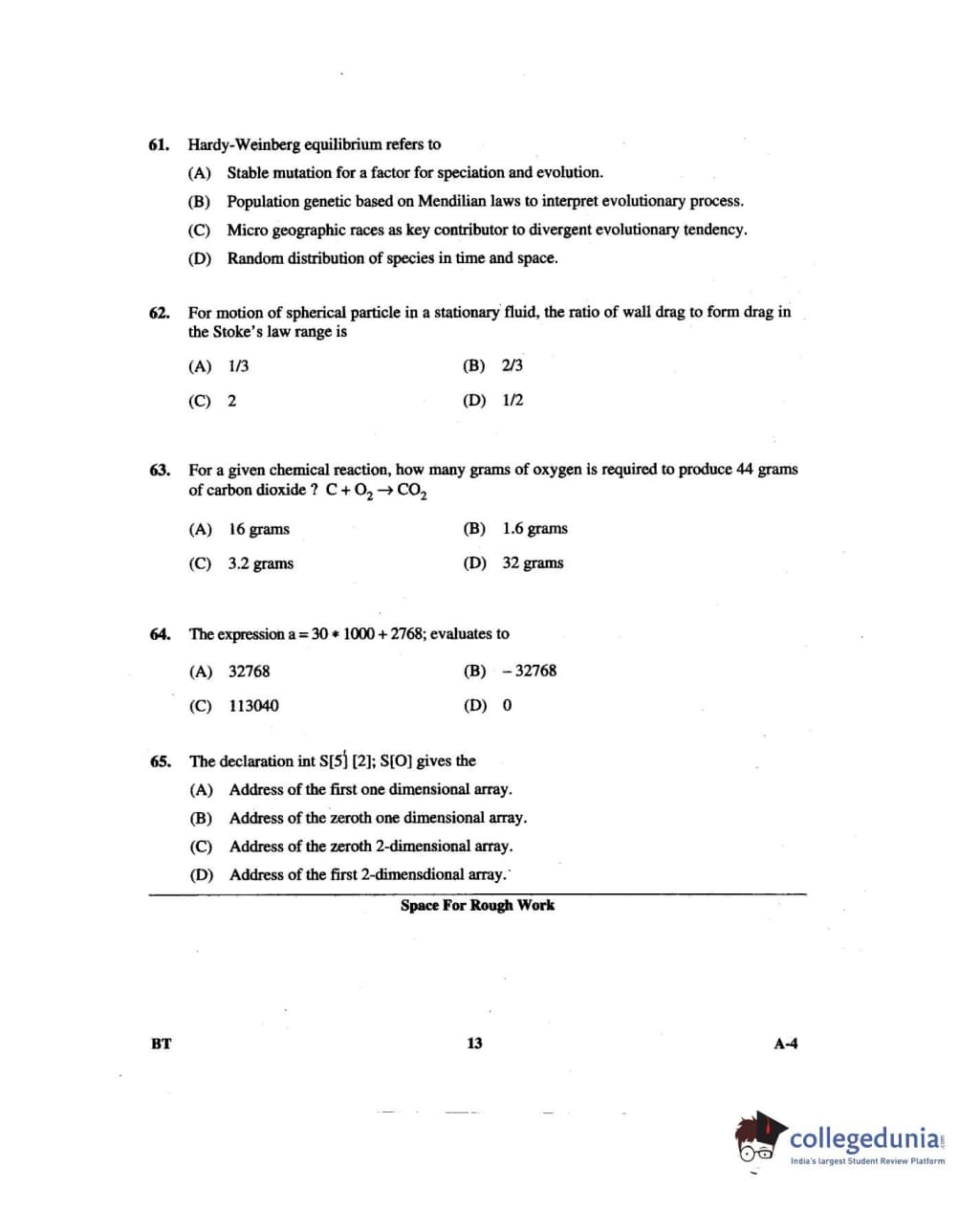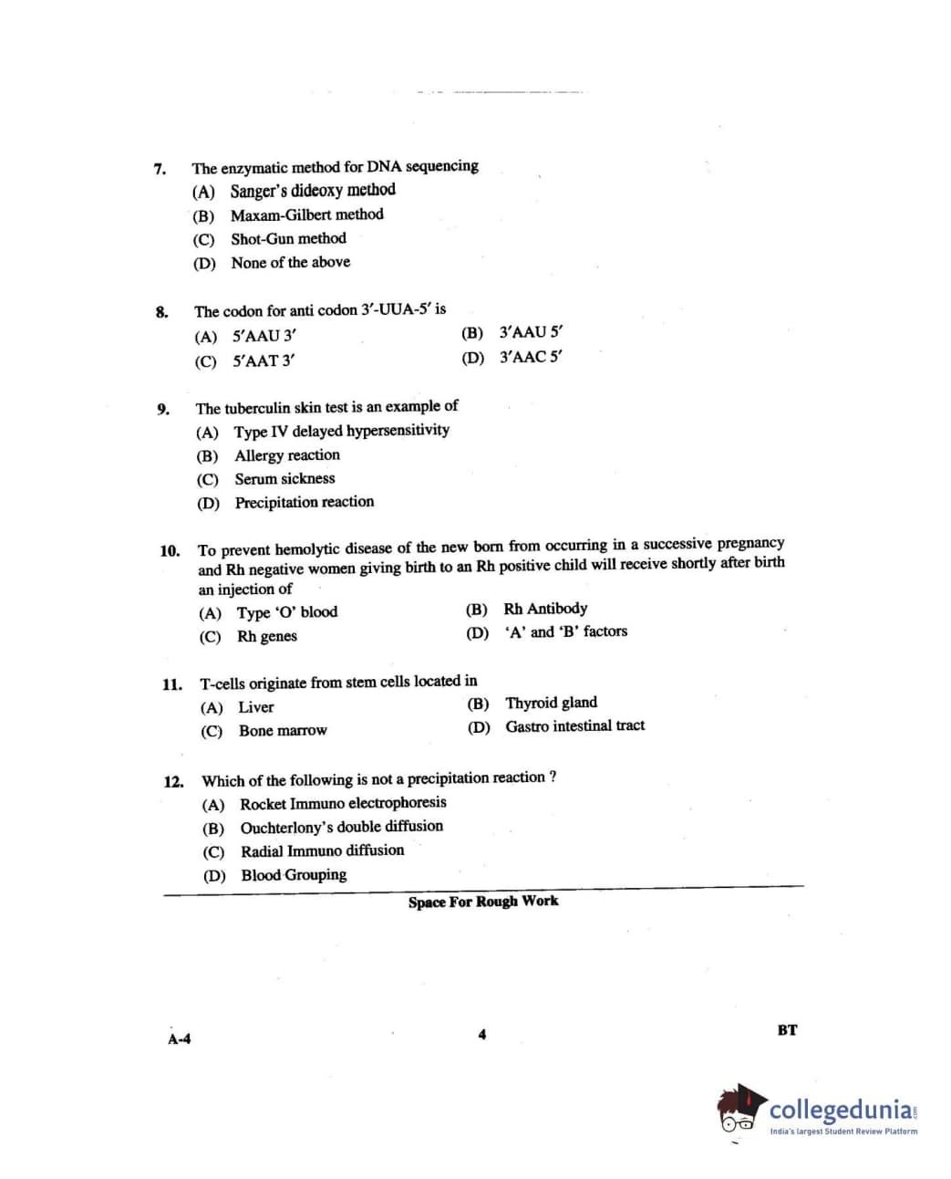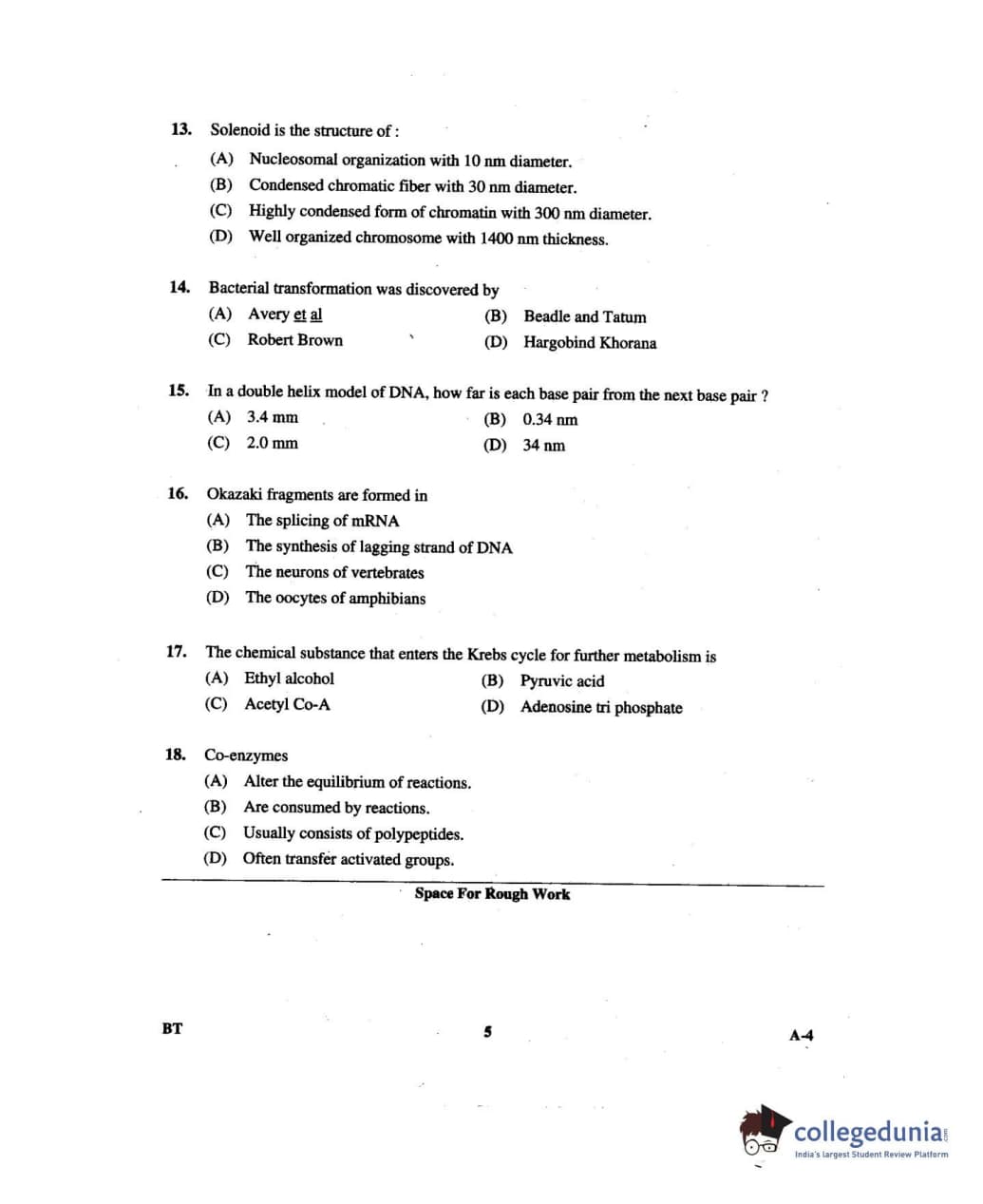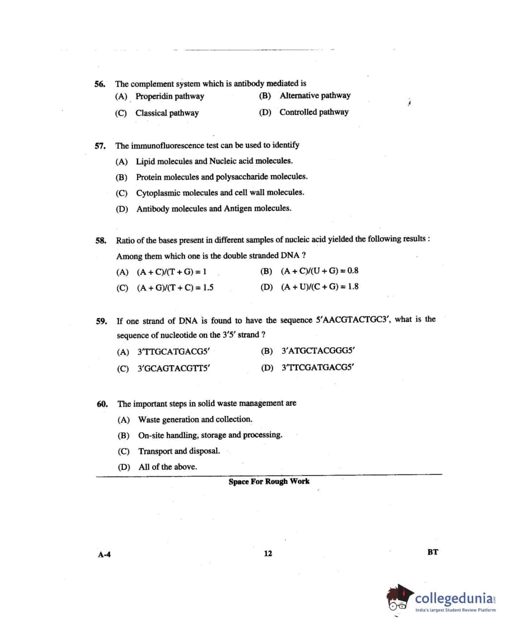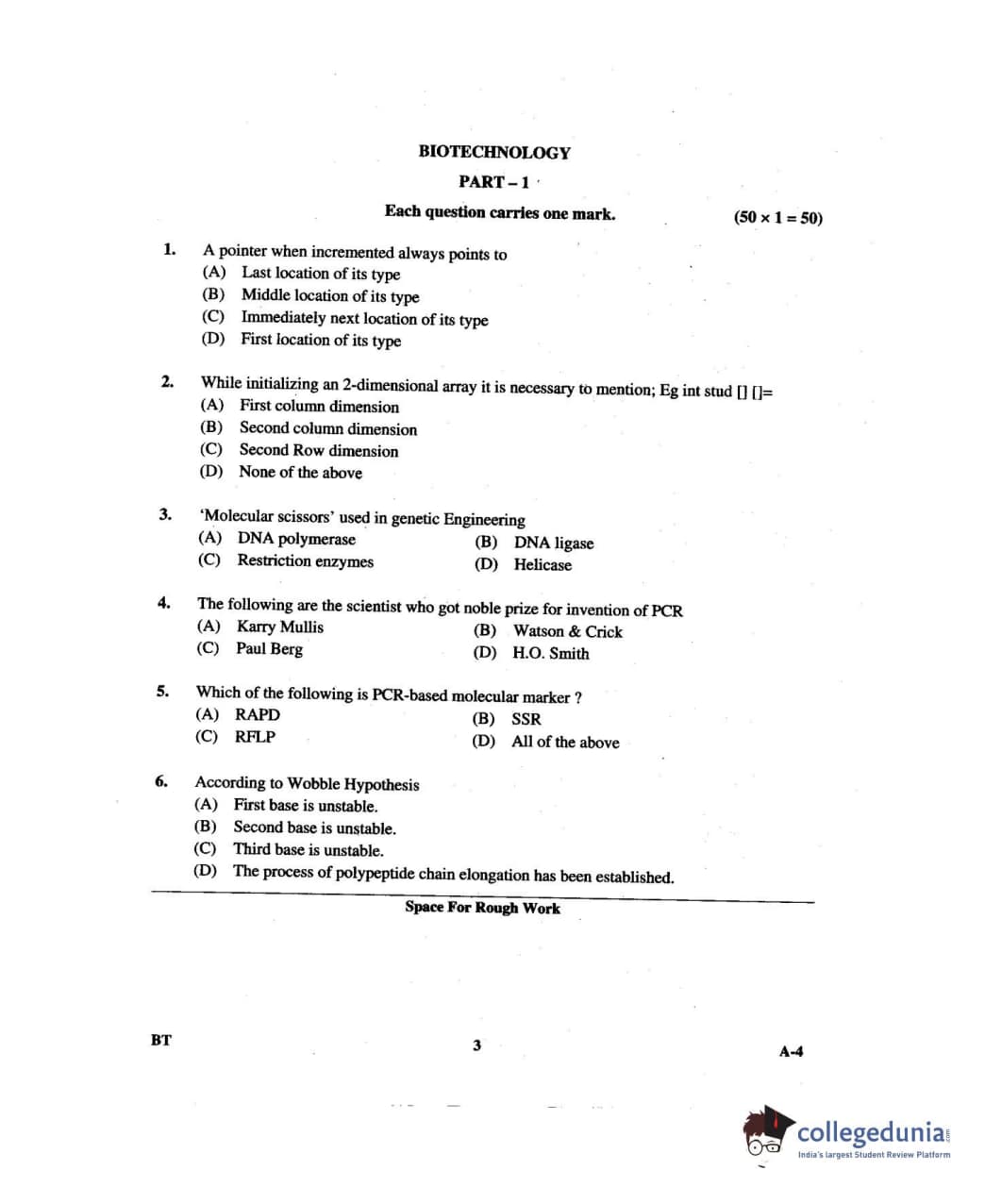 Karnataka PGCET 2014 Biotechnology Question paper with answer key pdf for A-4 is available for download. The exam was successfully organized by Karnataka Examinations Authority (KEA). The question paper comprised a total of 75 questions.