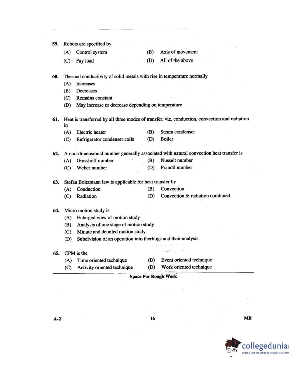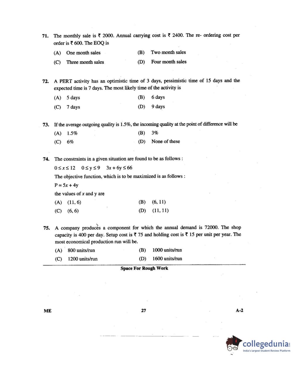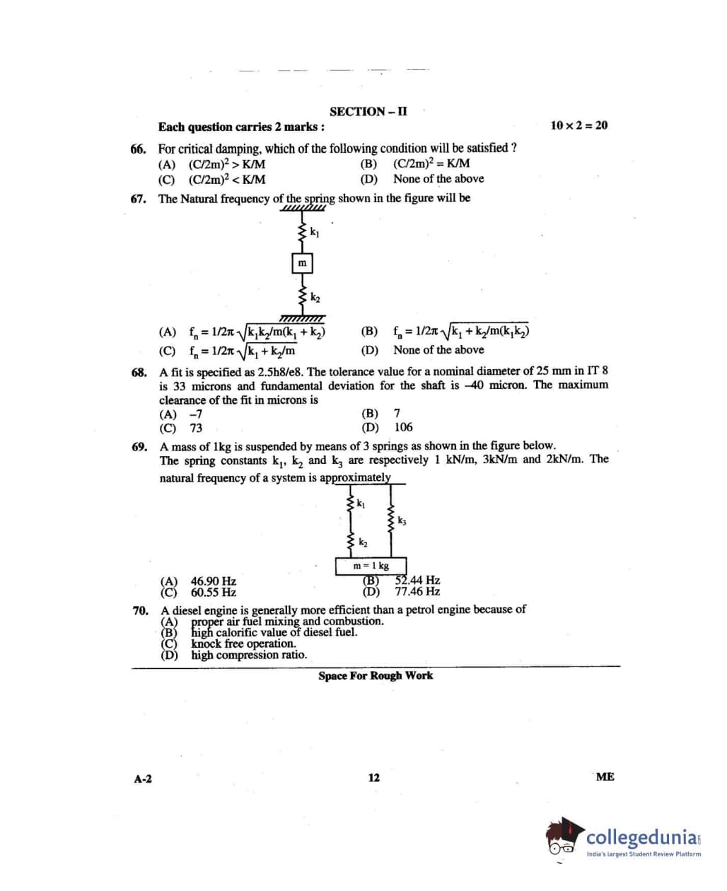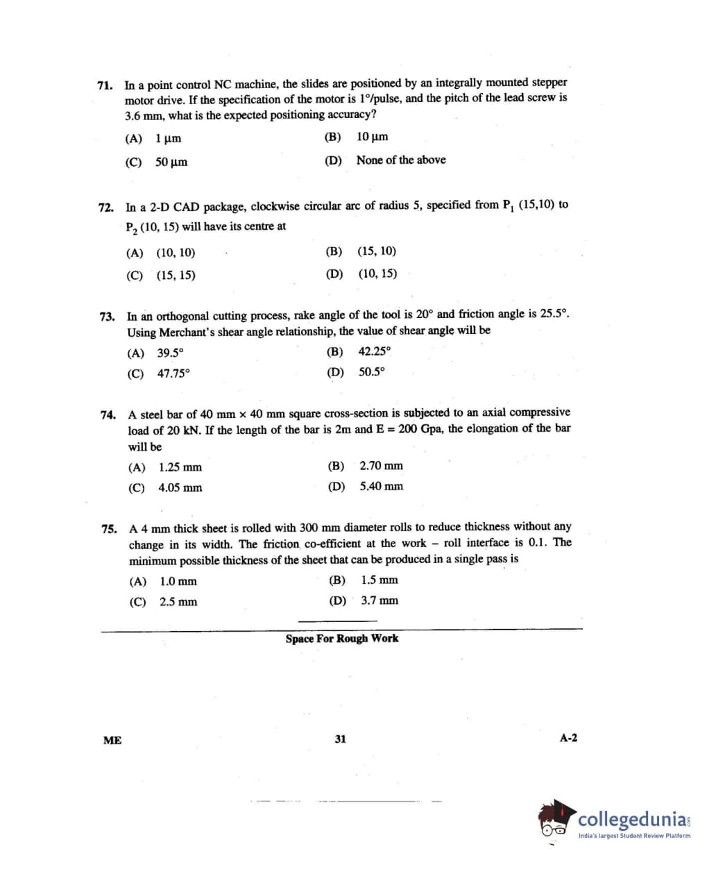 Karnataka PGCET 2014 Mechanical Science Question paper with answer key pdf for A-2 is available for download. The exam was successfully organized by Karnataka Examinations Authority (KEA). The question paper comprised a total of 75 questions.