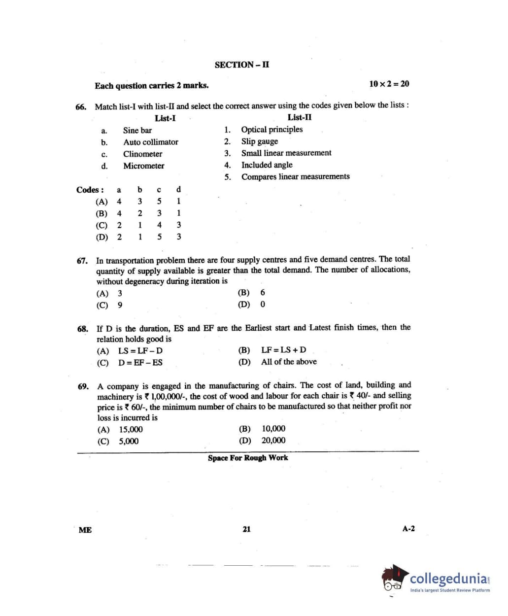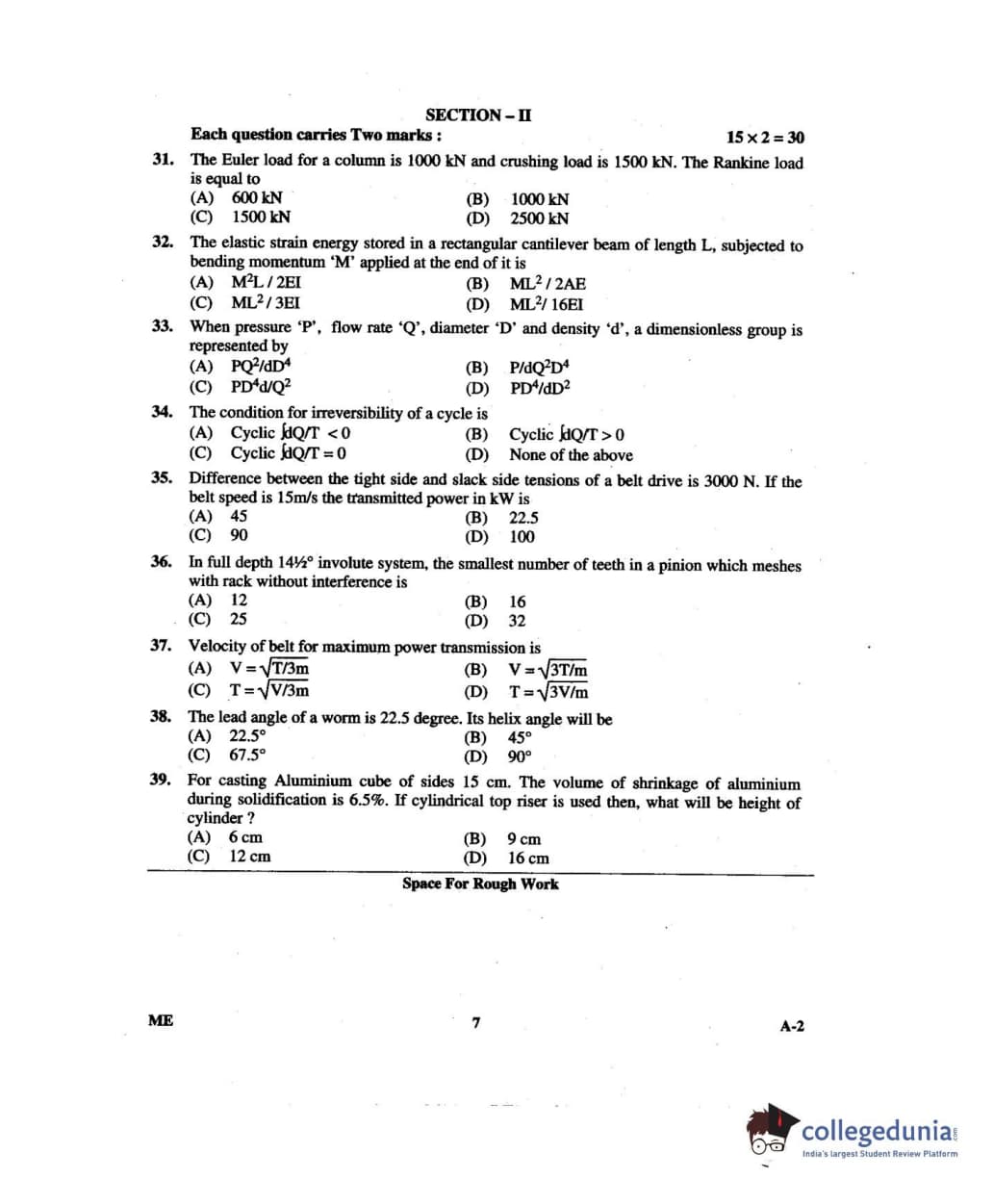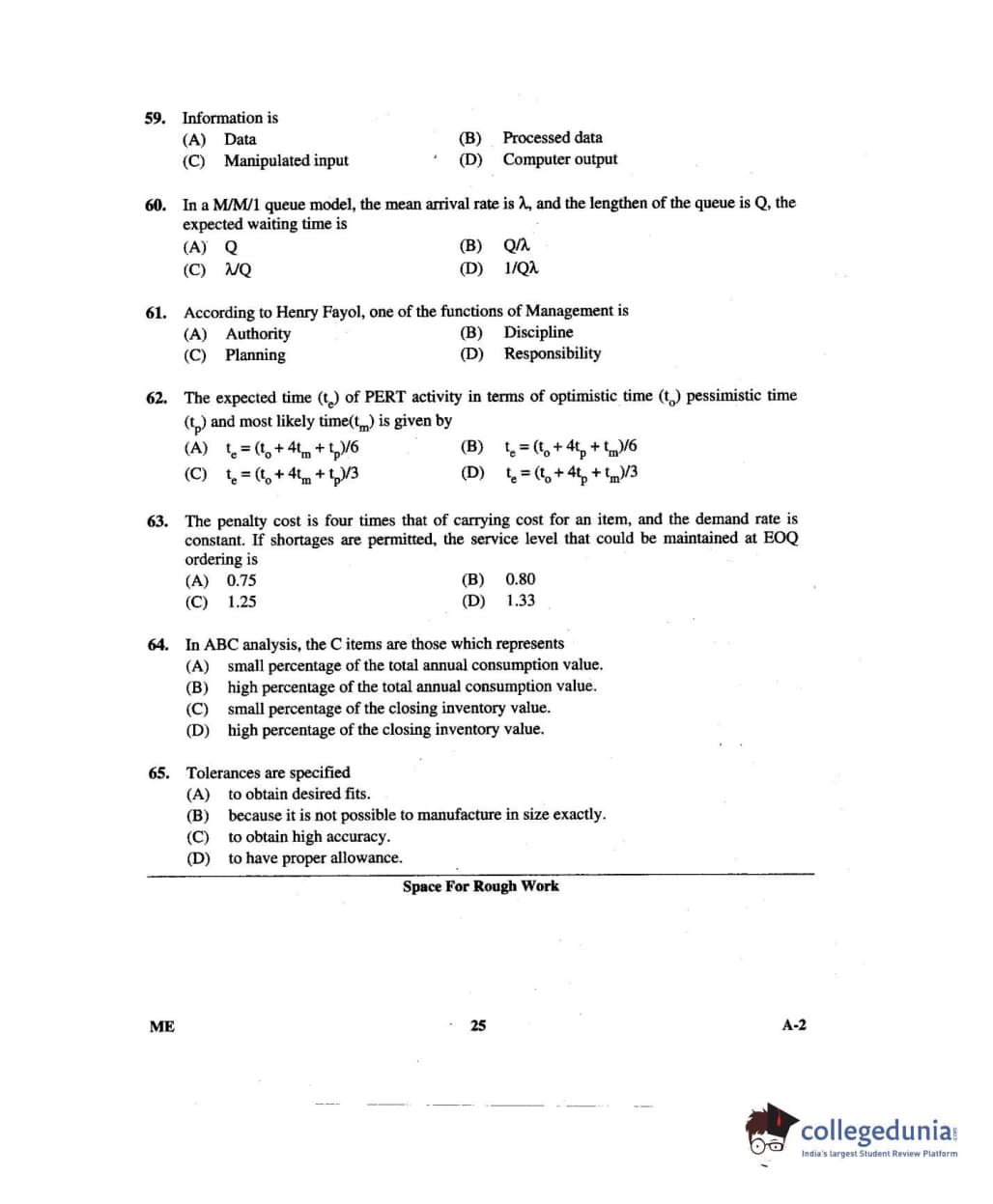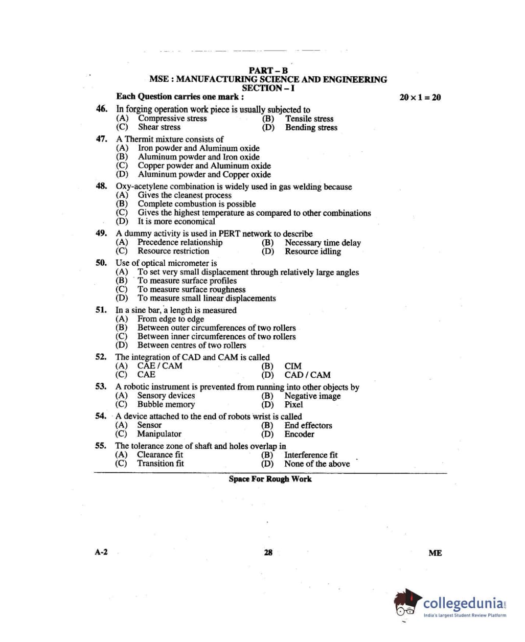 Karnataka PGCET 2014 Mechanical Science Question paper with answer key pdf for A-2 is available for download. The exam was successfully organized by Karnataka Examinations Authority (KEA). The question paper comprised a total of 75 questions.