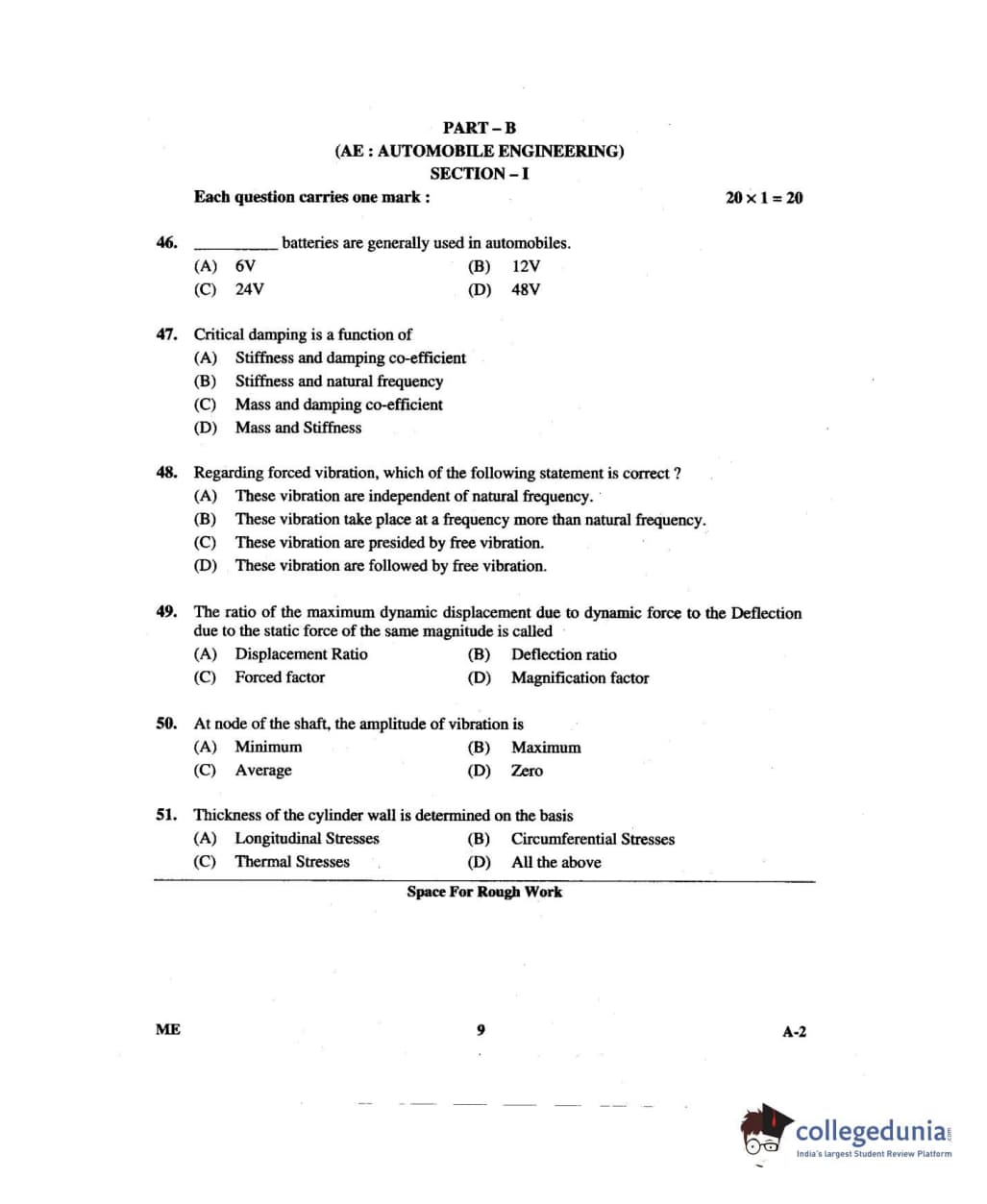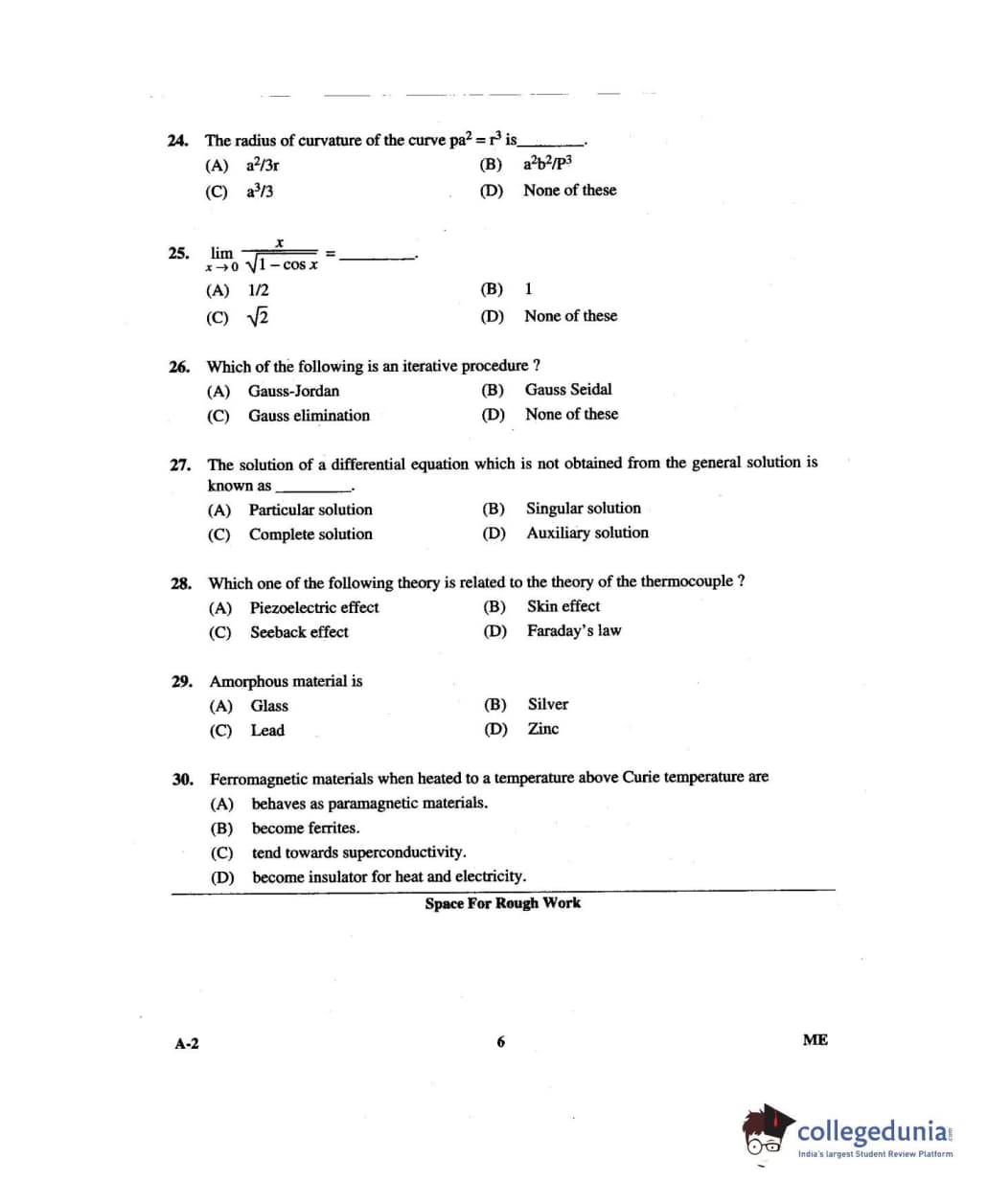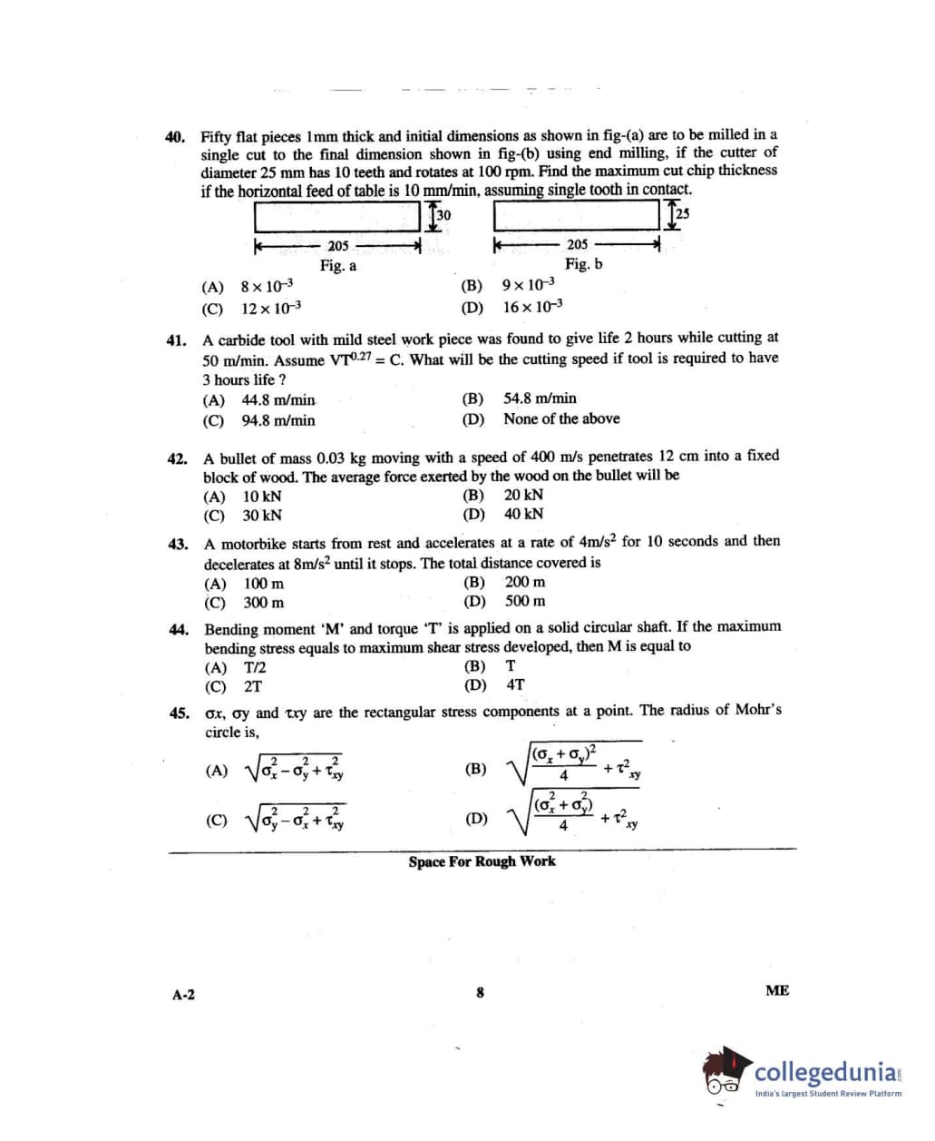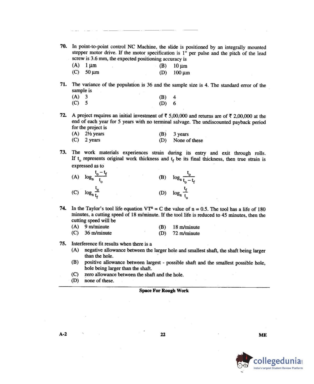 Karnataka PGCET 2014 Mechanical Science Question paper with answer key pdf for A-2 is available for download. The exam was successfully organized by Karnataka Examinations Authority (KEA). The question paper comprised a total of 75 questions.