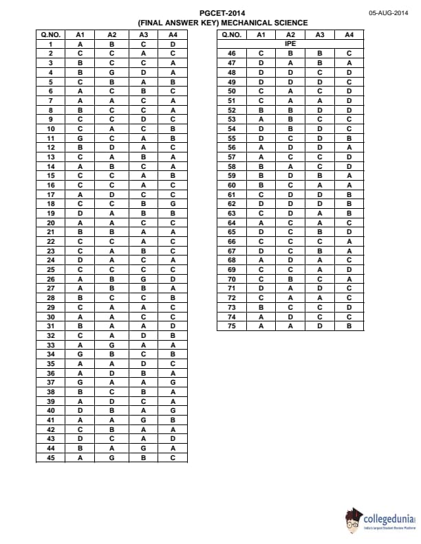| Karnataka PGCET 2014 Mechanical Science Question Paper | Karnataka PGCET 2014 Mechanical Science Answer Key |