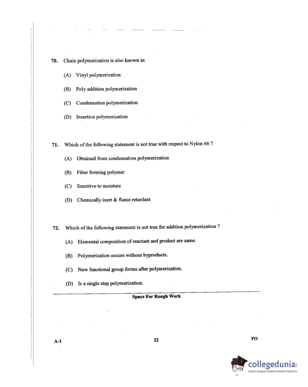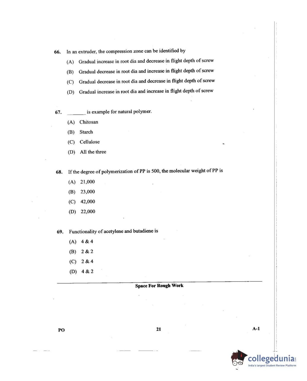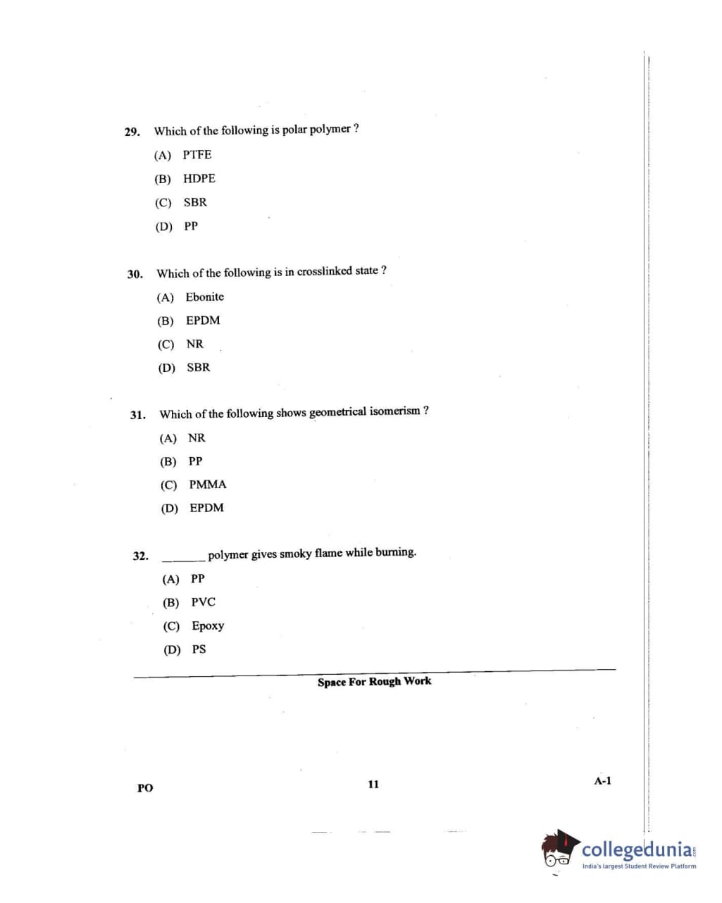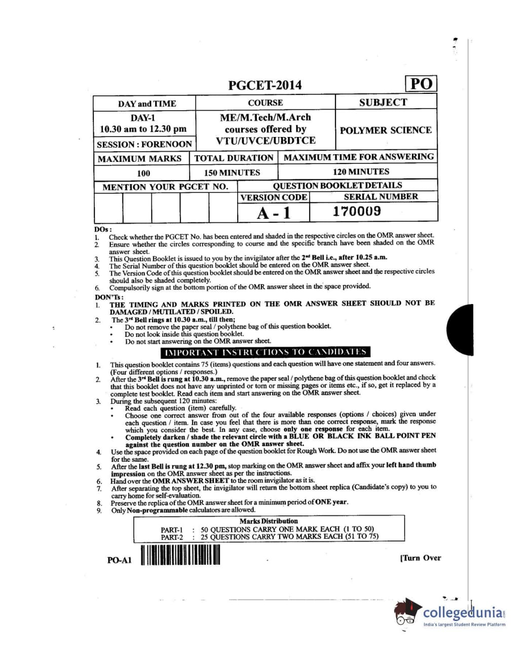 Karnataka PGCET 2014 Polymer Science and Technology Question paper with answer key pdf for A-1 is available for download. The exam was successfully organized by Karnataka Examinations Authority (KEA). The question paper comprised a total of 75 questions.