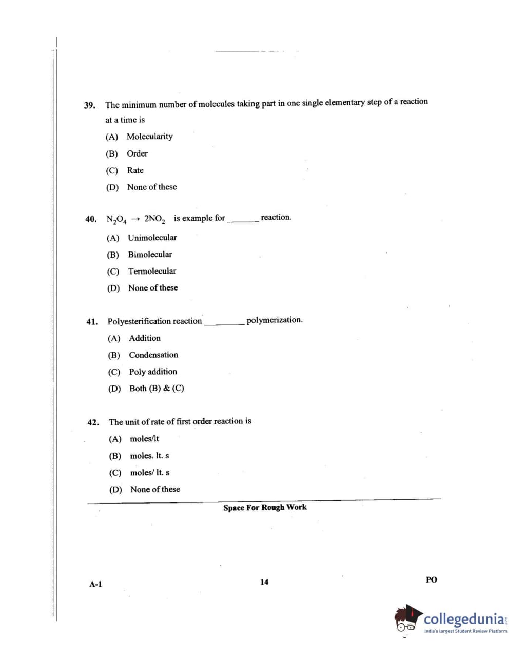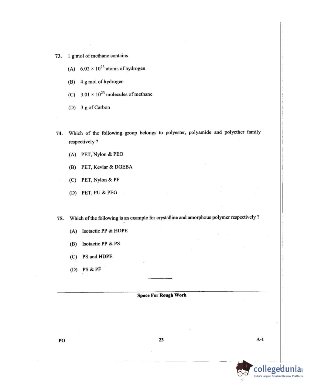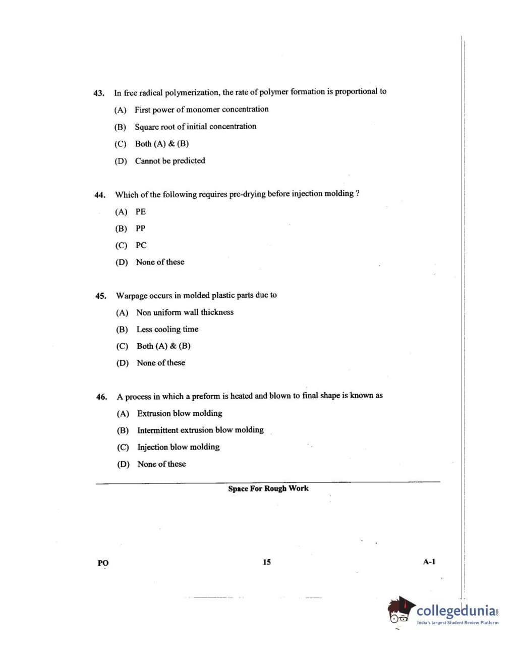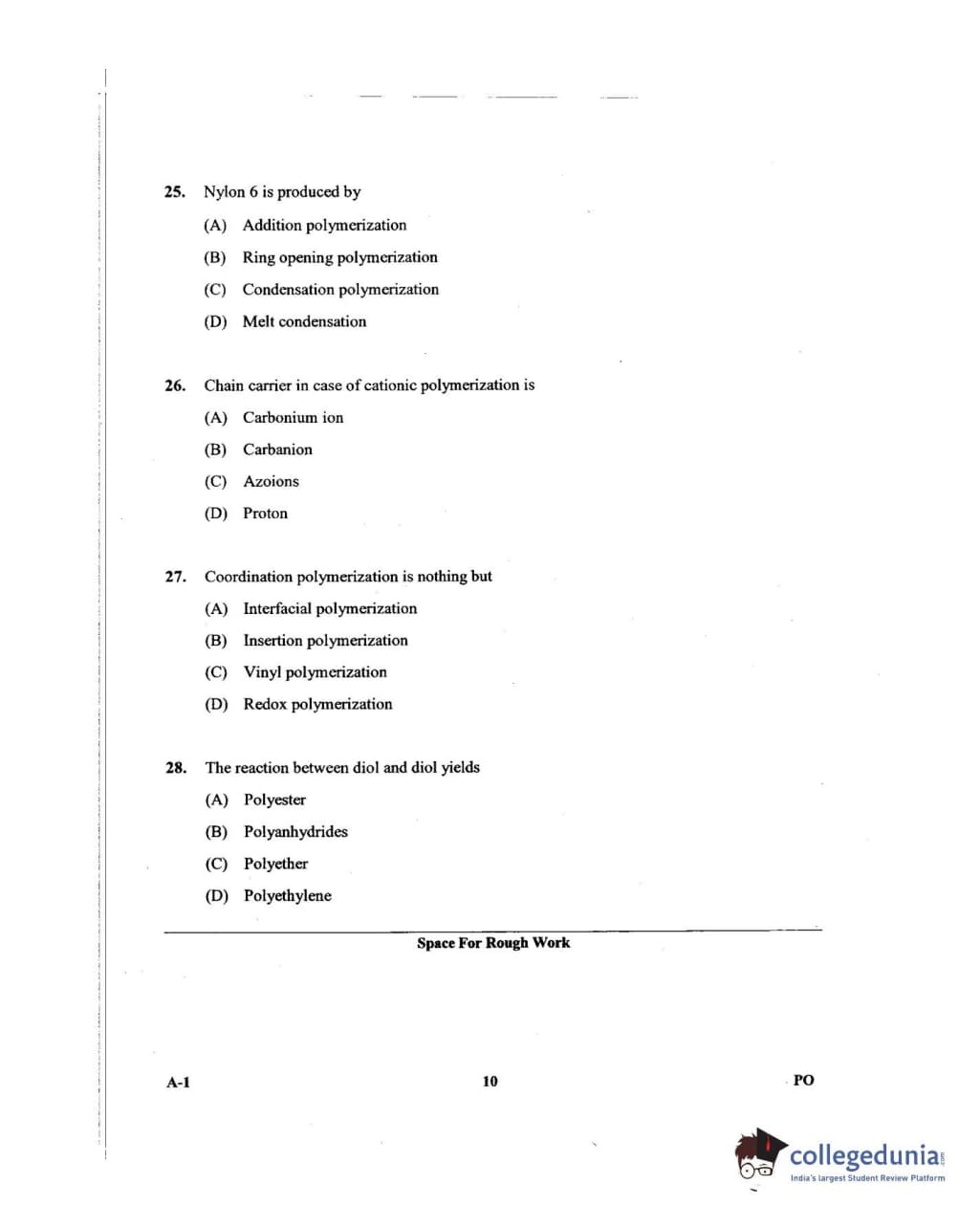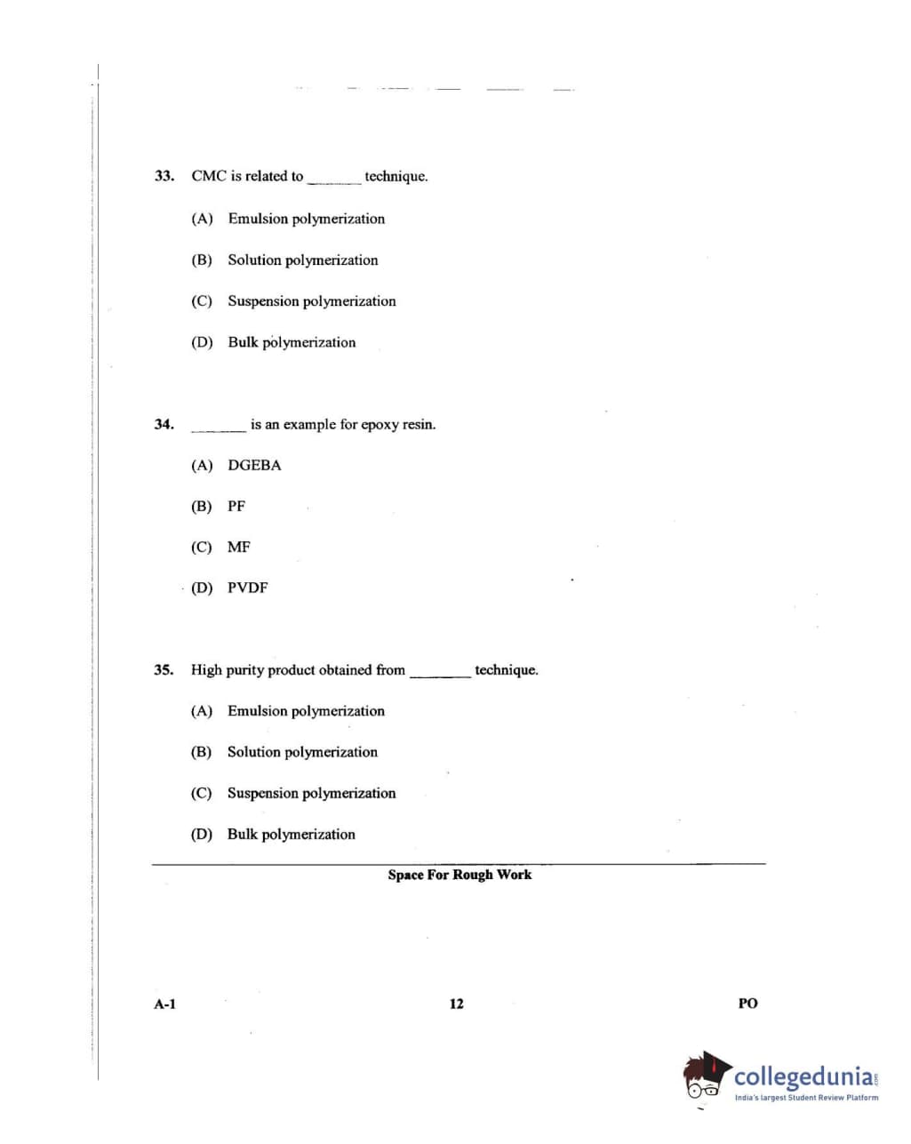 Karnataka PGCET 2014 Polymer Science and Technology Question paper with answer key pdf for A-1 is available for download. The exam was successfully organized by Karnataka Examinations Authority (KEA). The question paper comprised a total of 75 questions.