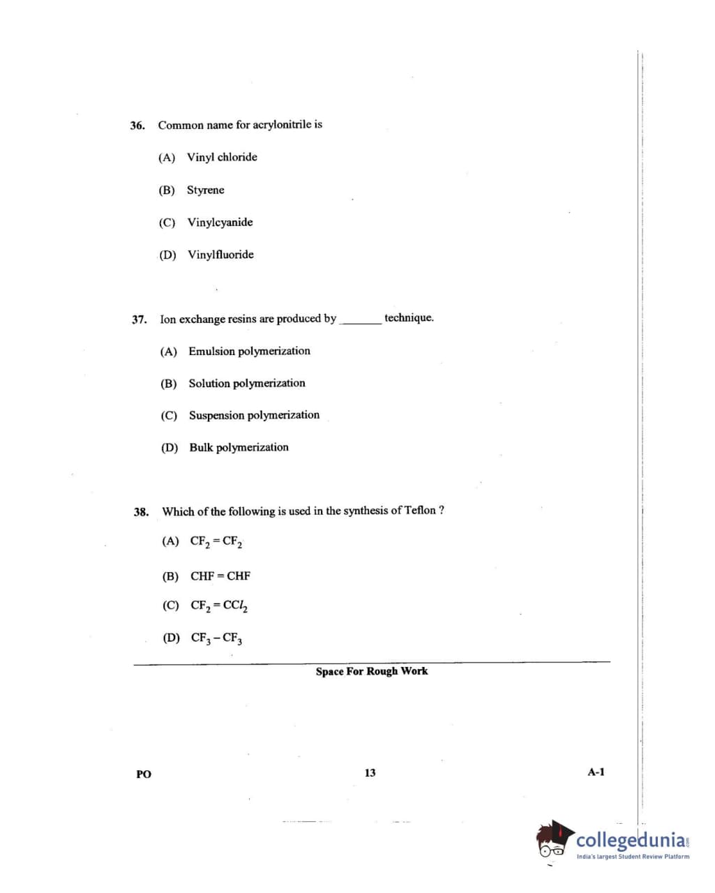 Karnataka PGCET 2014 Polymer Science and Technology Question Paper with Answer Key PDF for Forenoon Session
