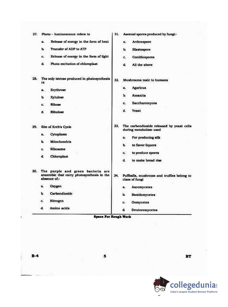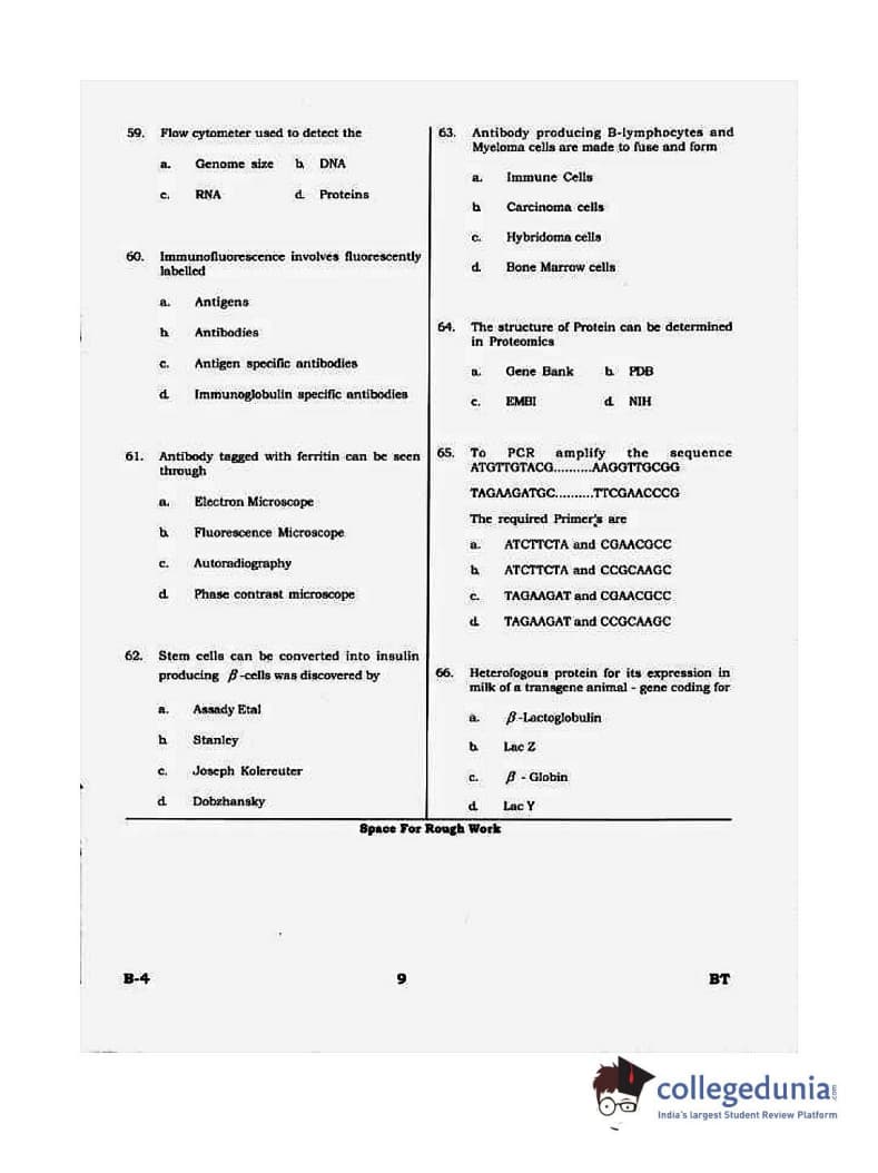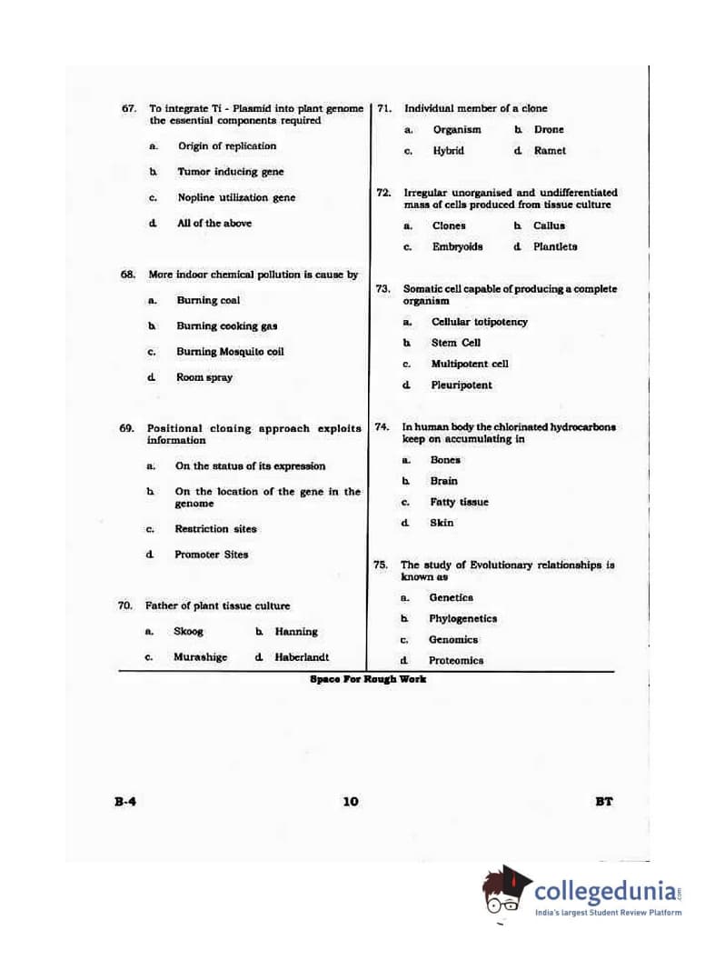 Karnataka PGCET 2015 Biotechnology Question paper with answer key pdf conducted on August 8, 2015 in Morning Session 10:30 AM to 12:30 PM for B-4 is available for download. The exam was successfully organized by Karnataka Examinations Authority (KEA). The question paper comprised a total of 75 questions.