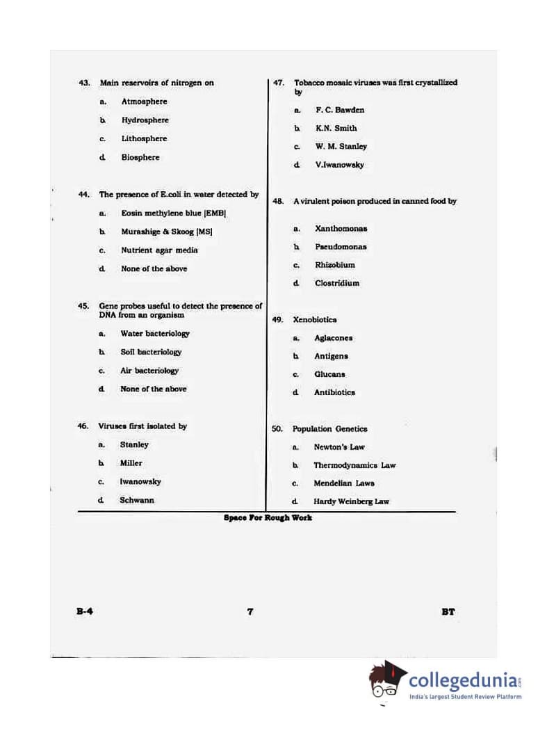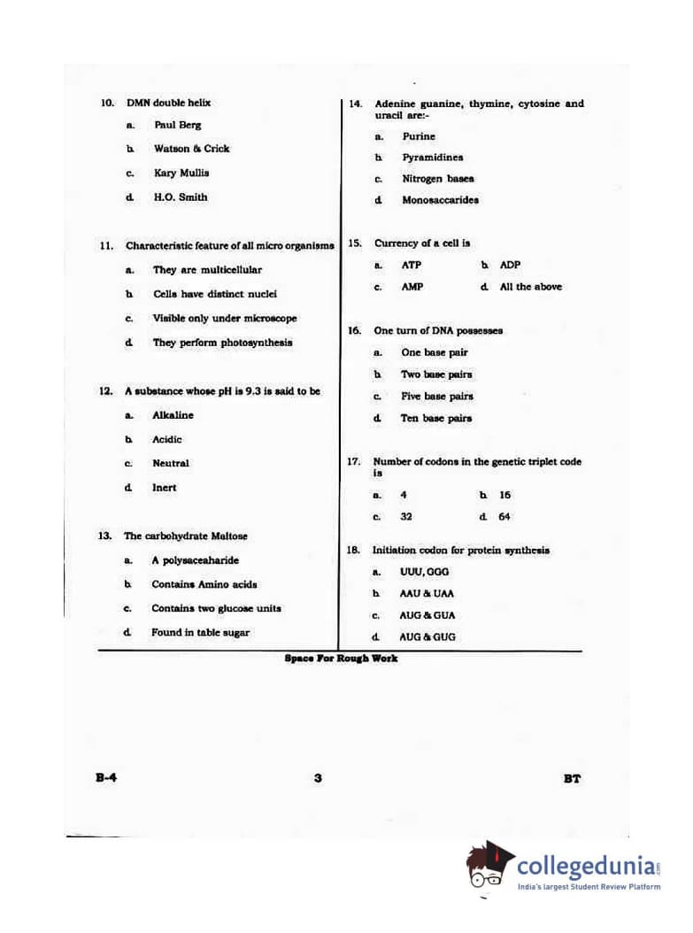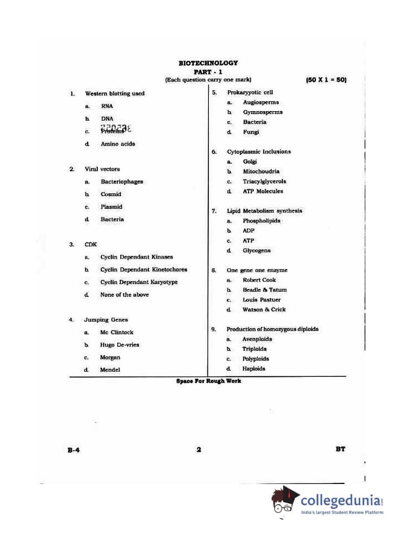 Karnataka PGCET 2015 Biotechnology Question Paper with Answer Key PDFs for Morning Session