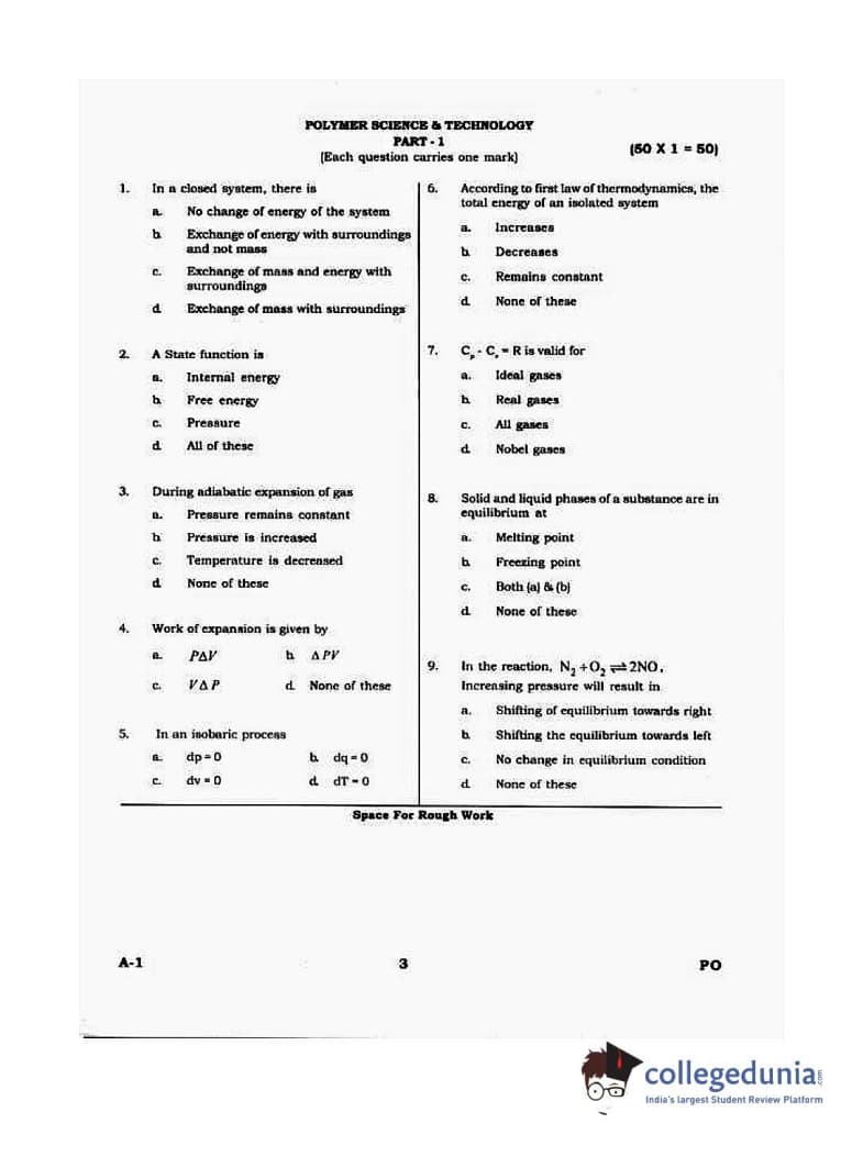 Karnataka PGCET 2015 Polymer Science and Technology Question Paper with Answer Key PDFs for Morning Session