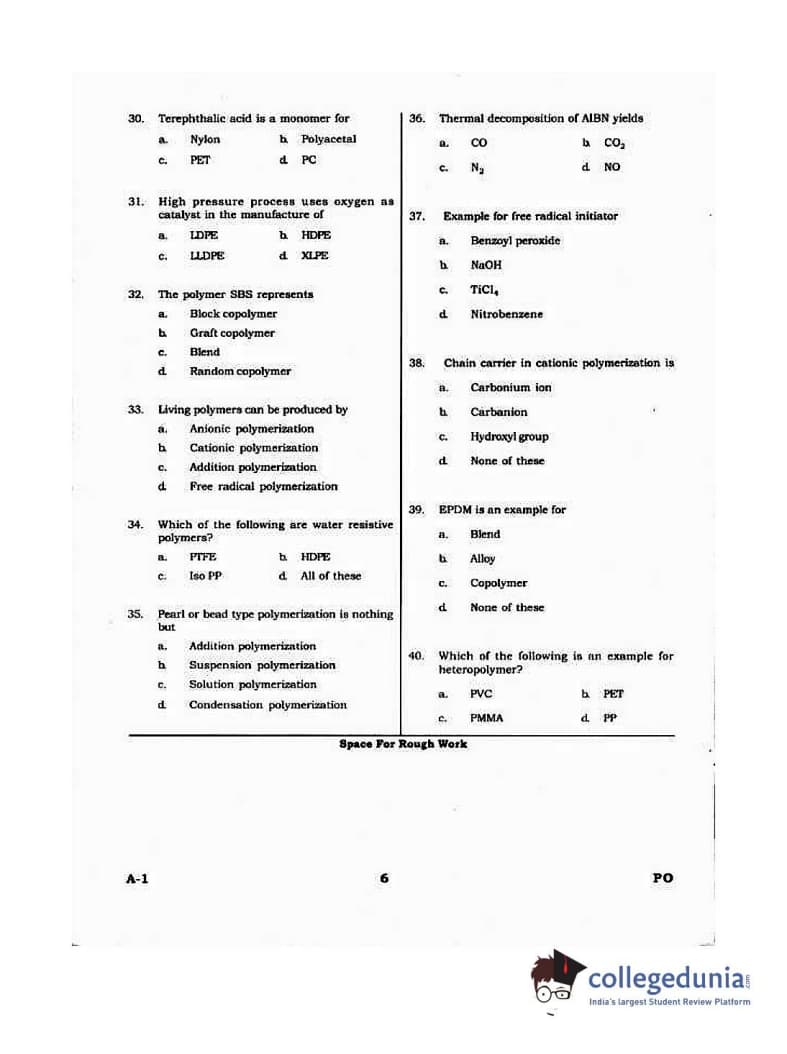 | Karnataka PGCET 2015 Polymer Science and Technology Question Paper PDF | Karnataka PGCET 2015 Polymer Science and Technology Answer Key PDF |