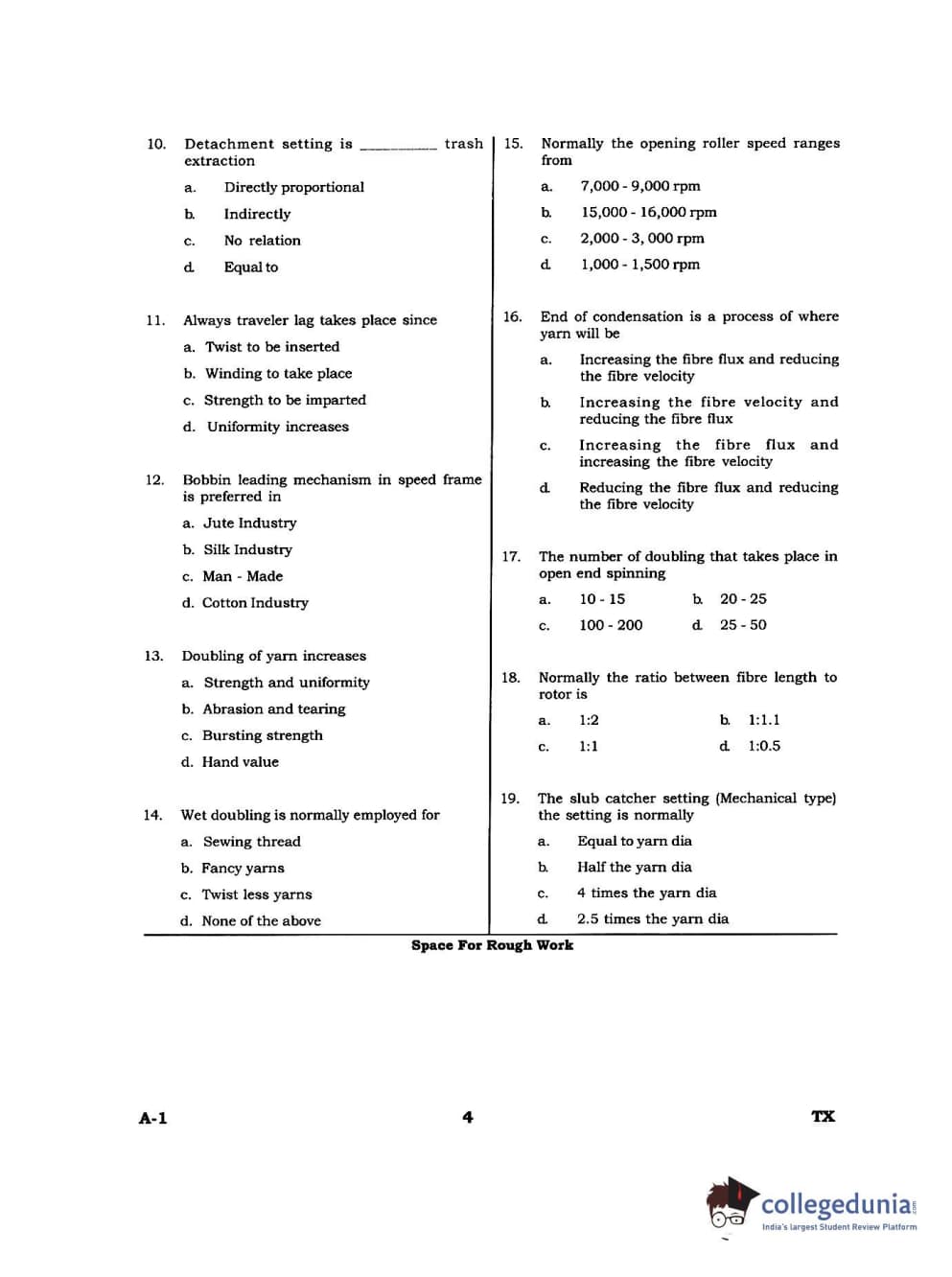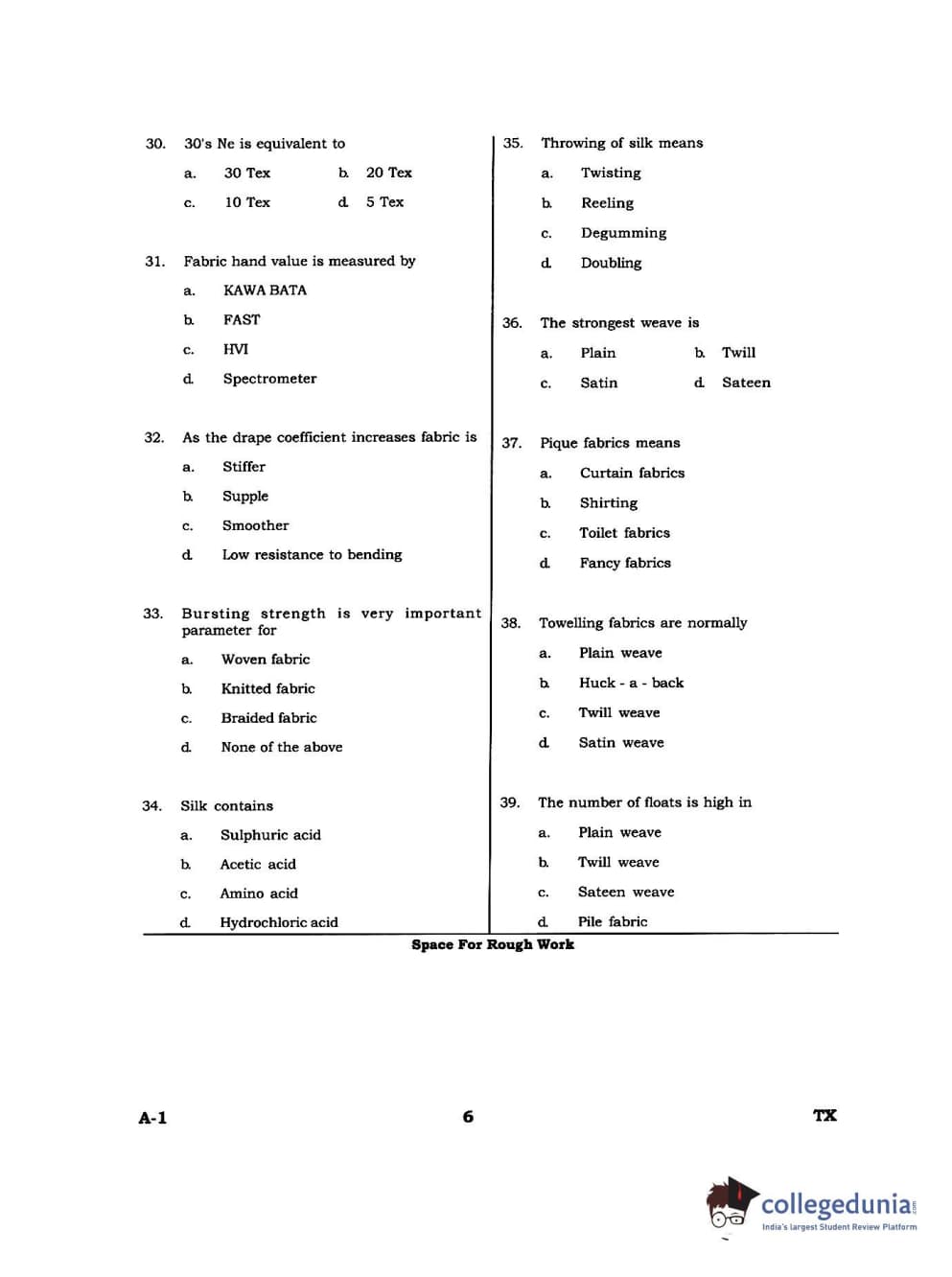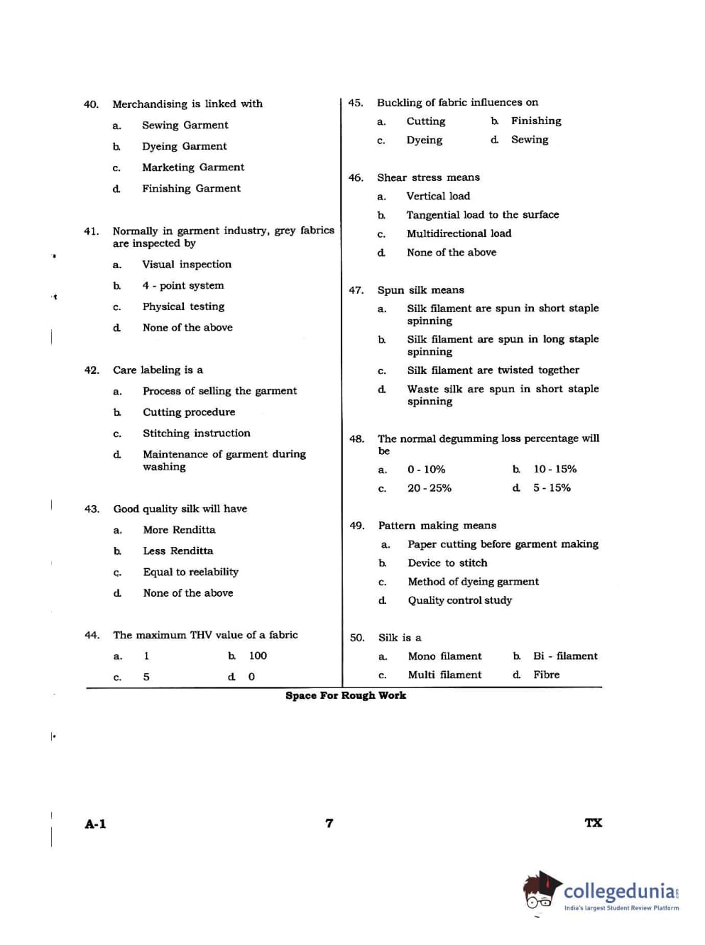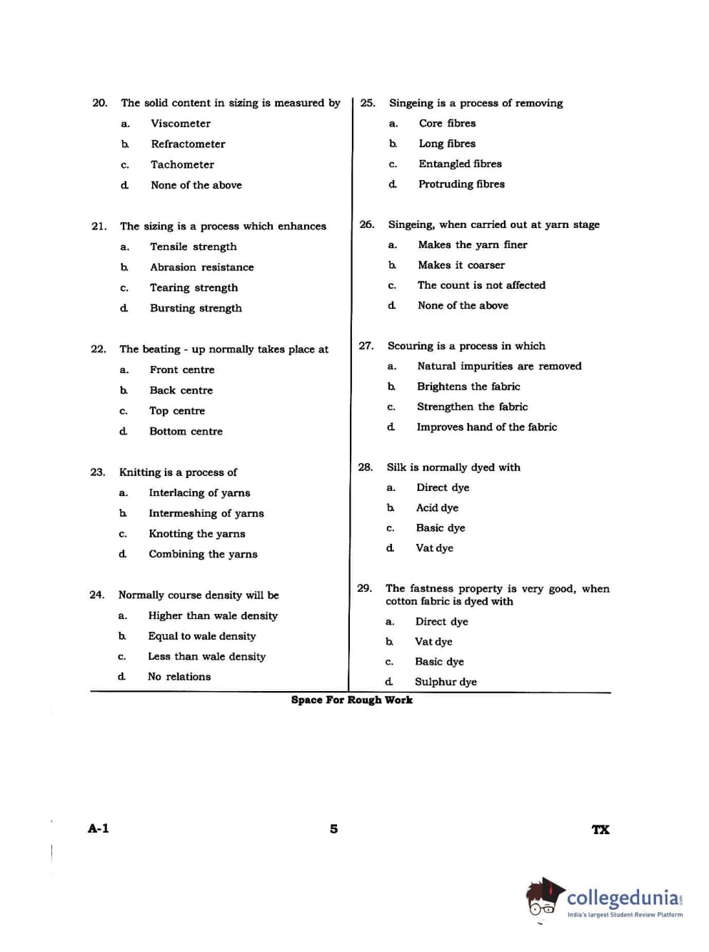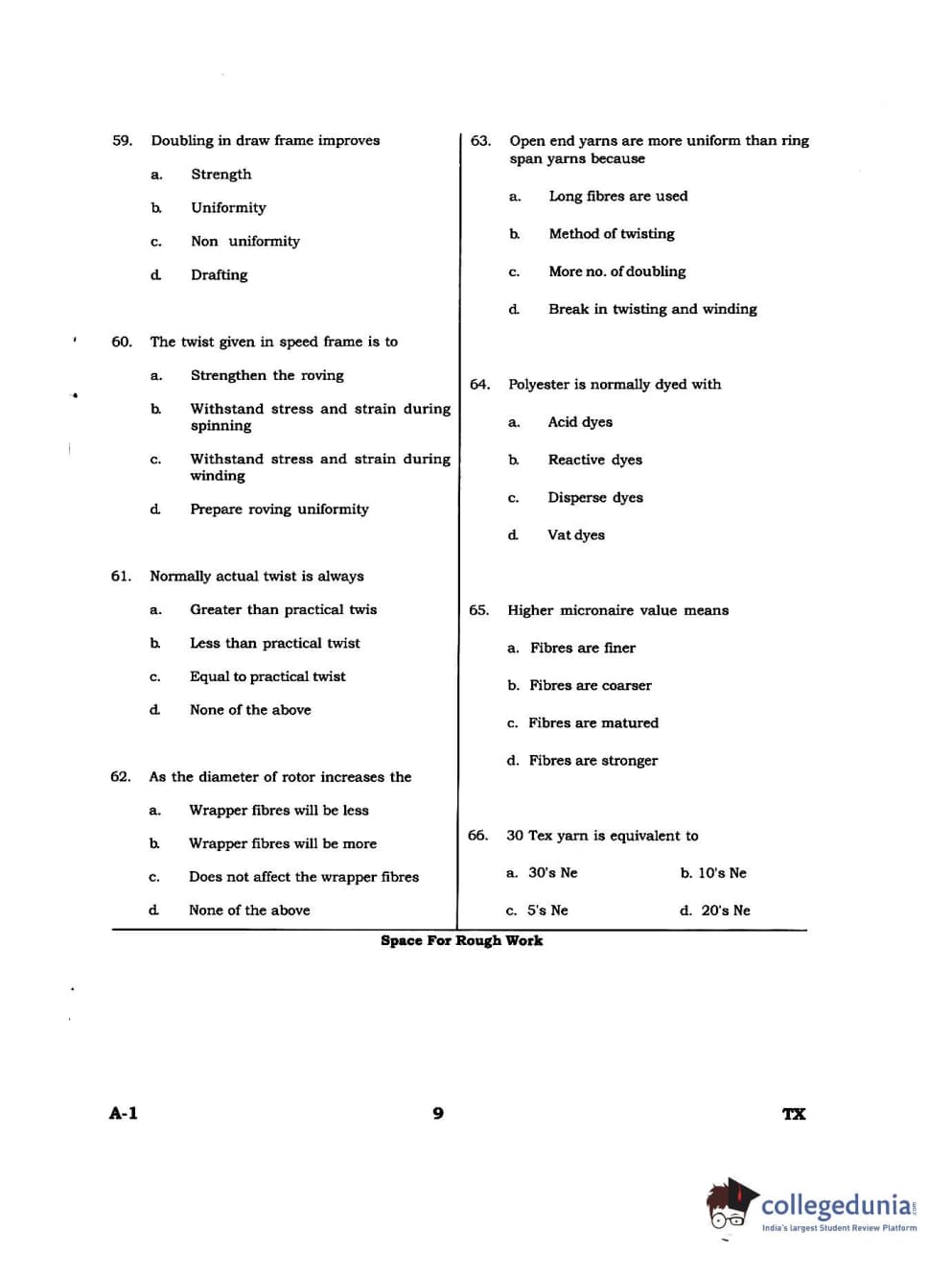 Karnataka PGCET 2015 Textile Technology Question Paper with Answer Key PDFs for Morning Session