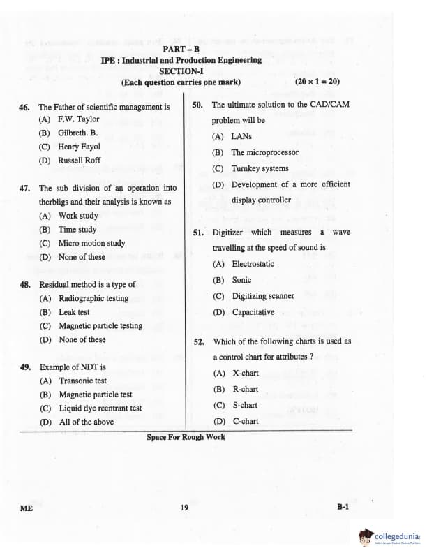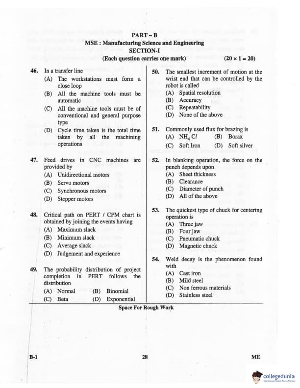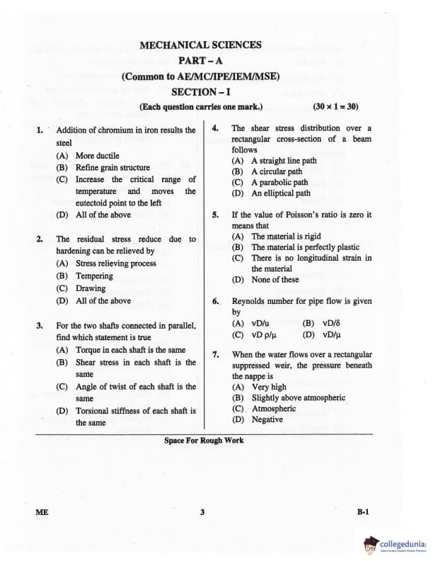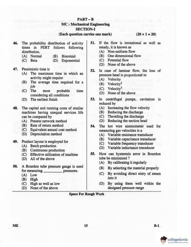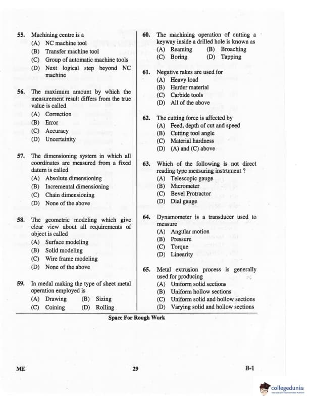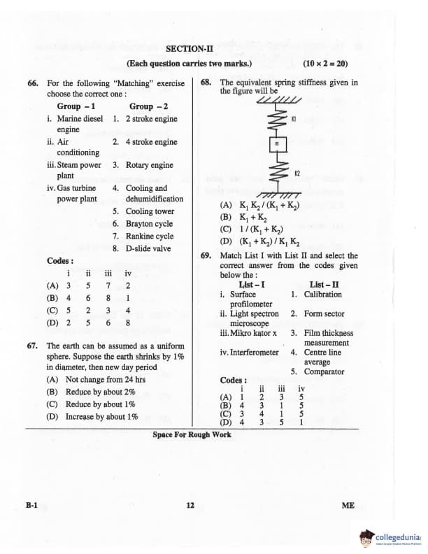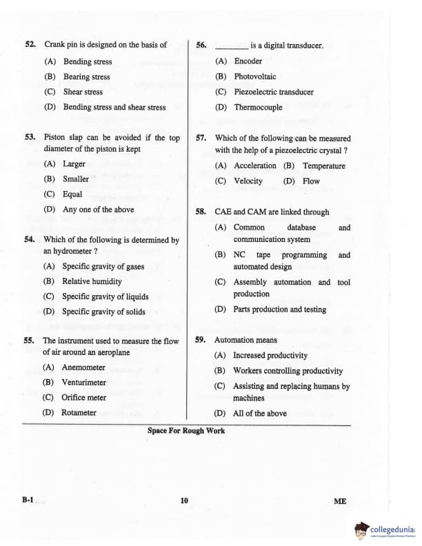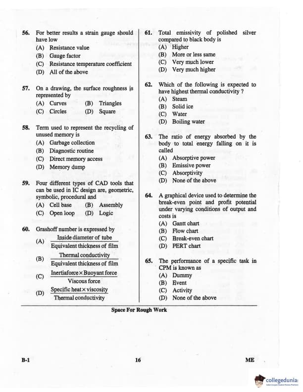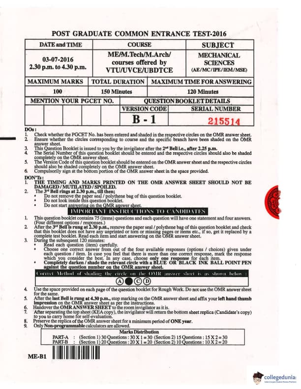 Karnataka PGCET 2016 Mechanical Science Question paper with answer key pdf for B-1 is available for download. The exam was successfully organized by Karnataka Examinations Authority (KEA). The question paper comprised a total of 75 questions.