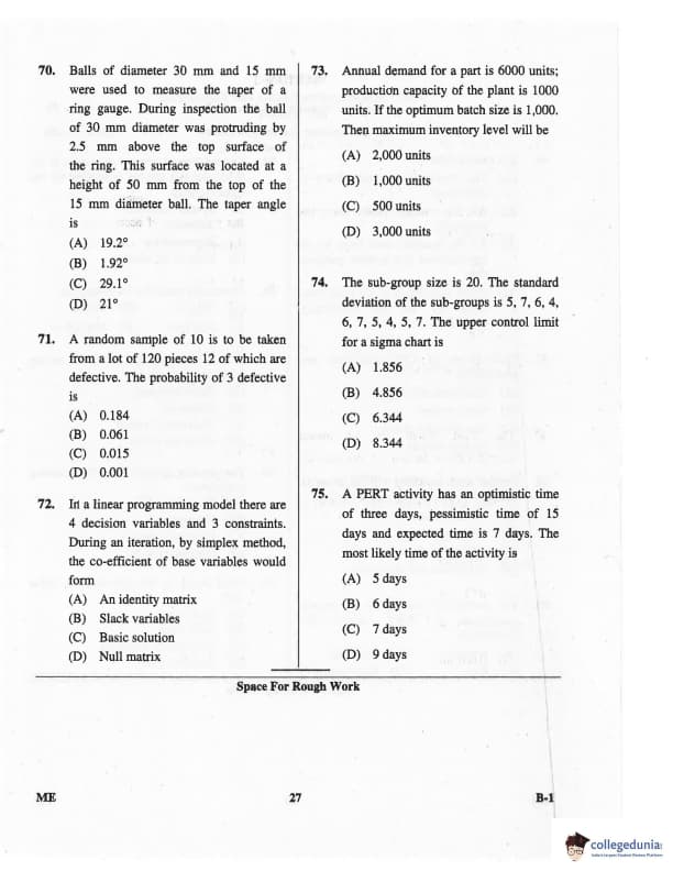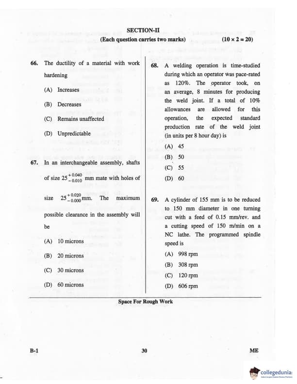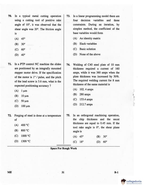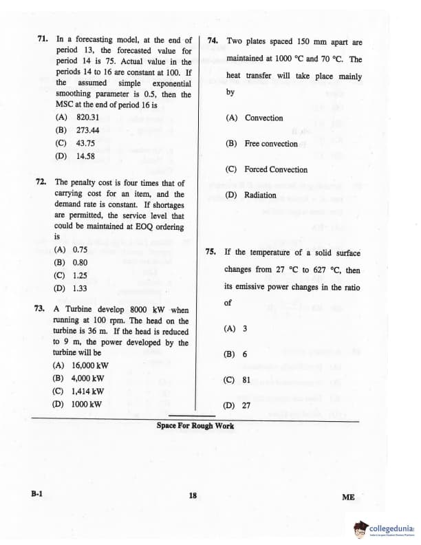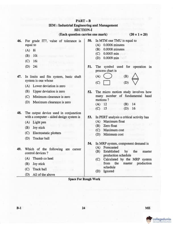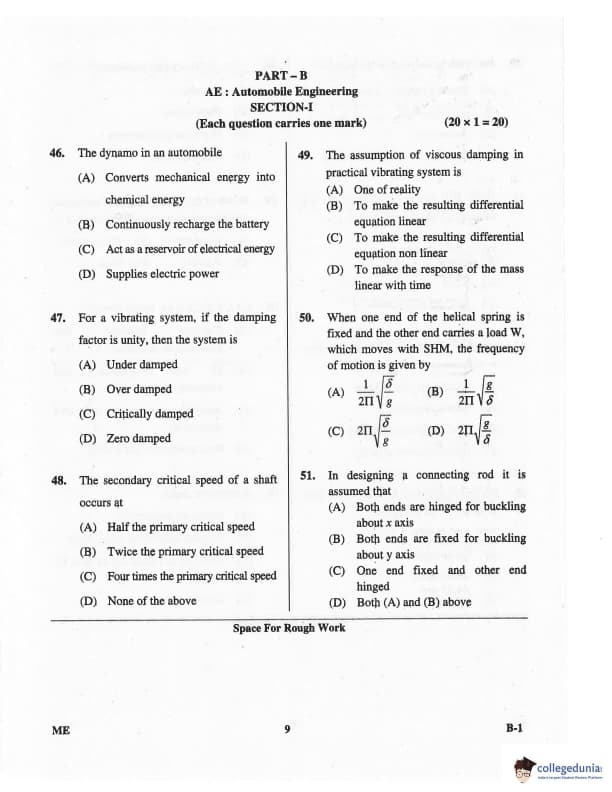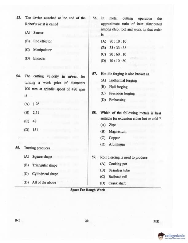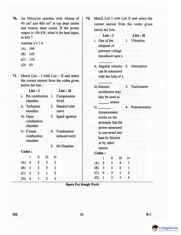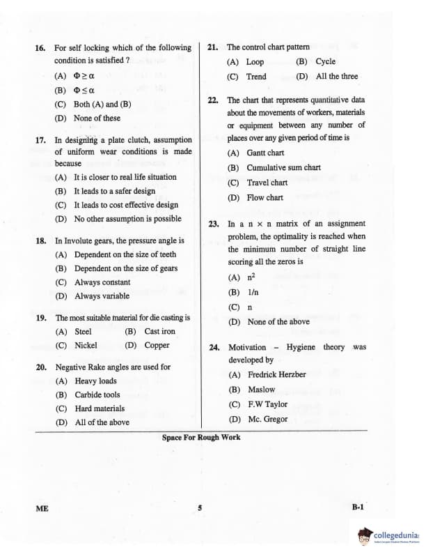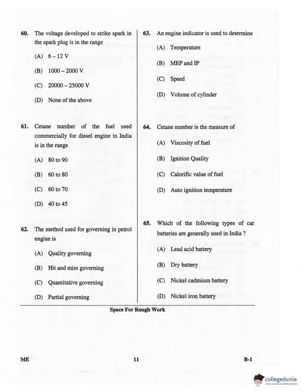 Karnataka PGCET 2016 Mechanical Science Question paper with answer key pdf for B-1 is available for download. The exam was successfully organized by Karnataka Examinations Authority (KEA). The question paper comprised a total of 75 questions.