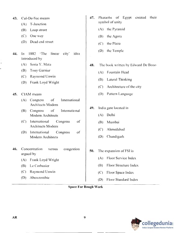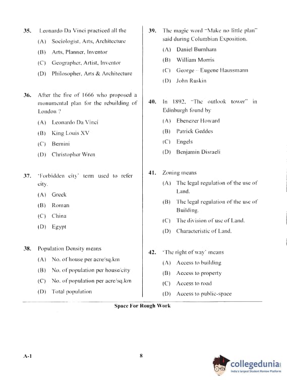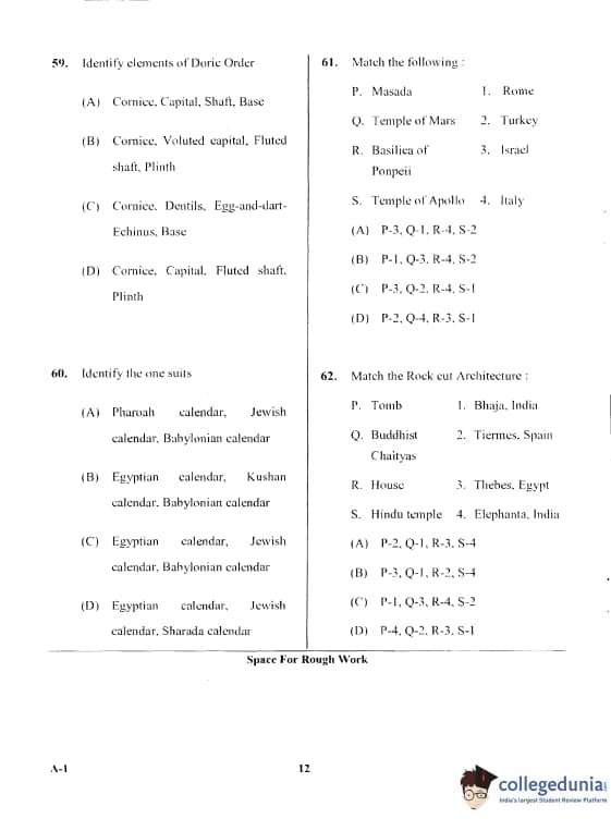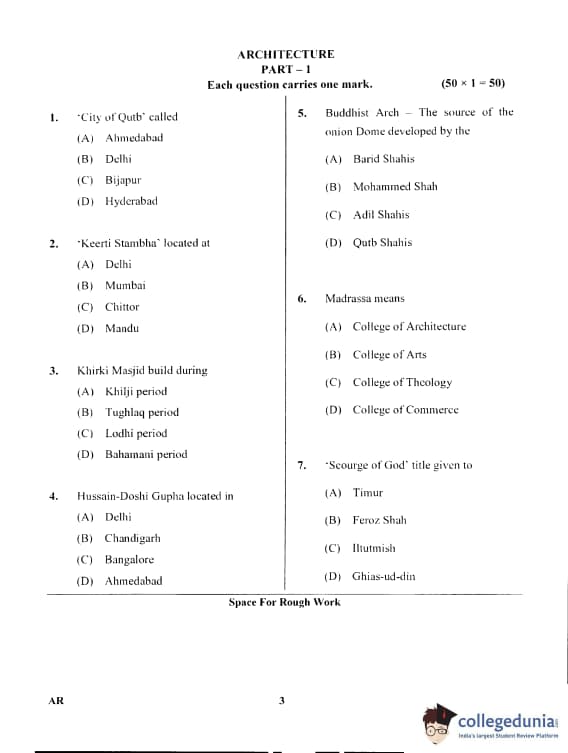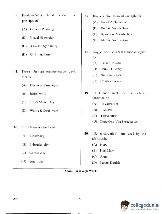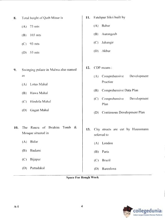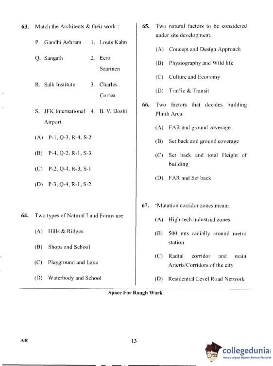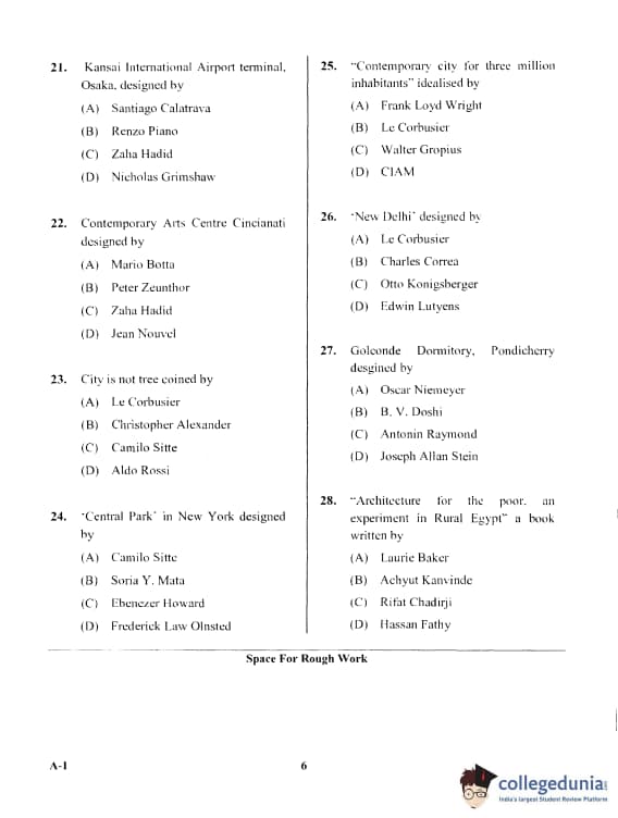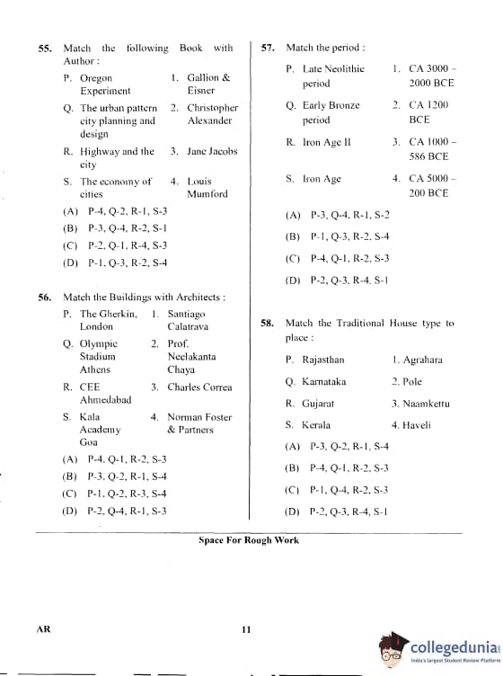 Karnataka PGCET 2017 Architecture Question Paper with Answer Key PDF for Afternoon Session