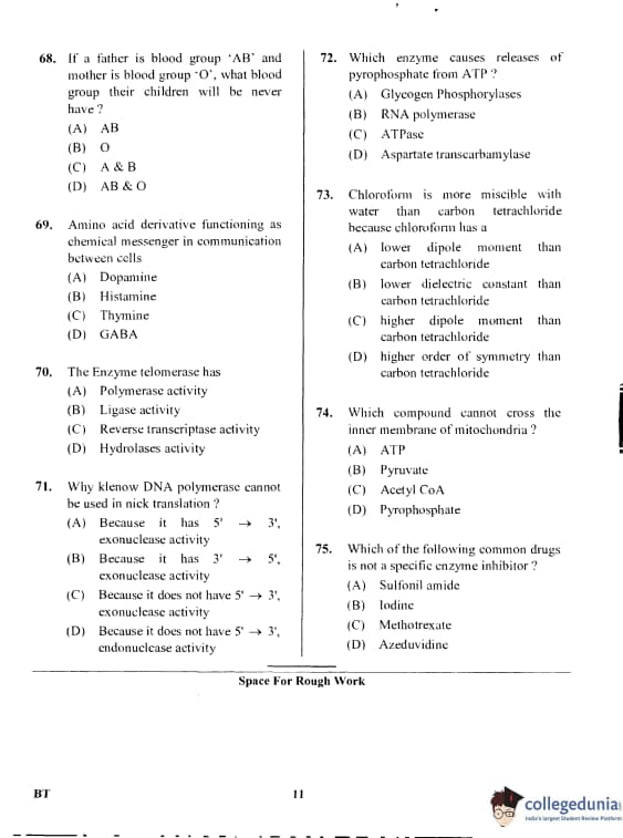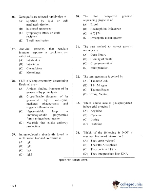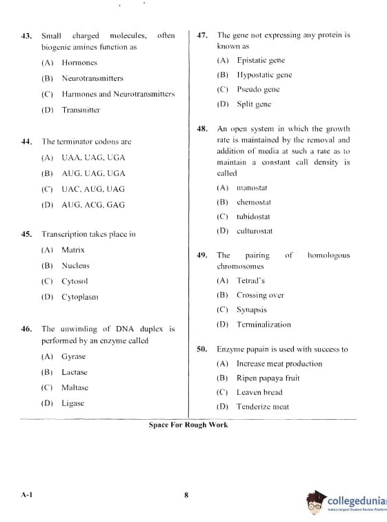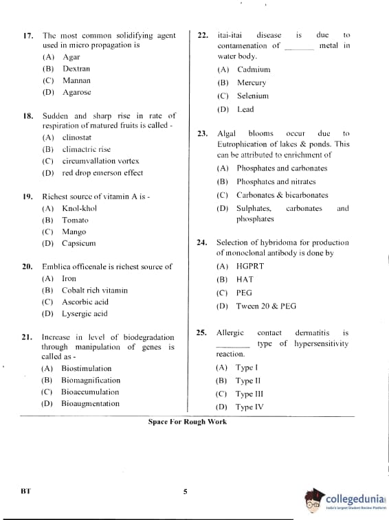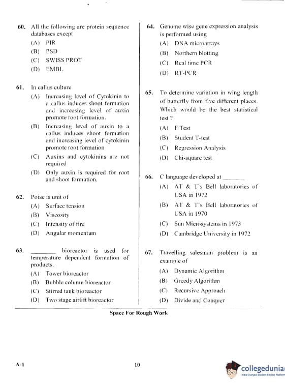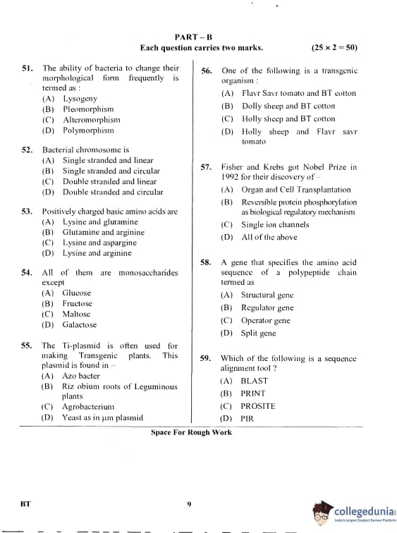 Karnataka PGCET 2017 Biotechnology Question Paper with Answer Key PDF for Afternoon Session