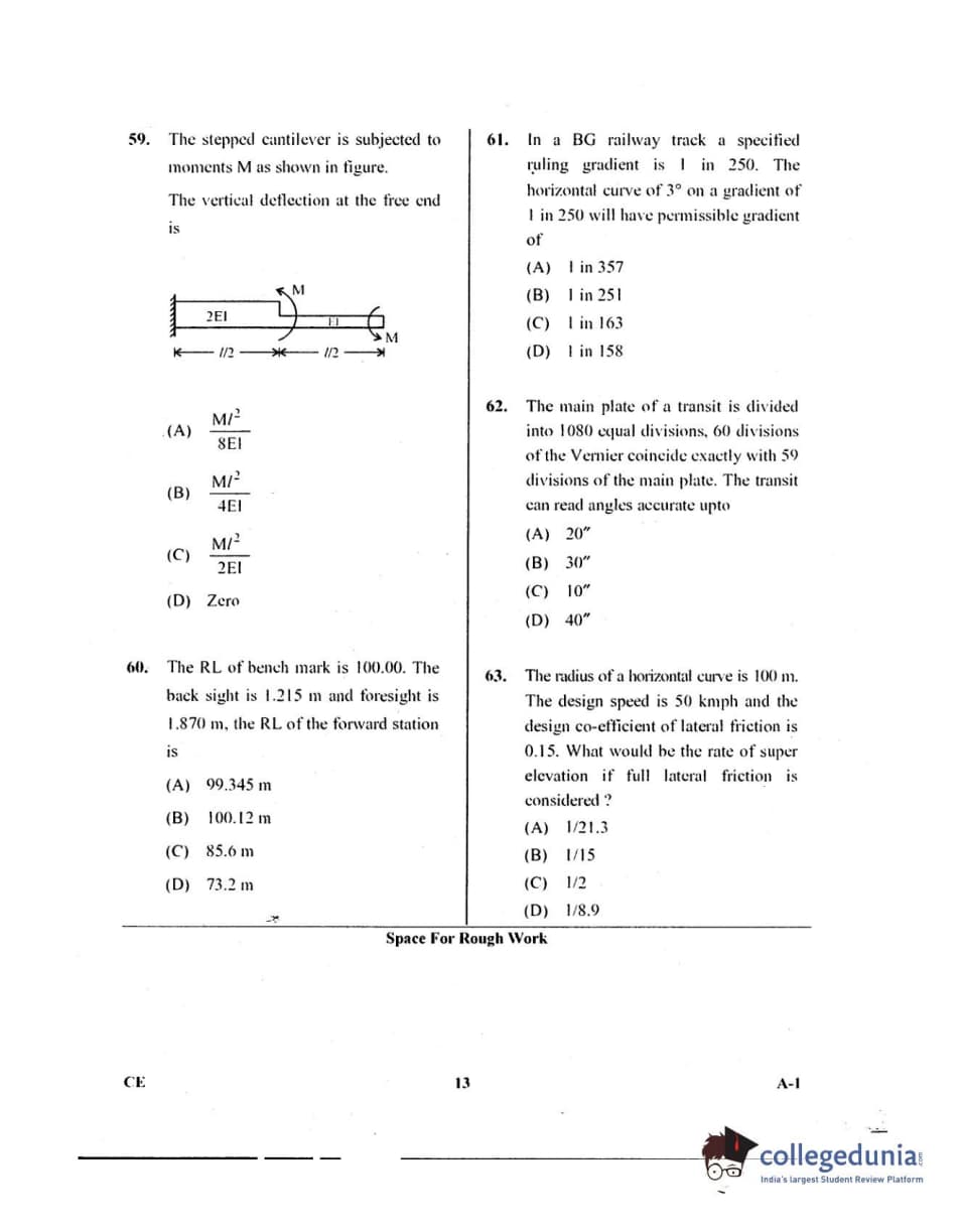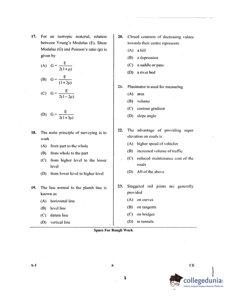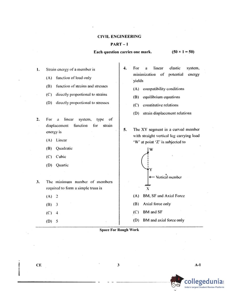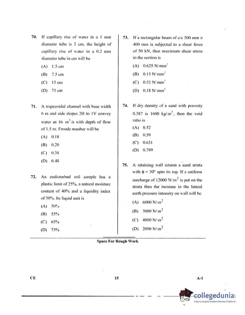 Karnataka PGCET 2017 Civil Engineering Question paper with answer key pdf conducted on July 1, 2017 in Afternoon Session 2:30 PM to 4:30 PM for A-1 is available for download. The exam was successfully organized by Karnataka Examinations Authority (KEA). The question paper comprised a total of 75 questions.