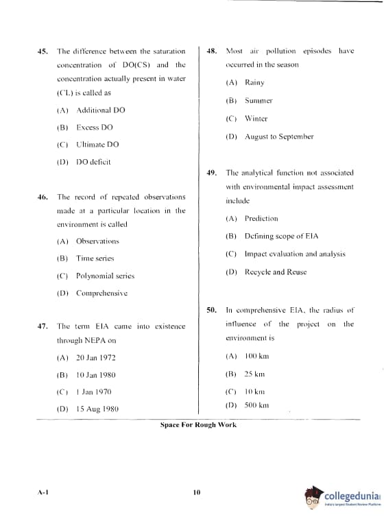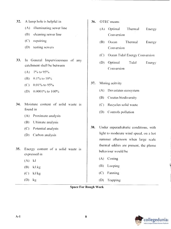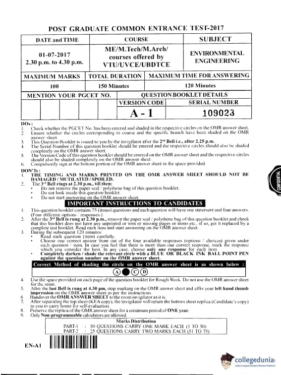 Karnataka PGCET 2017 Environmental Engineering Question paper with answer key pdf conducted on July 1, 2017 in Afternoon Session 2:30 PM to 4:30 PM for A-1 is available for download. The exam was successfully organized by Karnataka Examinations Authority (KEA). The question paper comprised a total of 75 questions.