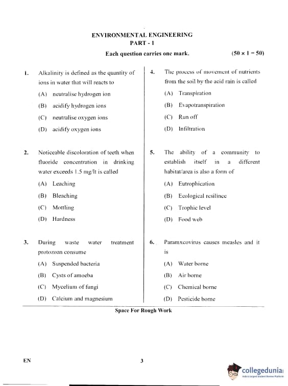 Karnataka PGCET 2017 Environmental Engineering Question Paper with Answer Key PDF for Afternoon Session