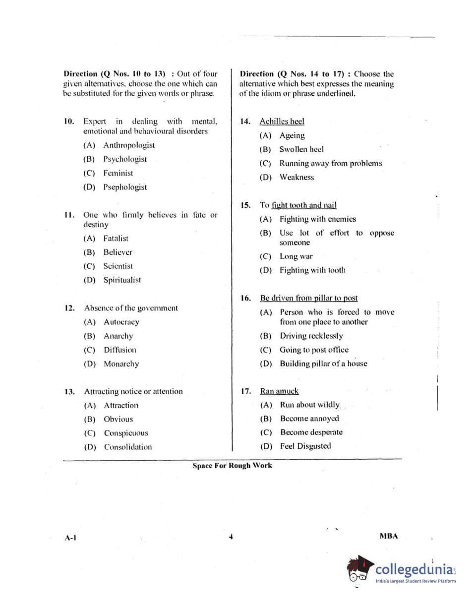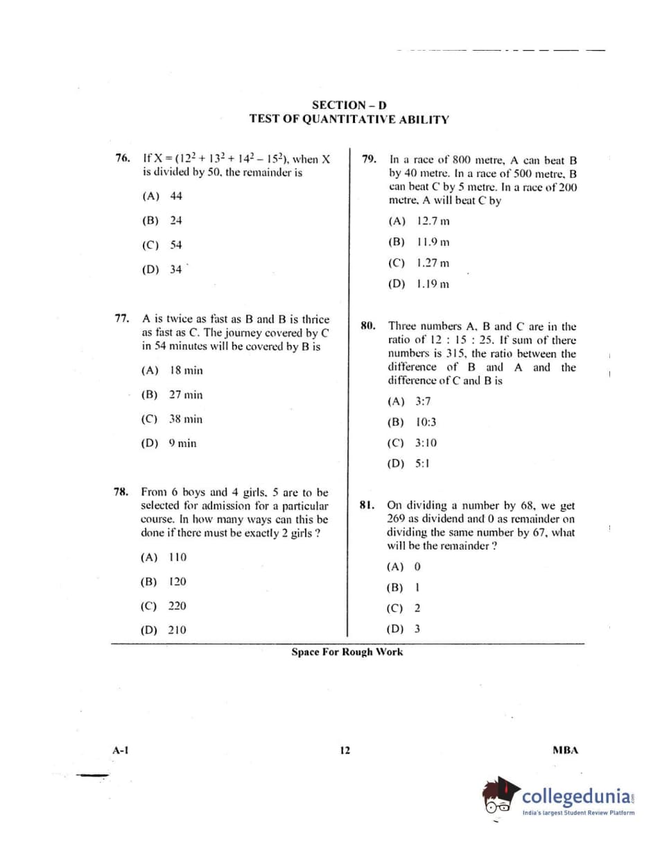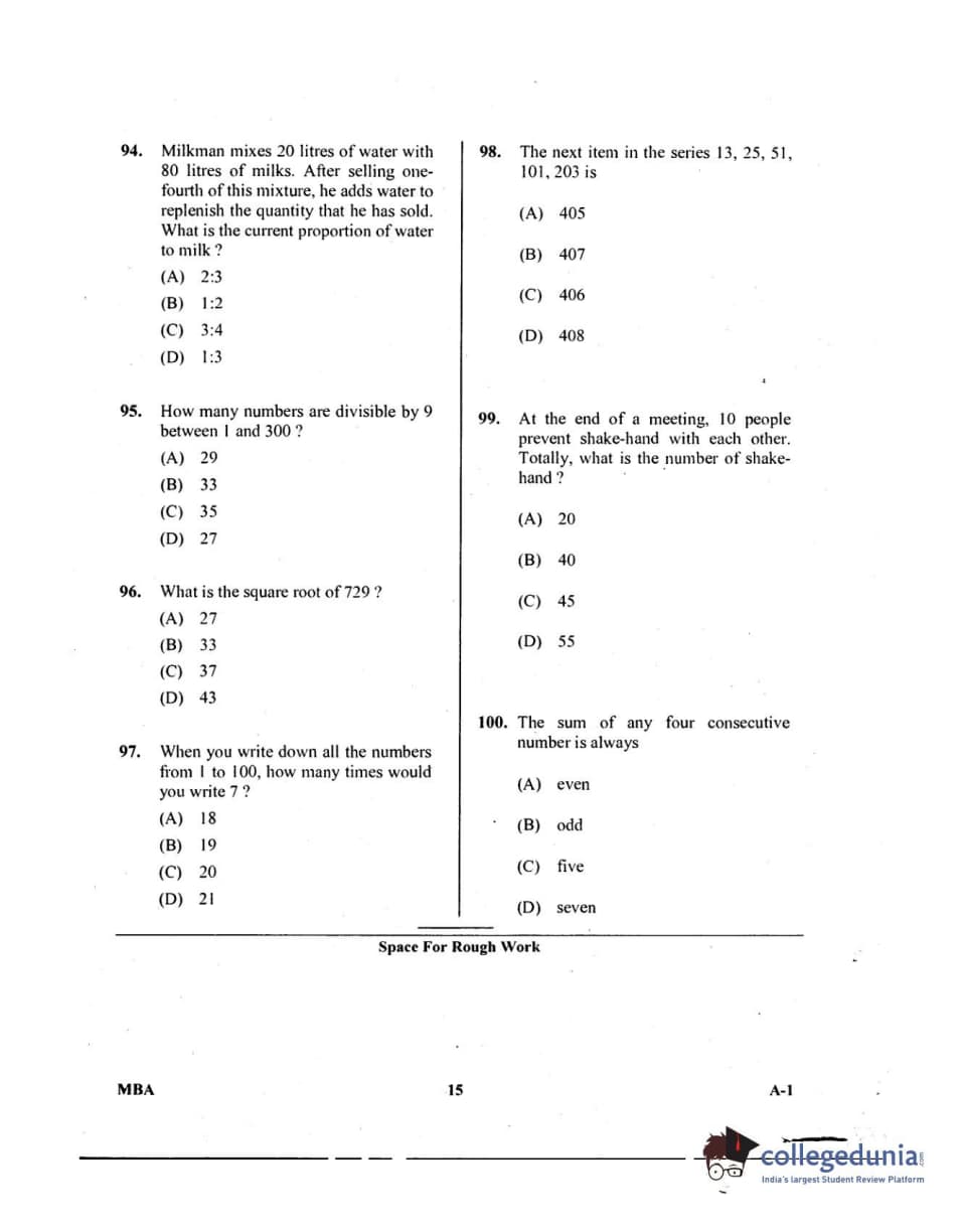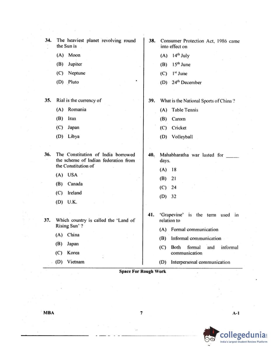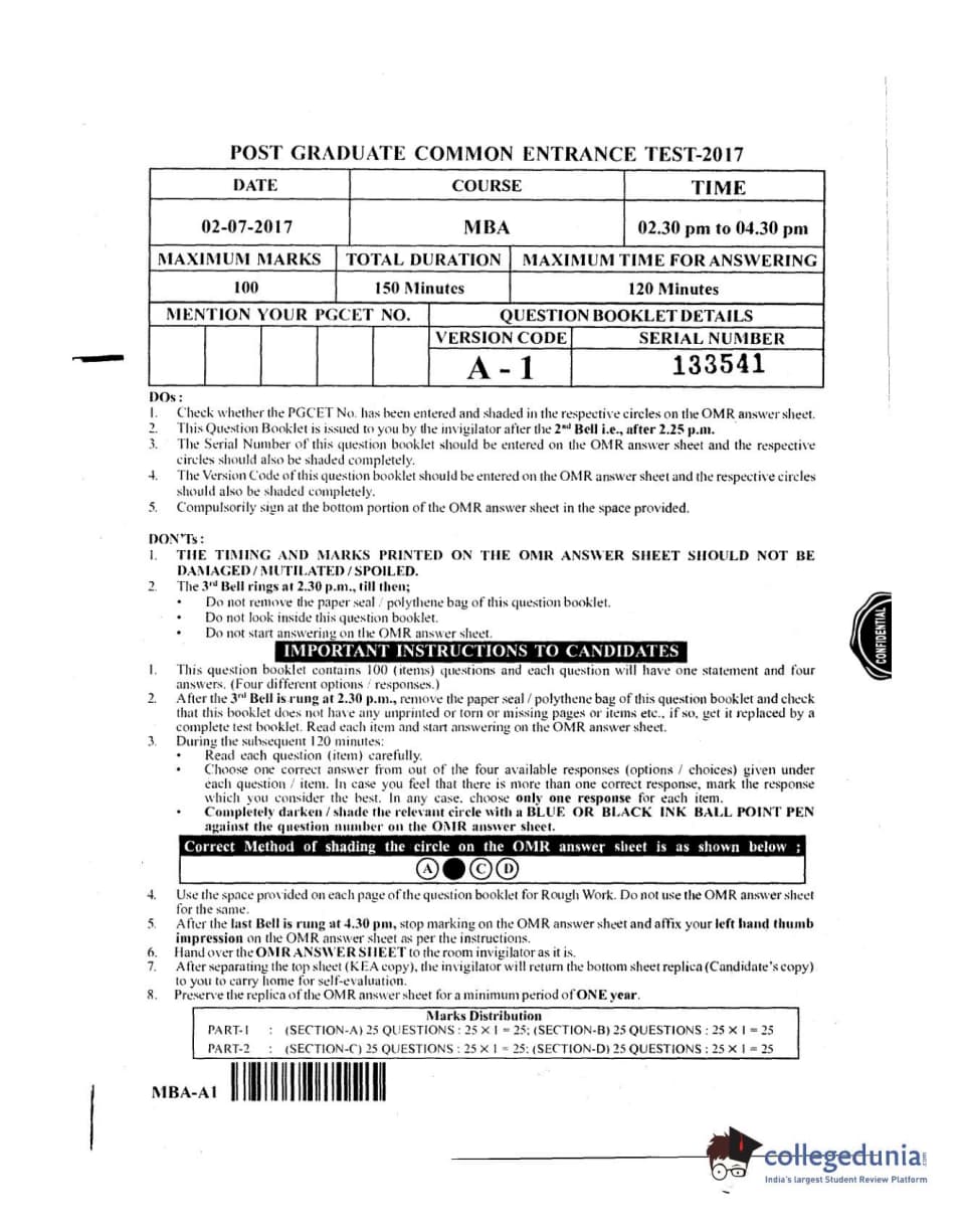 Karnataka PGCET 2017 MBA Question paper with answer key pdf conducted on July 2, 2017 in Afternoon Session 2:30 PM to 4:30 PM for A-1 is available for download. The exam was successfully organized by Karnataka Examinations Authority (KEA). The question paper comprised a total of 100 questions divided among four sections.
