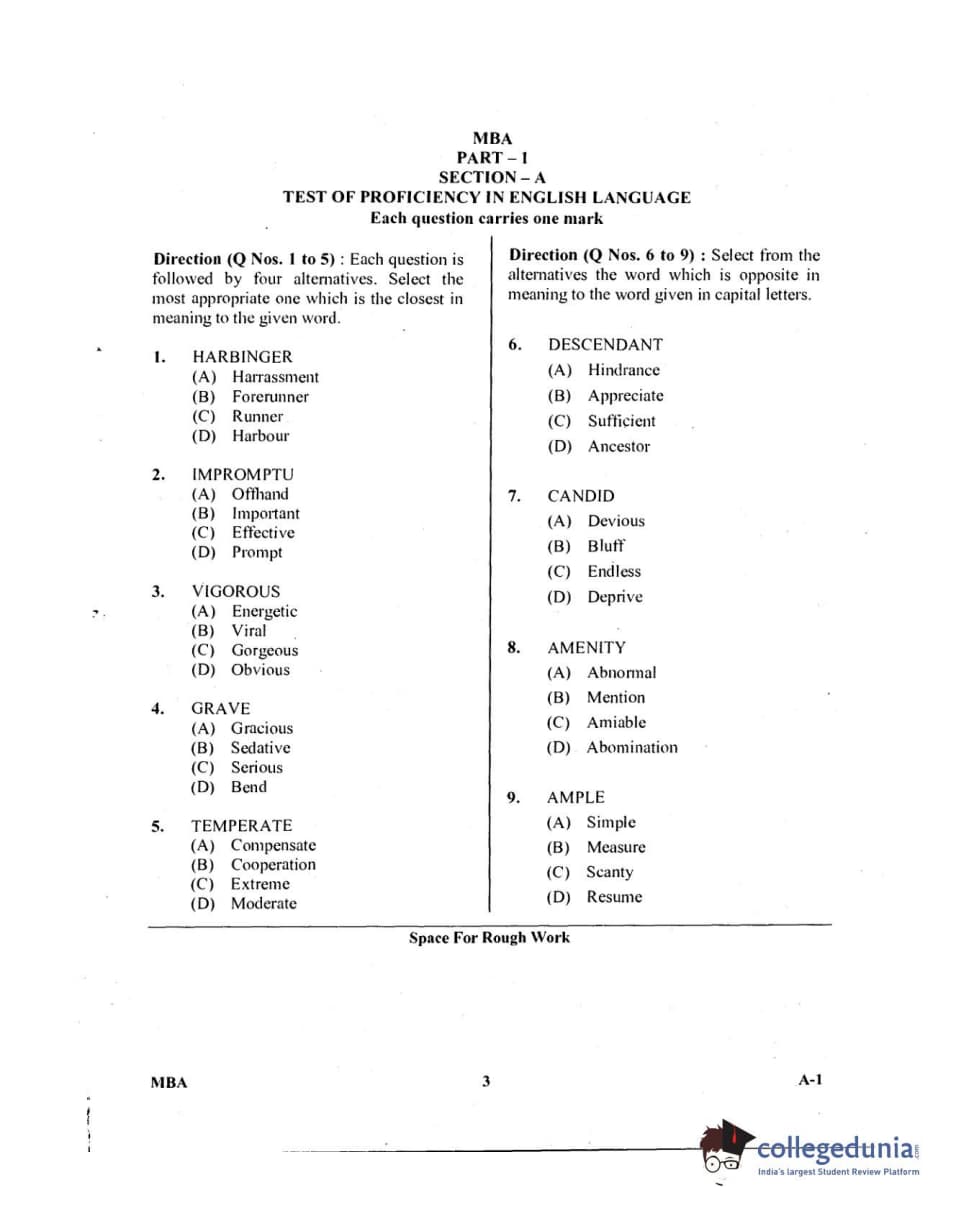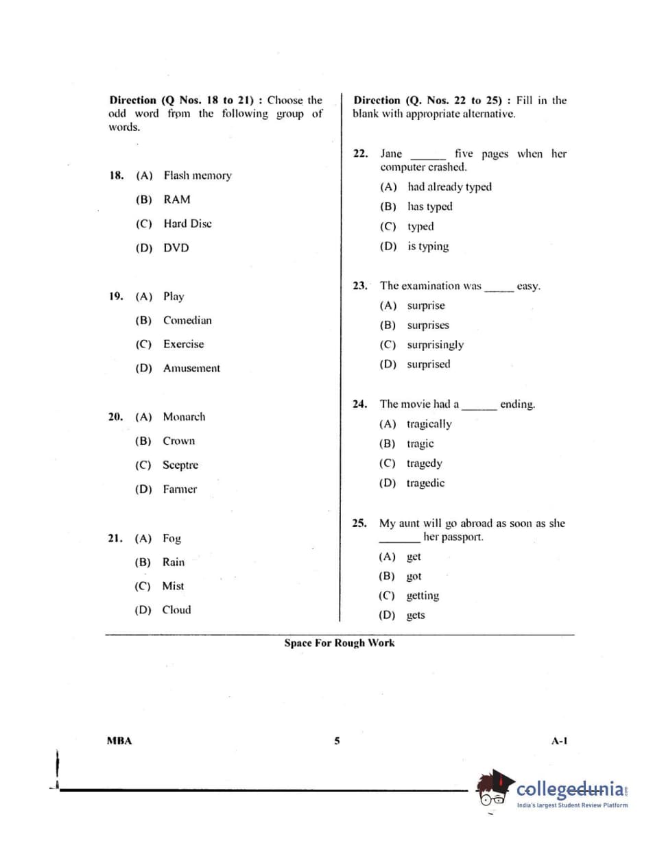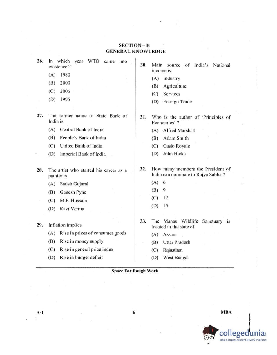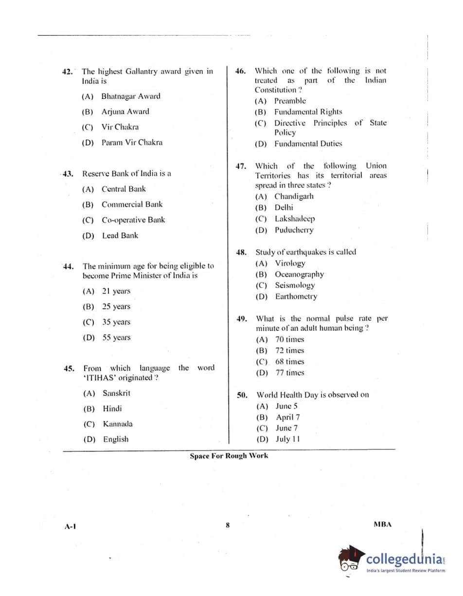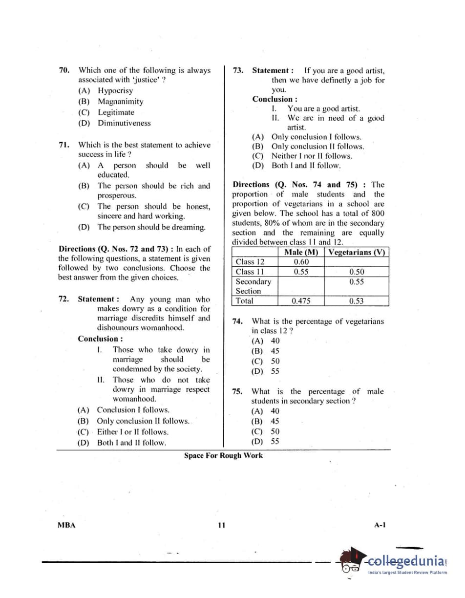 Karnataka PGCET 2017 MBA Question Paper with Answer Key PDFs for Afternoon Session