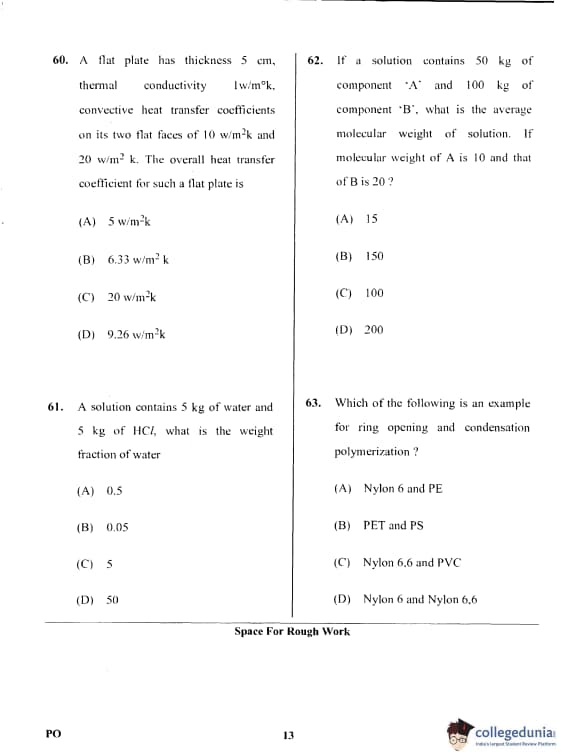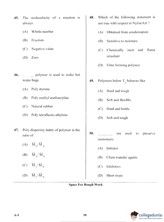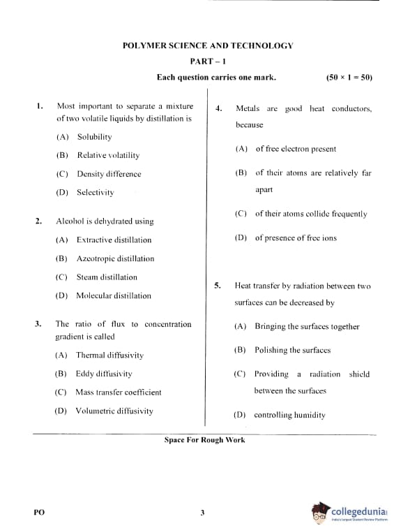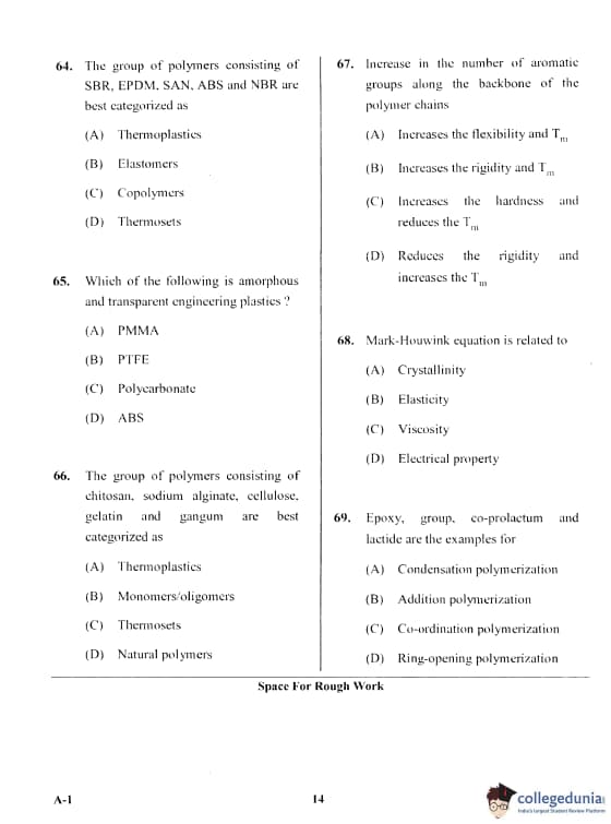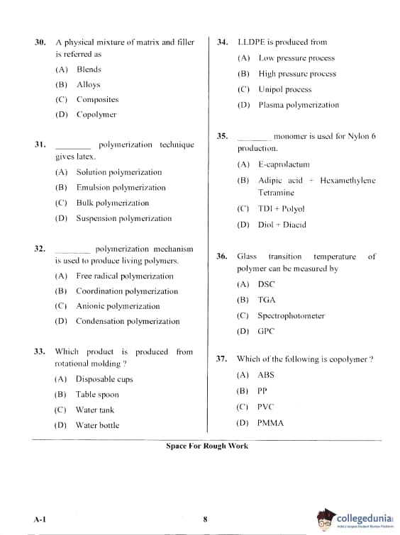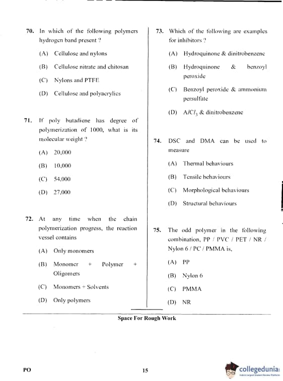 Karnataka PGCET 2017 Polymer Science and Technology Question Paper with Answer Key PDF for Afternoon Session