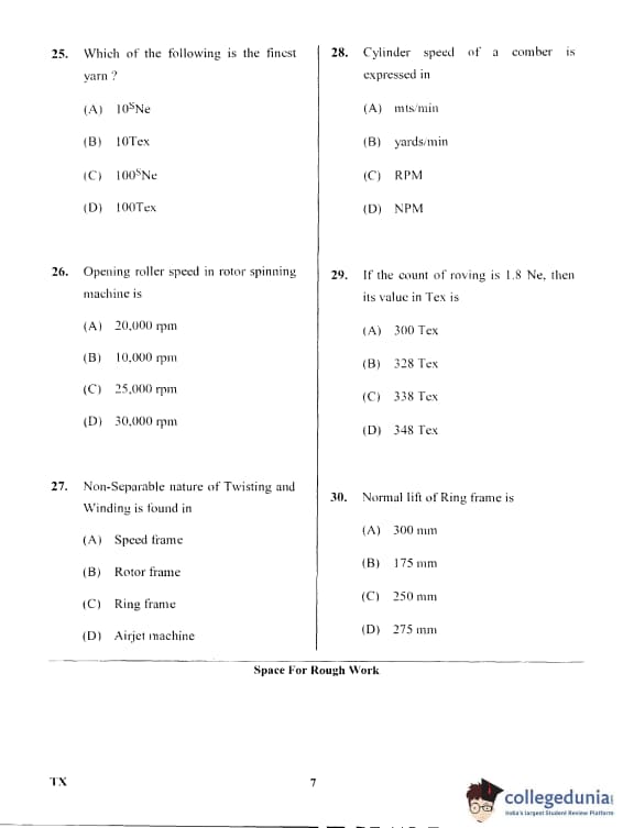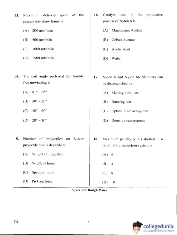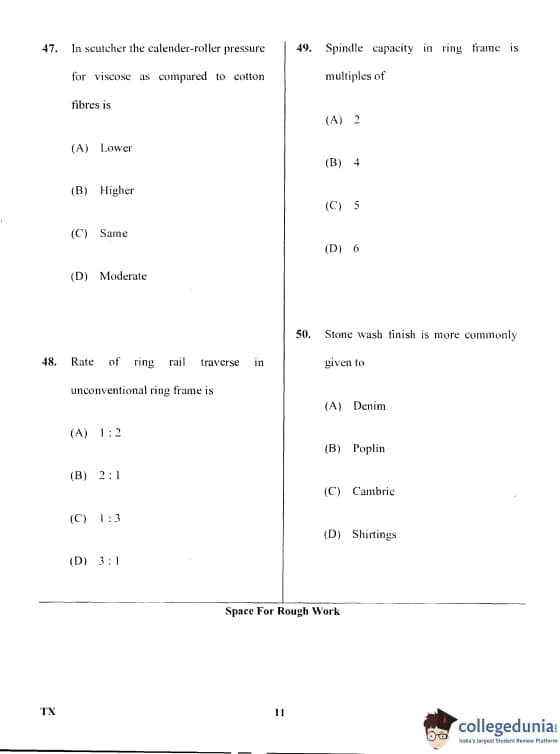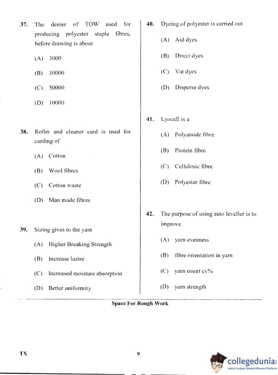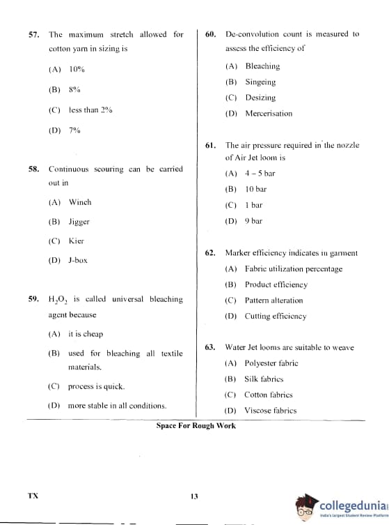 Karnataka PGCET 2017 Textile Technology Question Paper with Answer Key PDF for Afternoon Session
