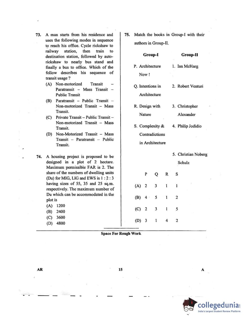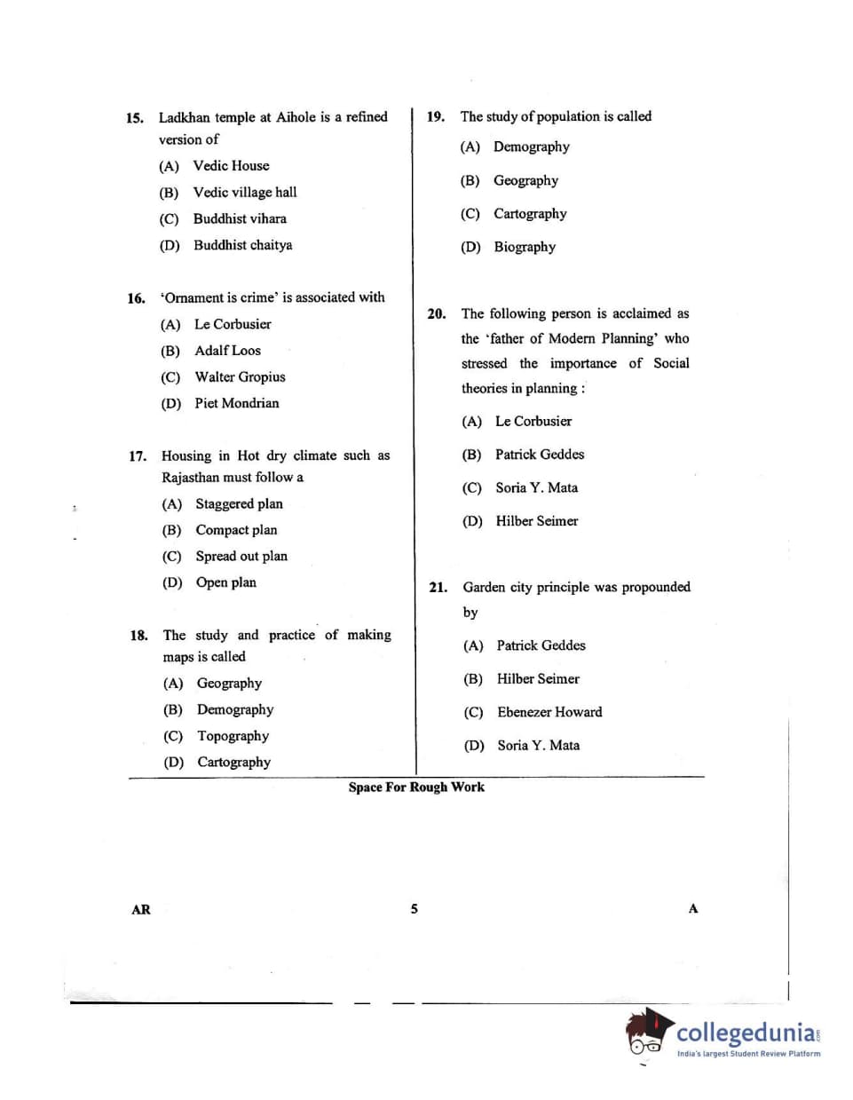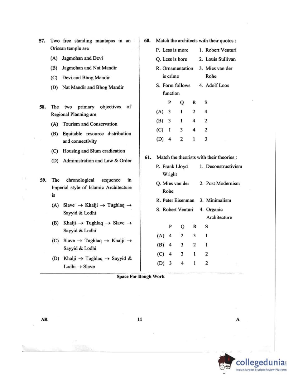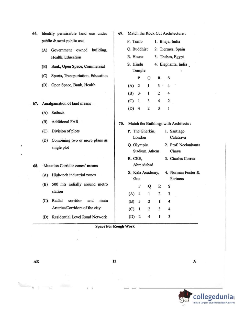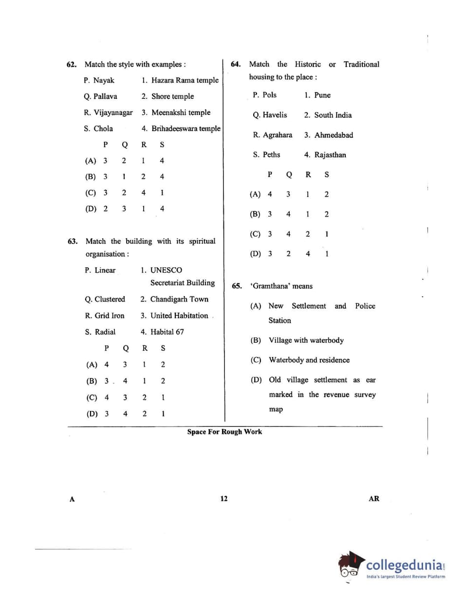 Karnataka PGCET 2018 Architecture Question Paper with Answer Key PDFs for Afternoon Session