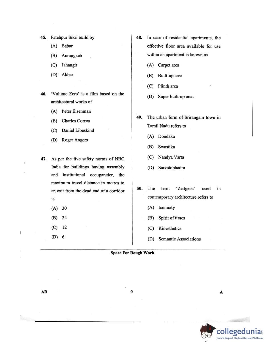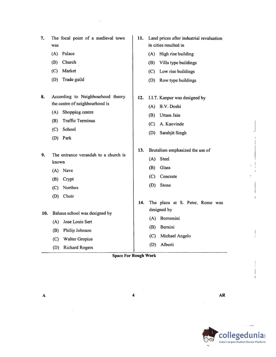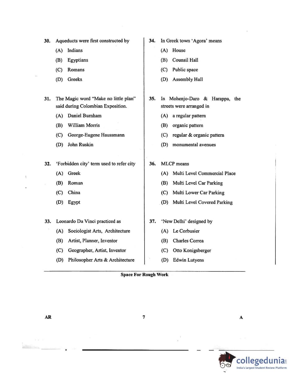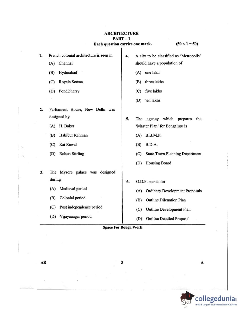 Karnataka PGCET 2018 Architecture Question Paper with Answer Key PDFs for Afternoon Session