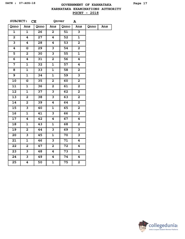 Collegedunia has provided Karnataka PGCET Previous Year Question paper pdf with answer key in the links given below: