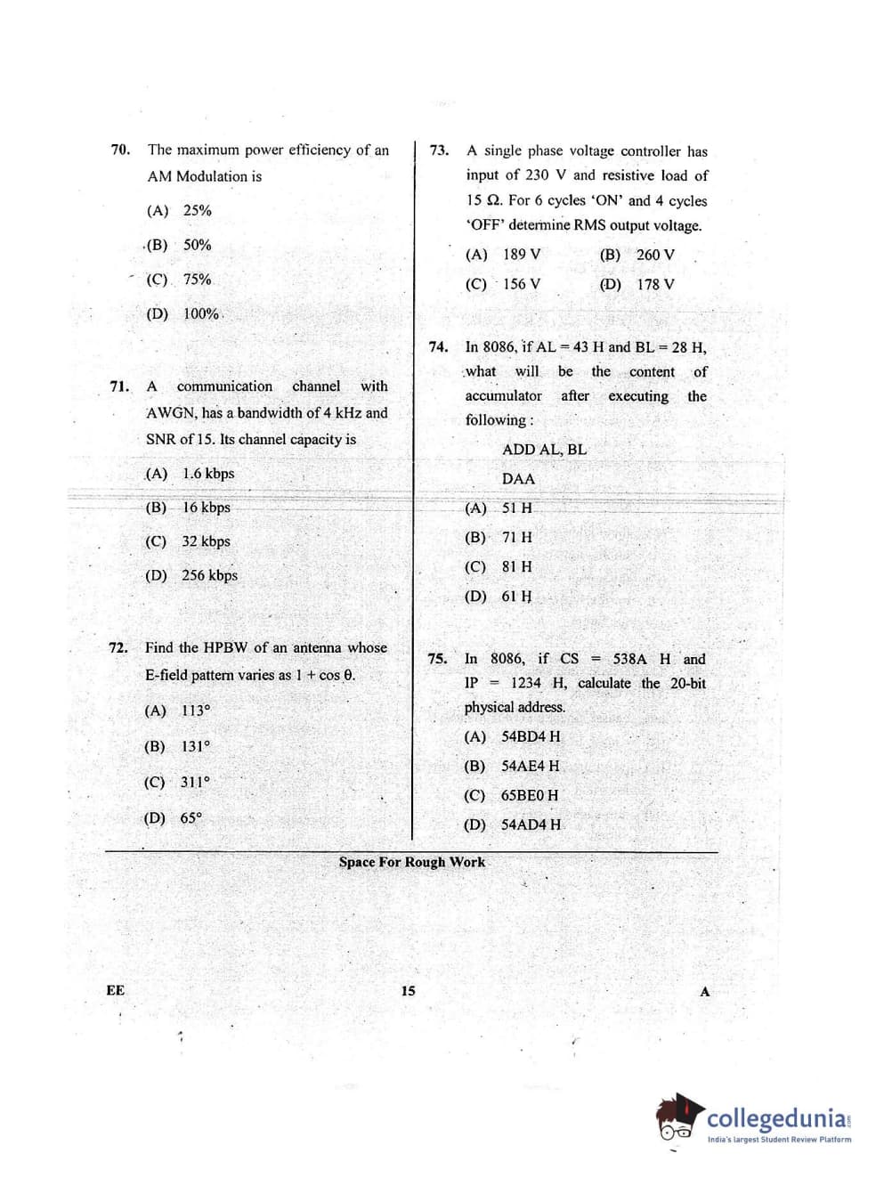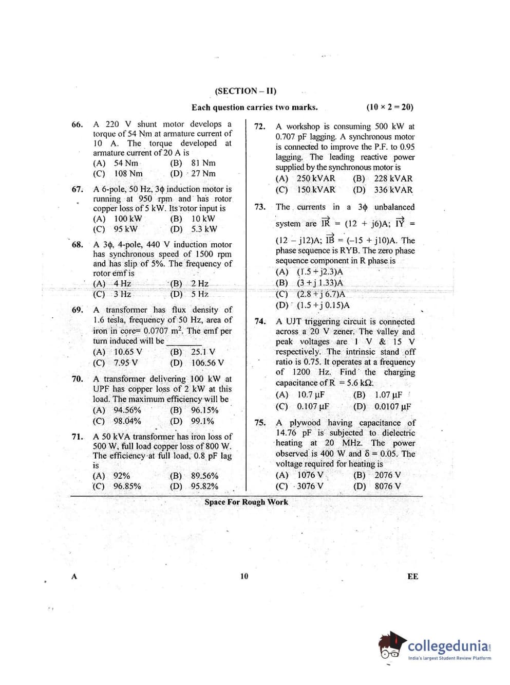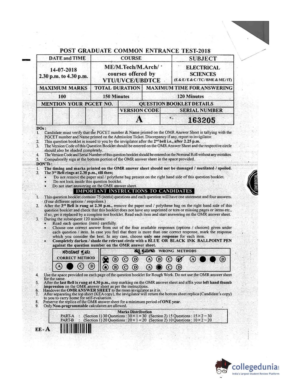 Karnataka PGCET 2018 Electrical Sciences Question paper with answer key pdf conducted on July 14, 2018 in Afternoon Session 2:30 PM to 4:30 PM for A is available for download. The exam was successfully organized by Karnataka Examinations Authority (KEA). The question paper comprised a total of 75 questions.