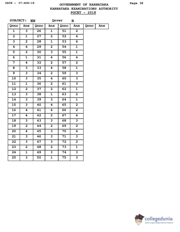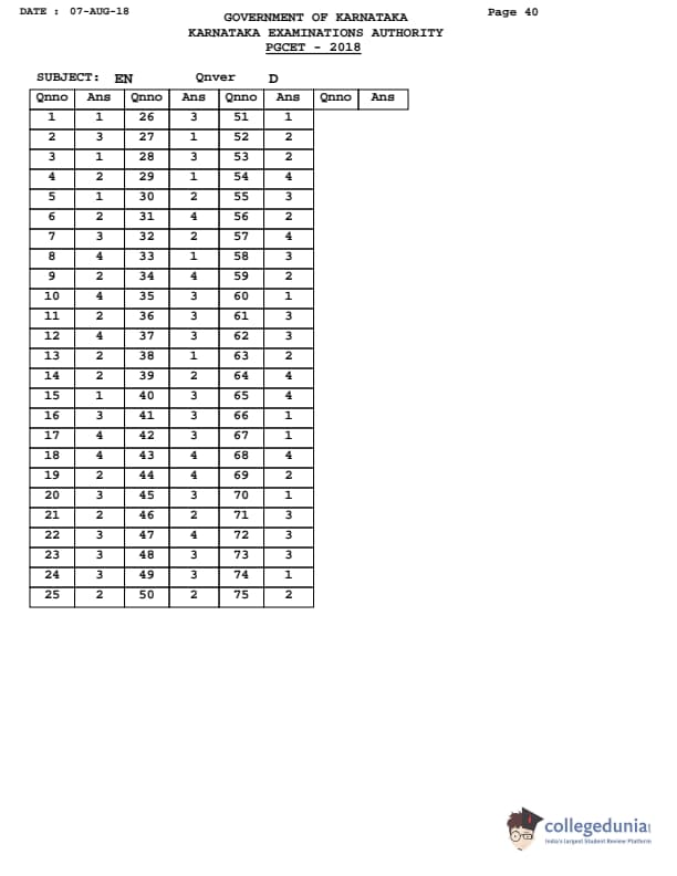 Collegedunia has provided Karnataka PGCET Previous Year Question paper pdf with answer key in the links given below: