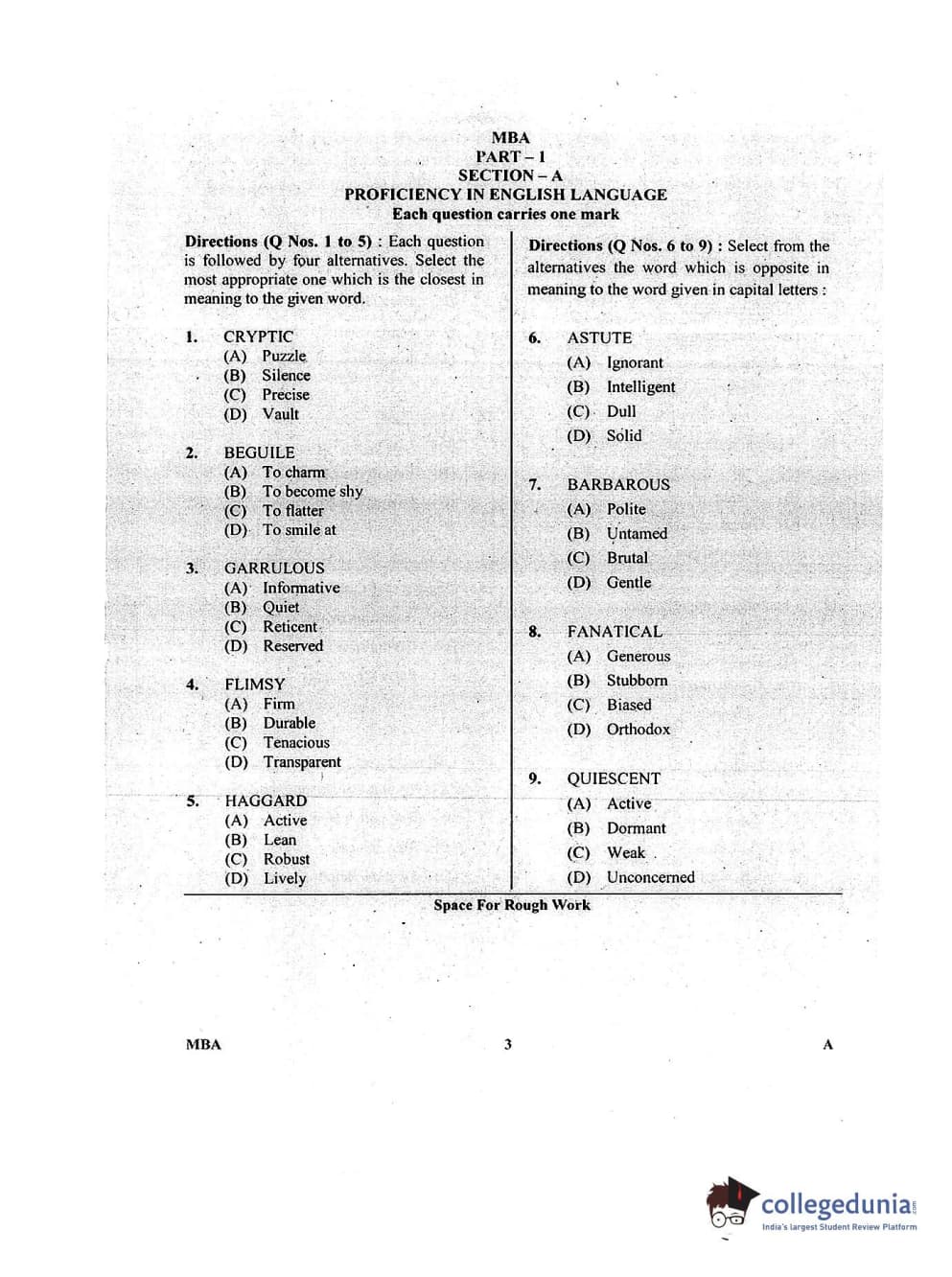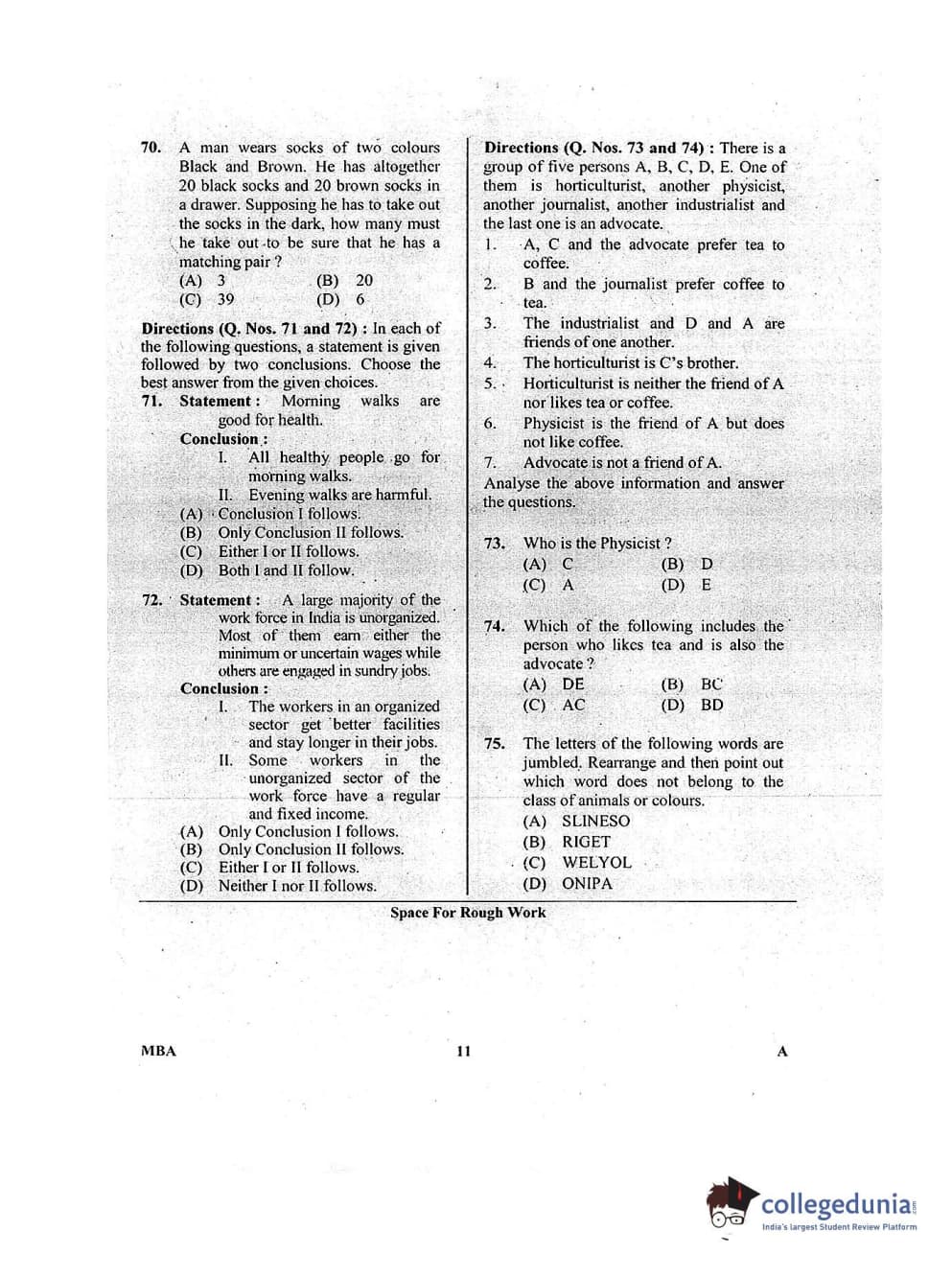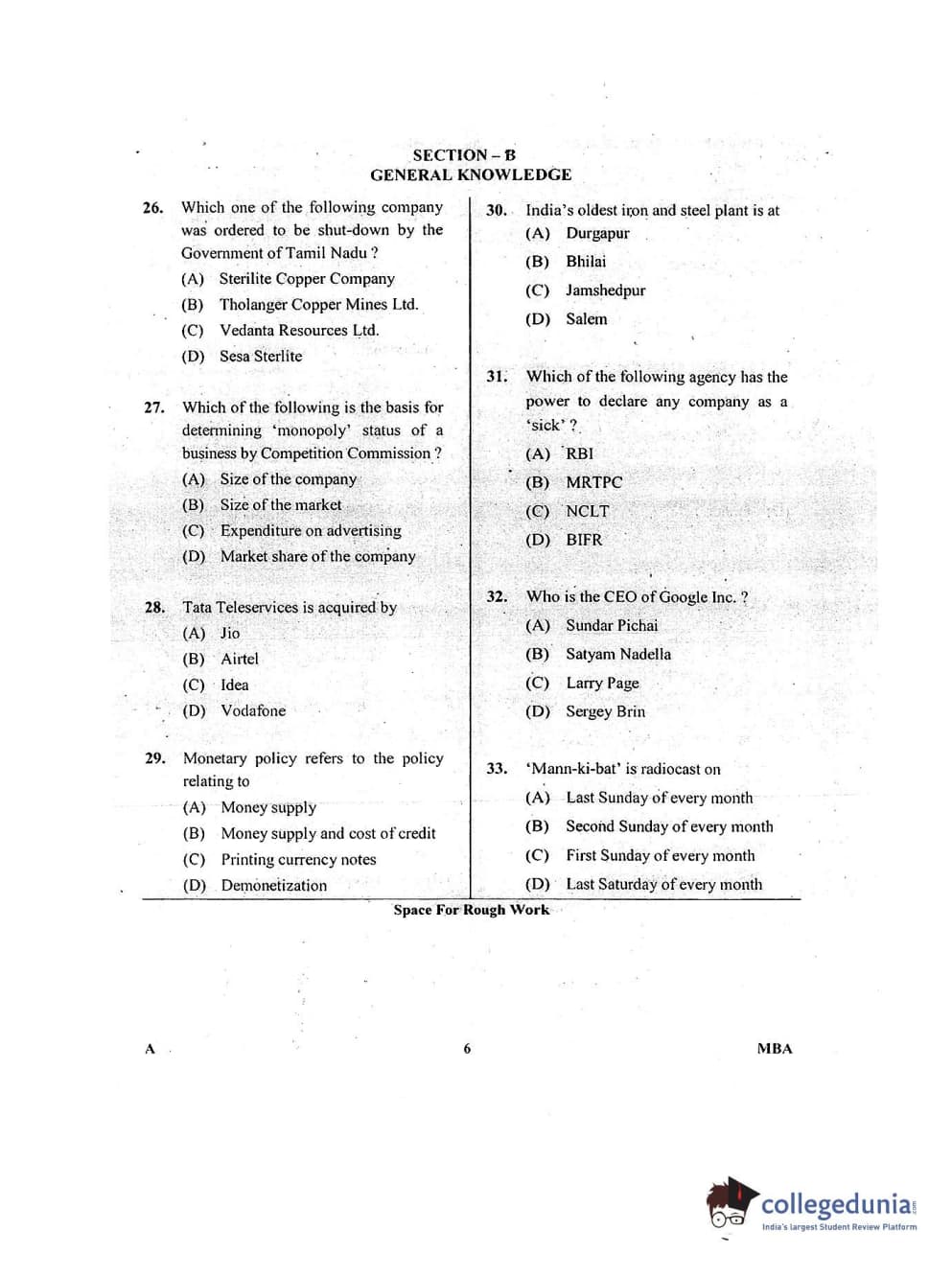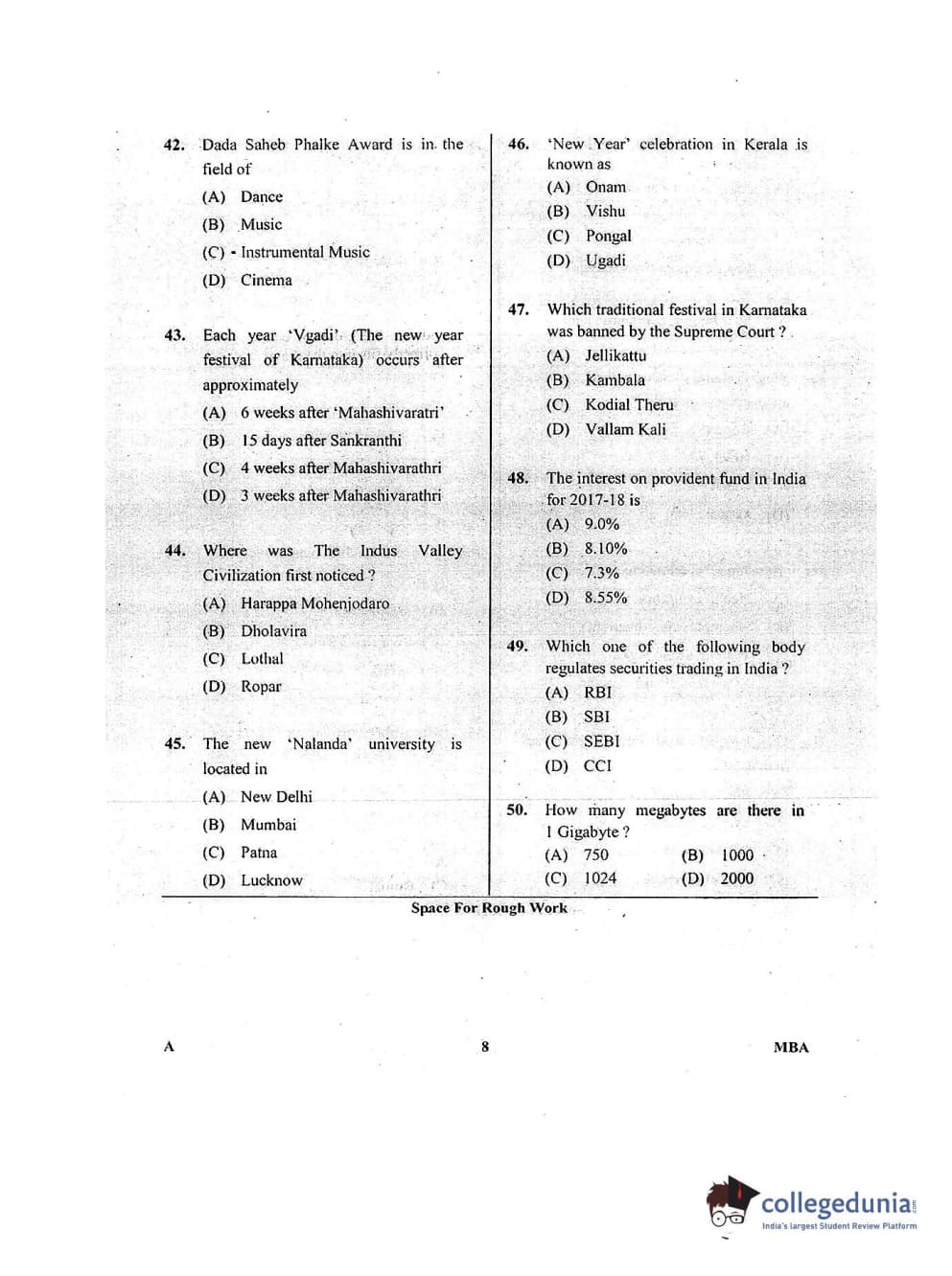 Karnataka PGCET 2018 MBA Question Paper with Answer Key PDFs for Afternoon Session