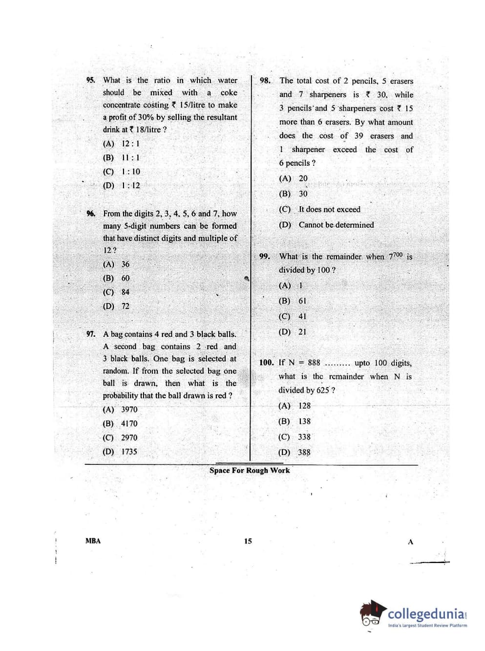 Karnataka PGCET 2018 MBA Question paper with answer key pdf conducted on July 15, 2018 in Afternoon Session 2:30 PM to 4:30 PM for A is available for download. The exam was successfully organized by Karnataka Examinations Authority (KEA). In terms of difficulty level, Karnataka PGCET was of Moderate level. The question paper comprised a total of 100 questions divided among four sections.