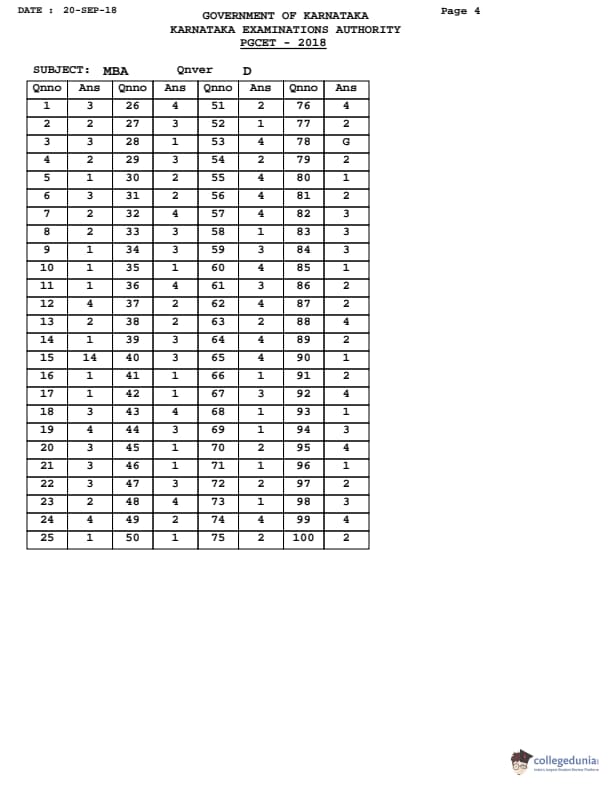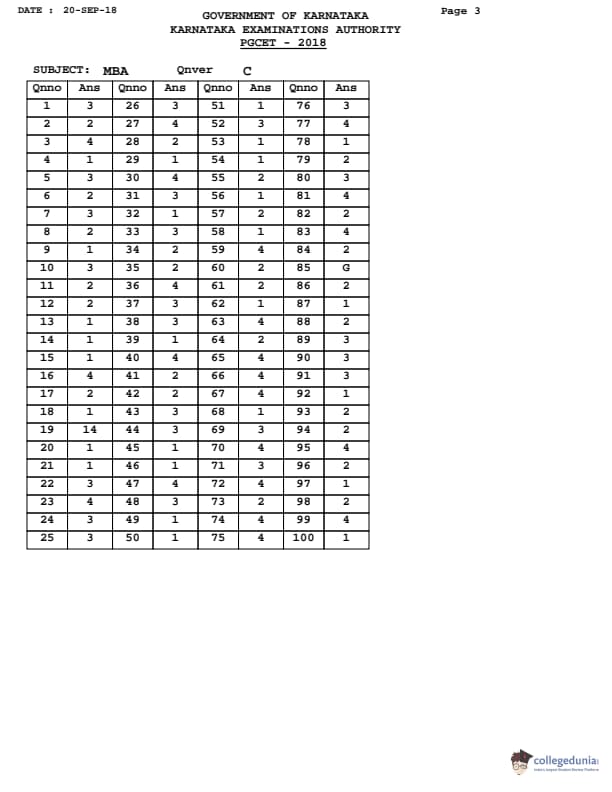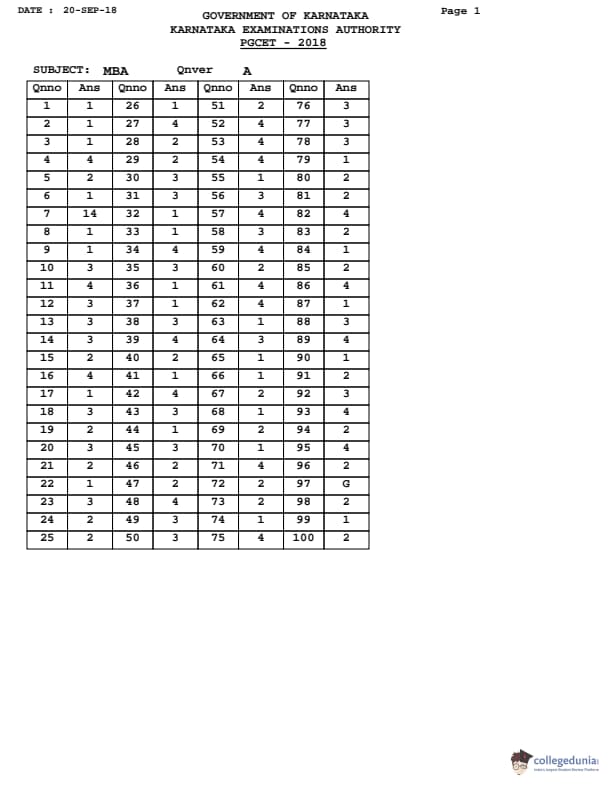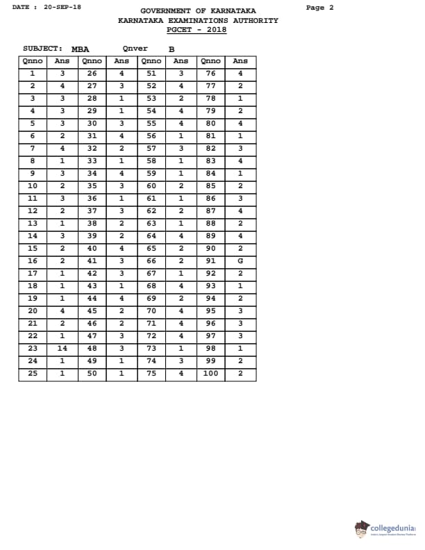 | Karnataka PGCET 2018 MBA Question Paper PDF | Karnataka PGCET 2018 MBA Answer Key PDF |
