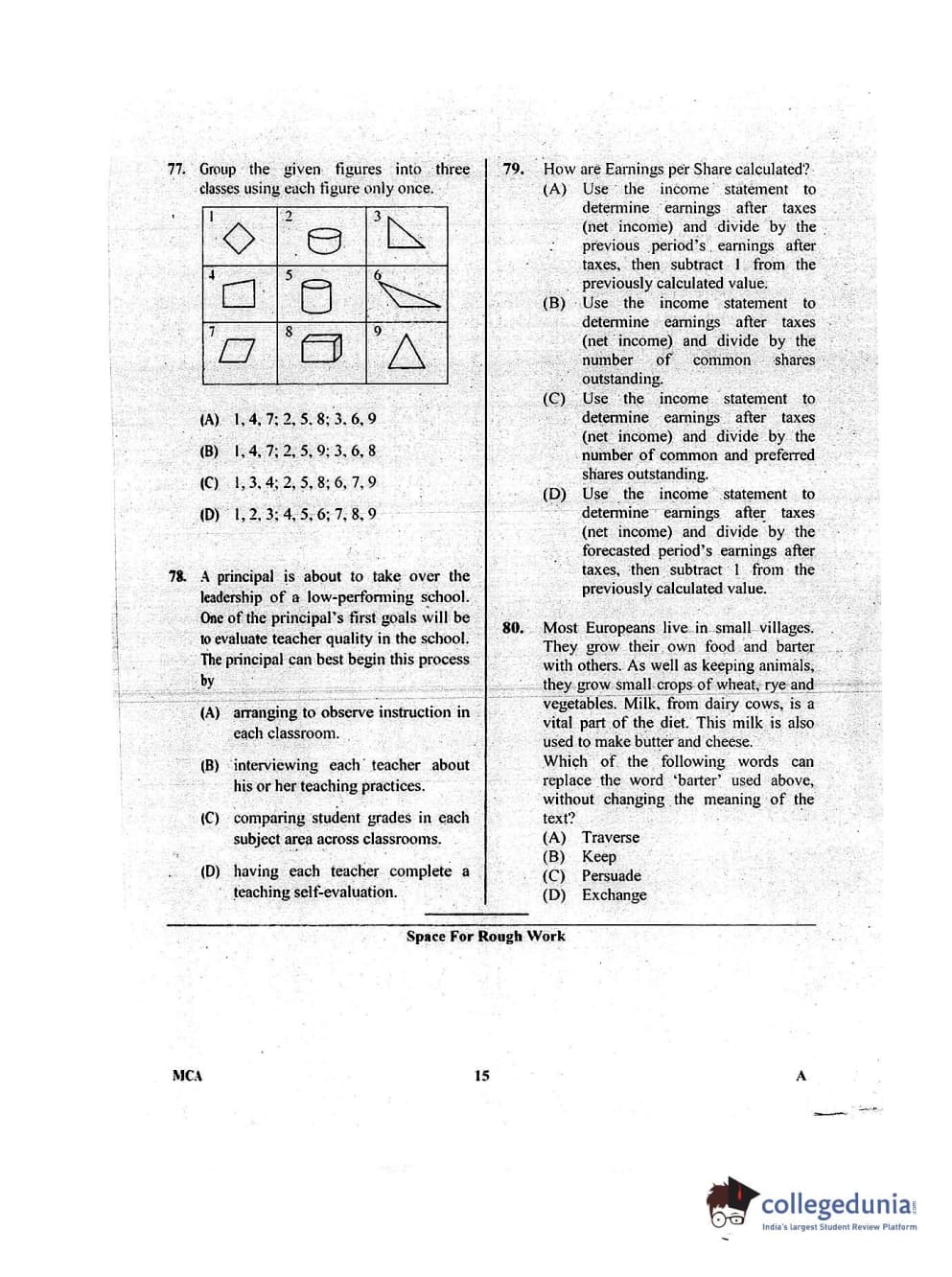 Karnataka PGCET 2018 MCA Question paper with answer key pdf conducted on July 15, 2018 in Morning Session 10:30 AM to 12:30 PM for A is available for download. The exam was successfully organized by Karnataka Examinations Authority (KEA). The question paper comprised a total of 80 questions.