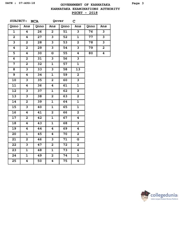 | Karnataka PGCET 2018 MCA Question Paper PDF | Karnataka PGCET 2018 MCA Answer Key PDF |