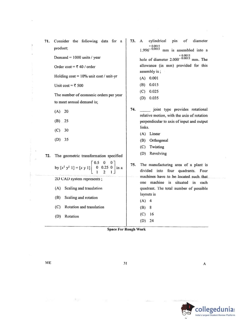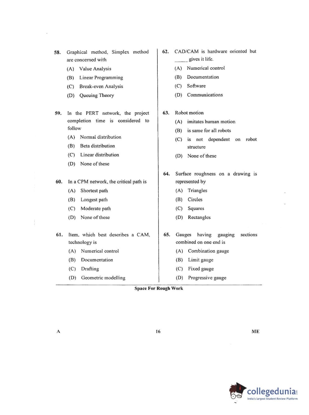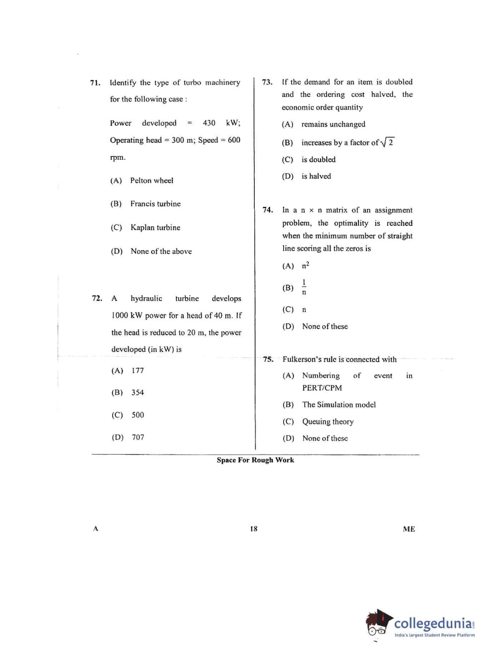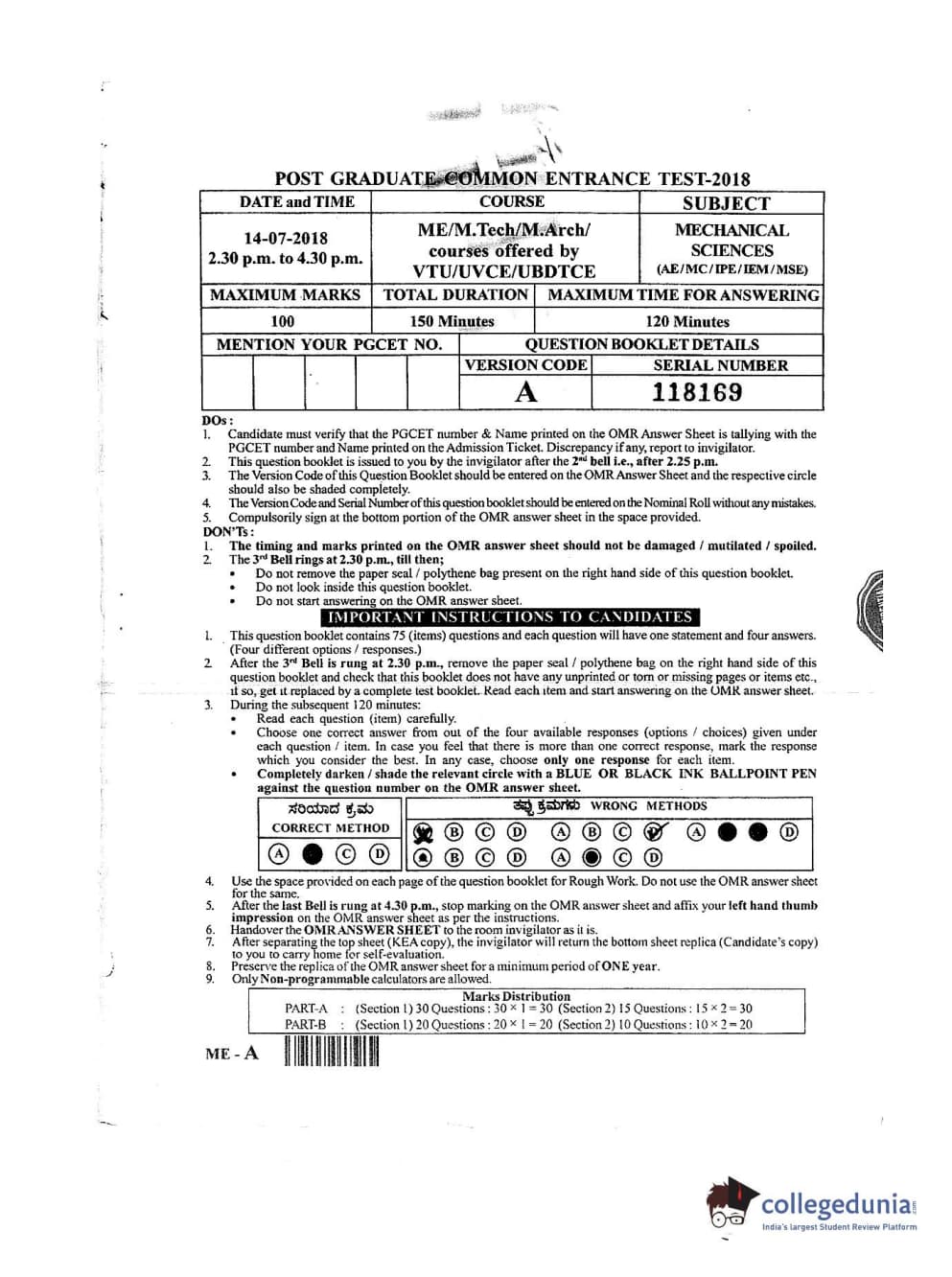 Karnataka PGCET 2018 Mechanical Sciences Question paper with answer key pdf conducted on July 14, 2018 in Afternoon Session 2:30 PM to 4:30 PM for A is available for download. The exam was successfully organized by Karnataka Examinations Authority (KEA). The question paper comprised a total of 75 questions.