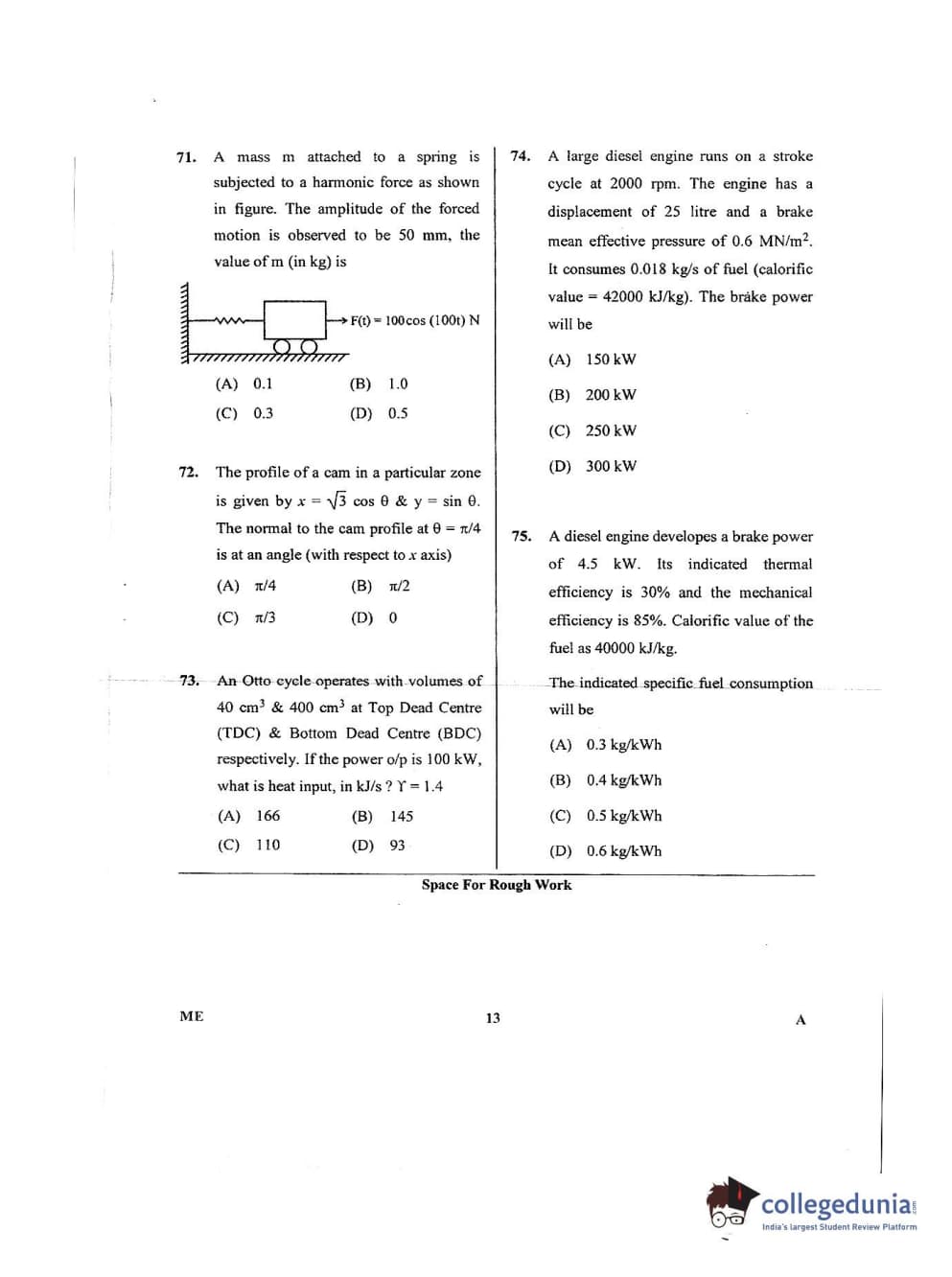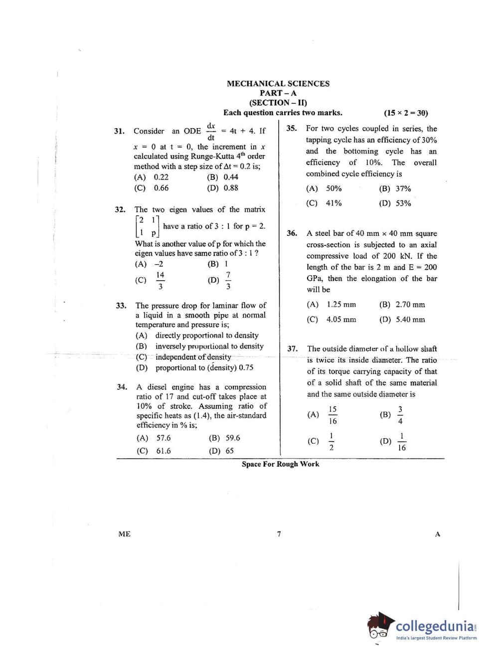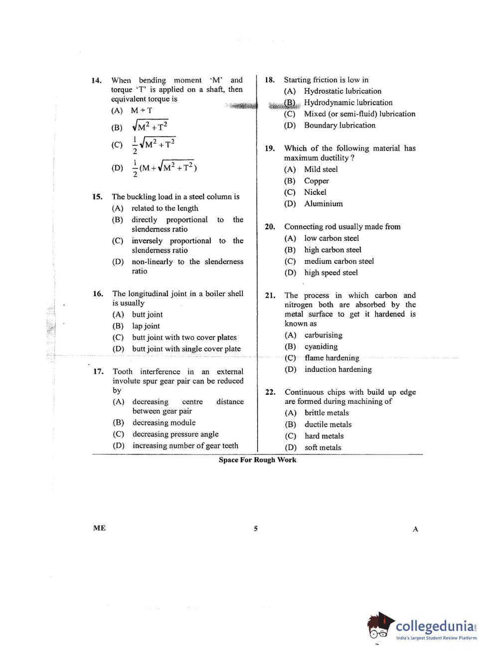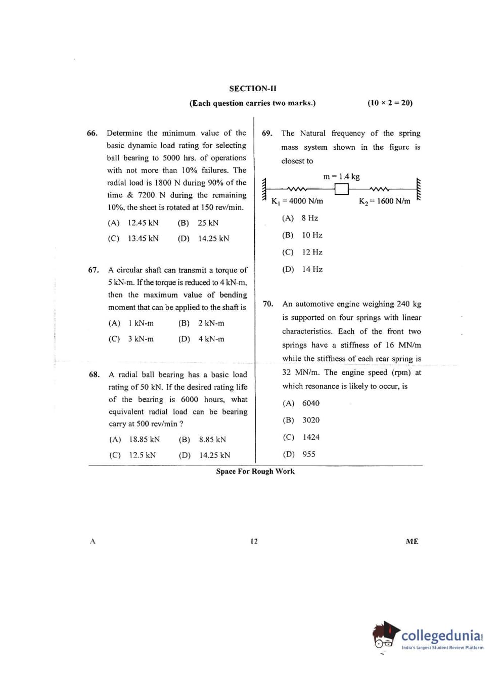 Karnataka PGCET 2018 Mechanical Sciences Question Paper with Answer Key PDFs for Afternoon Session