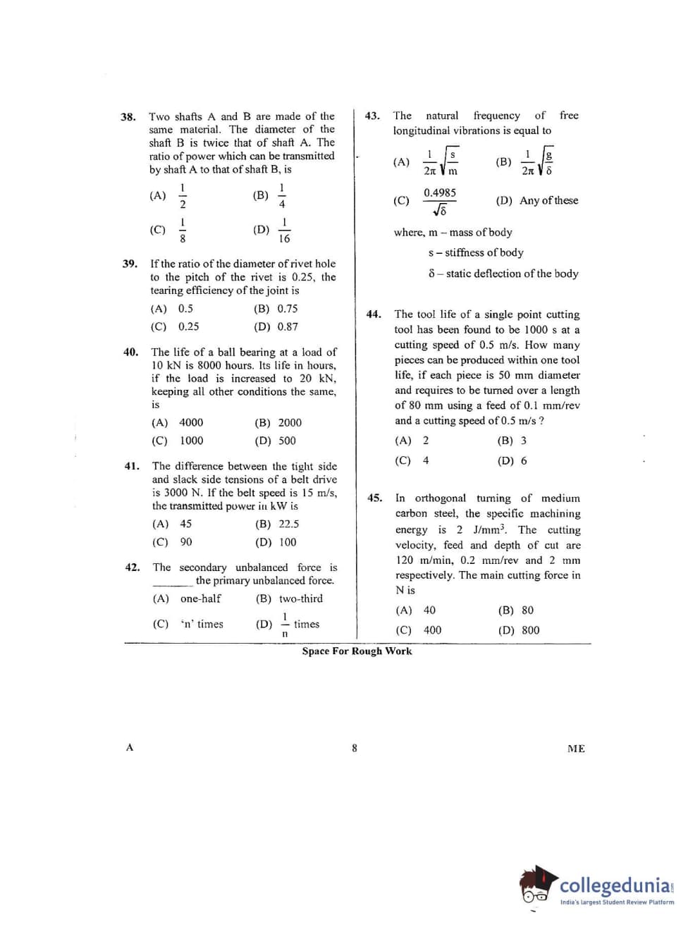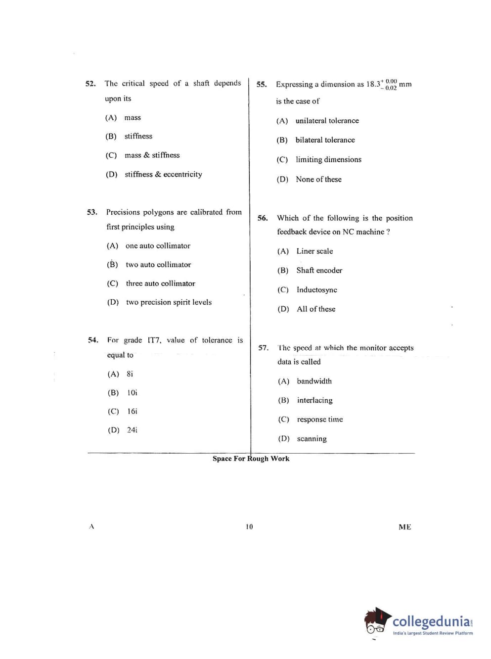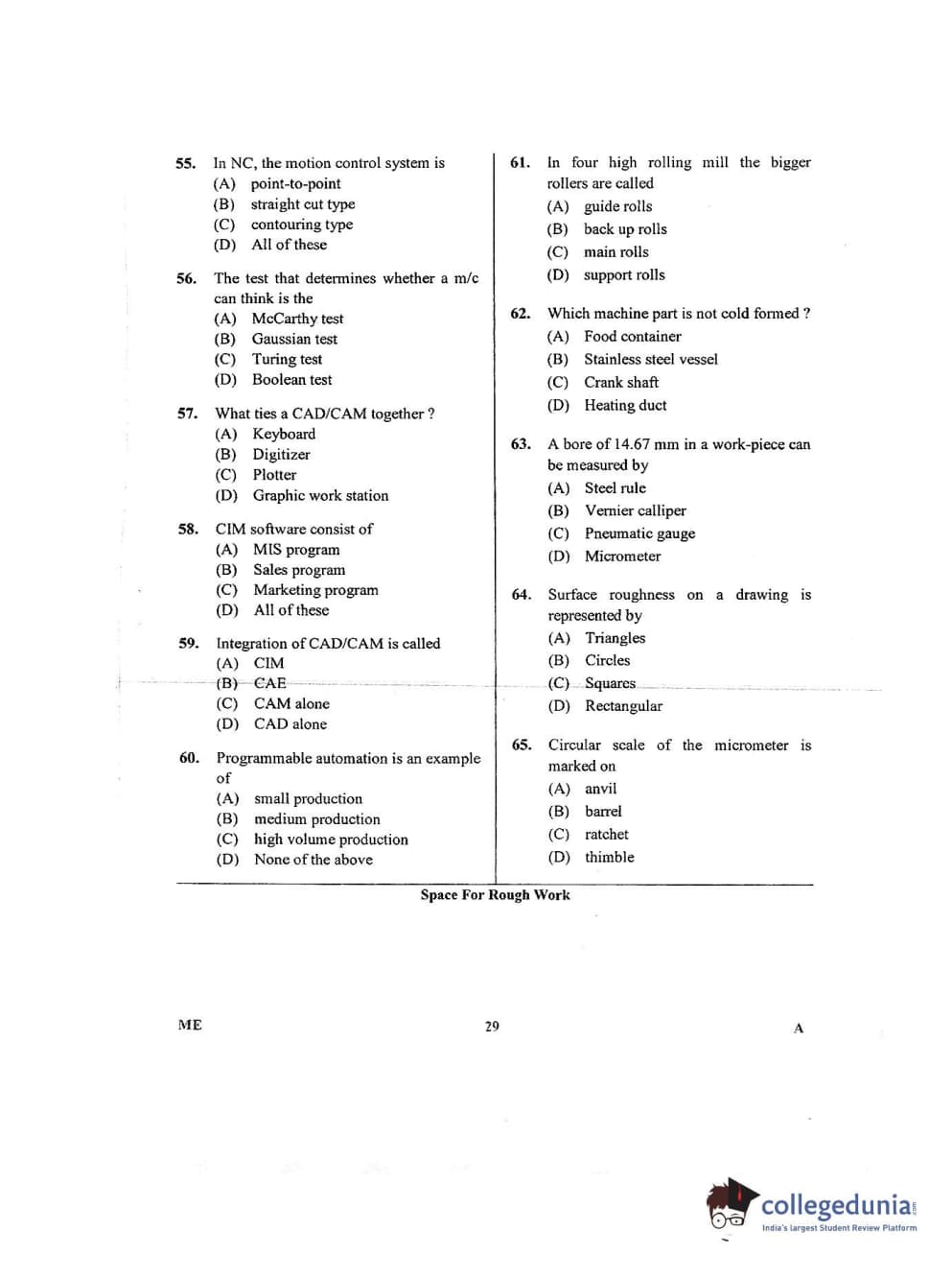 Karnataka PGCET 2018 Mechanical Sciences Question Paper with Answer Key PDFs for Afternoon Session