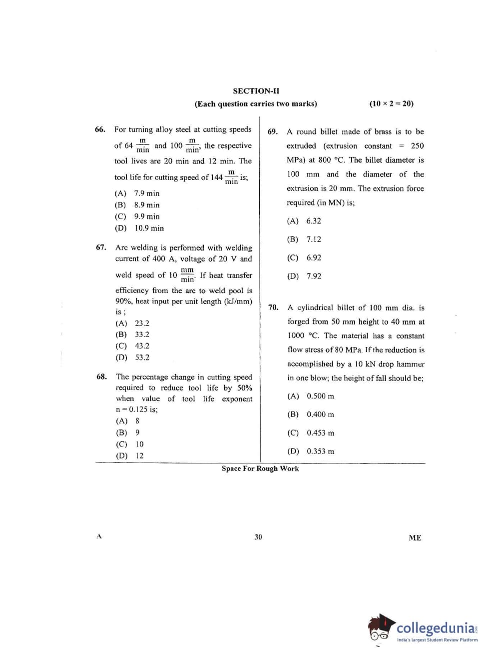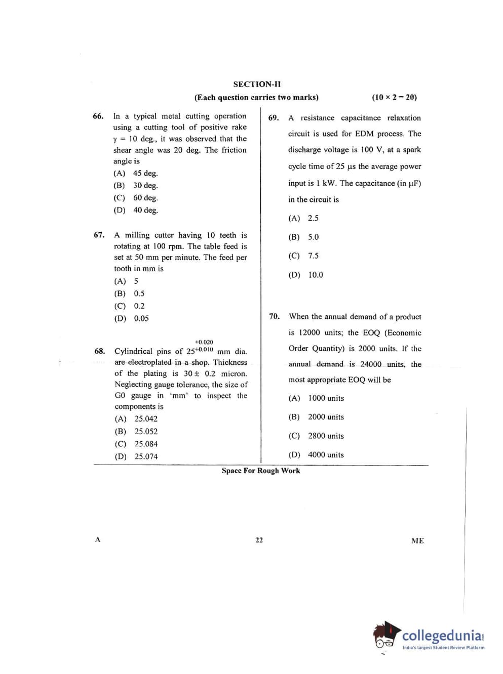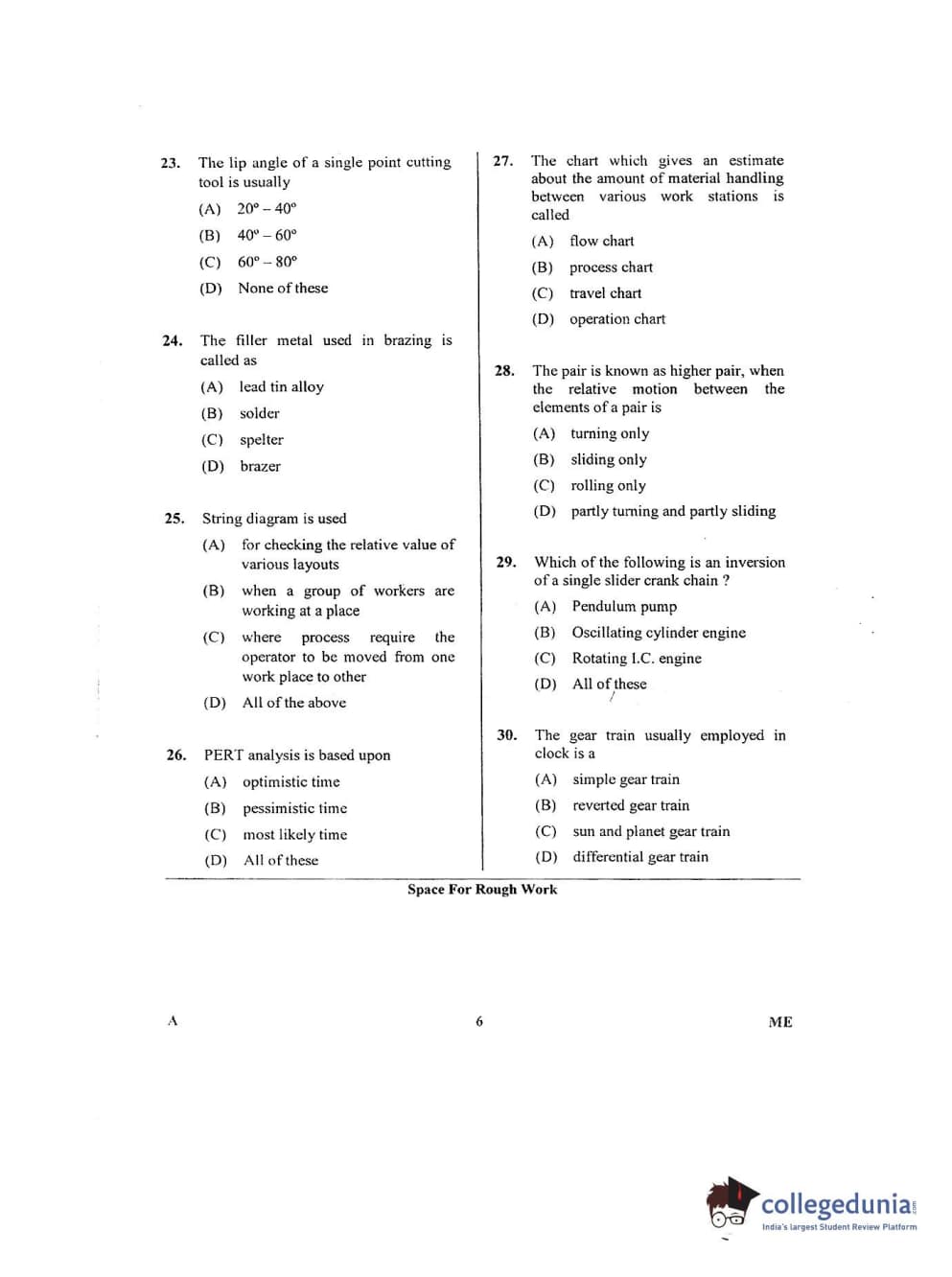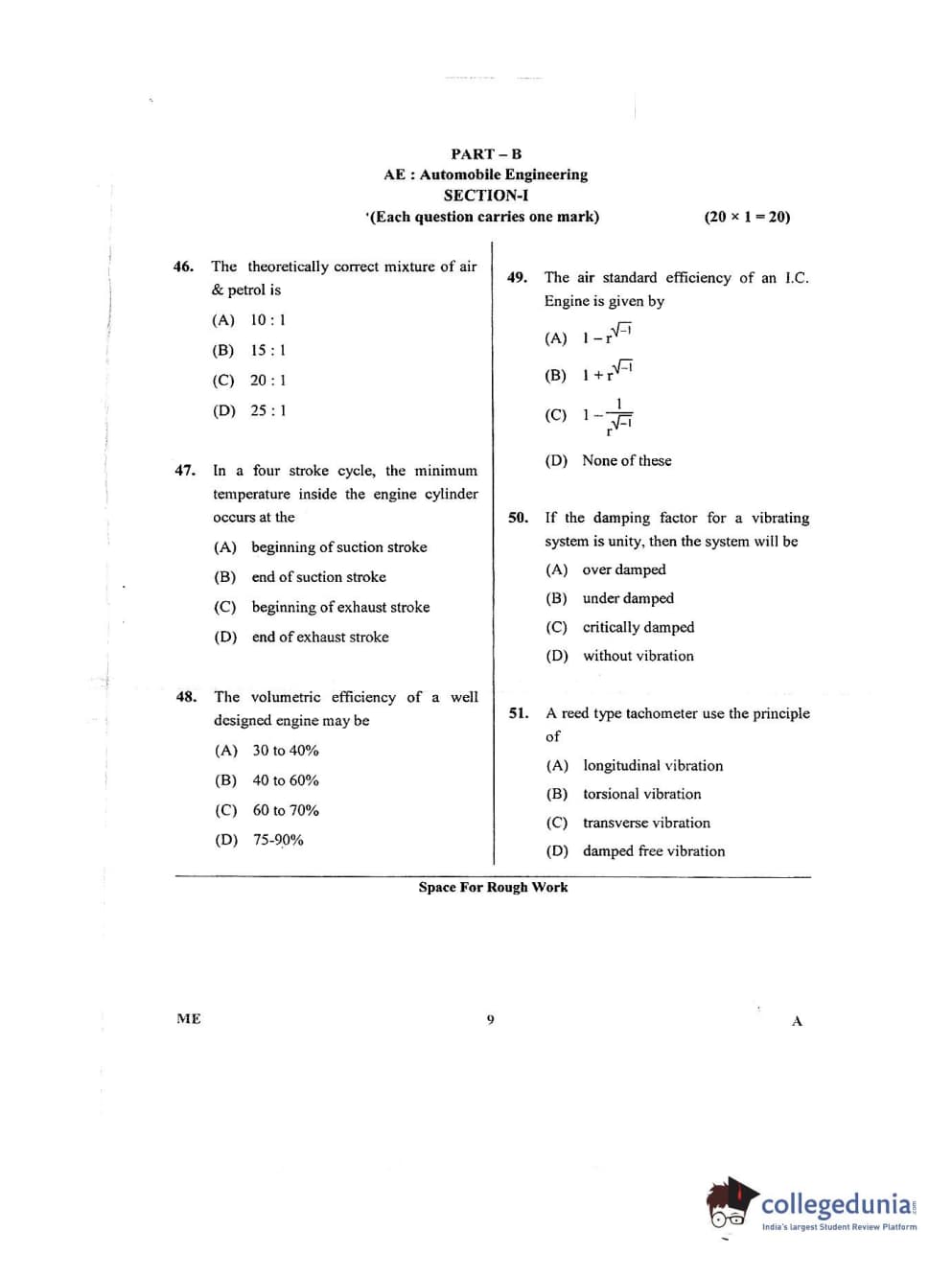 Karnataka PGCET 2018 Mechanical Sciences Question Paper with Answer Key PDFs for Afternoon Session