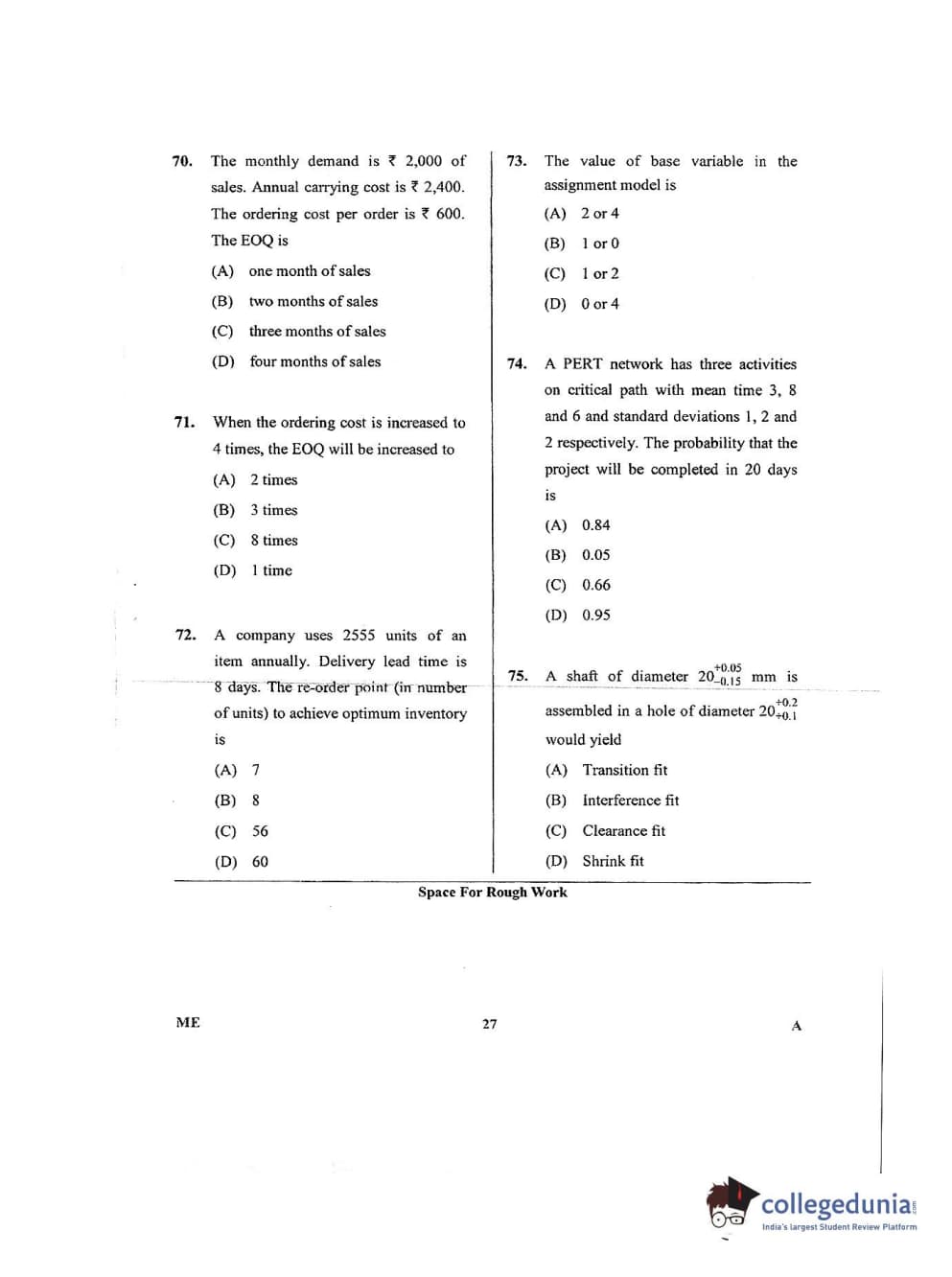 Collegedunia has provided Karnataka PGCET Previous Year Question paper pdf with answer key in the links given below: