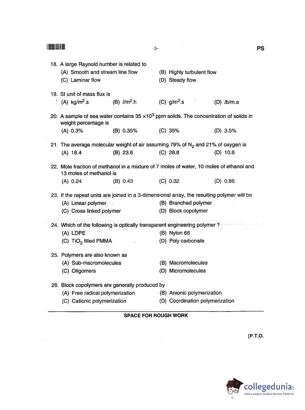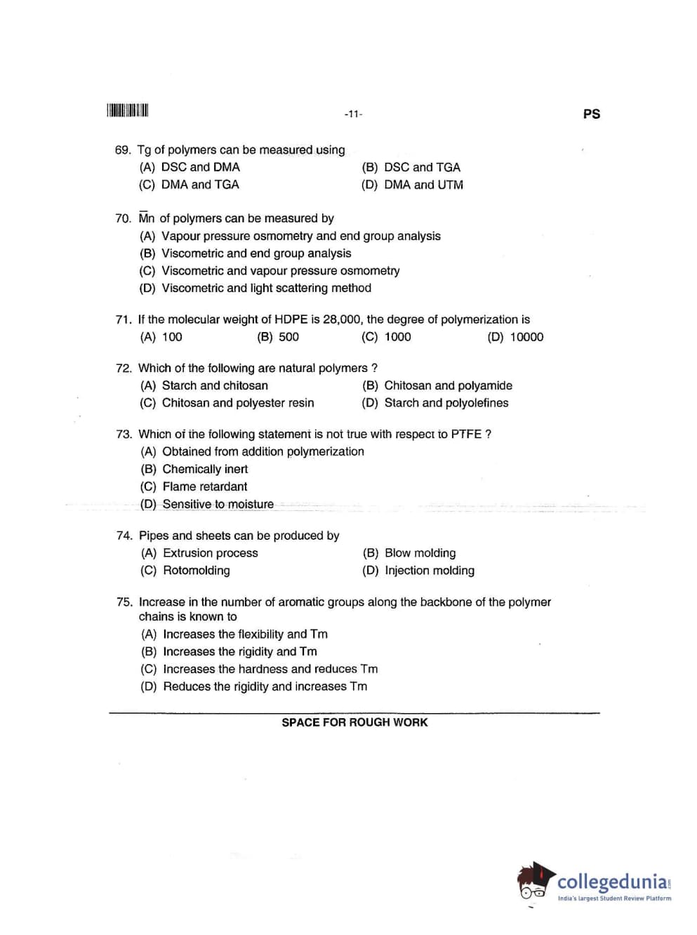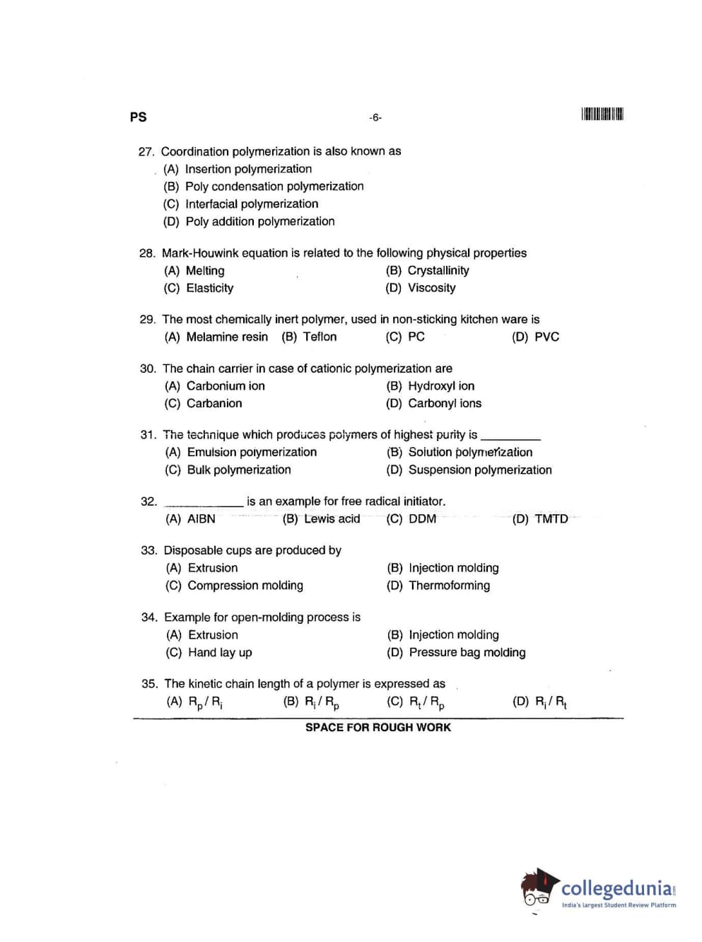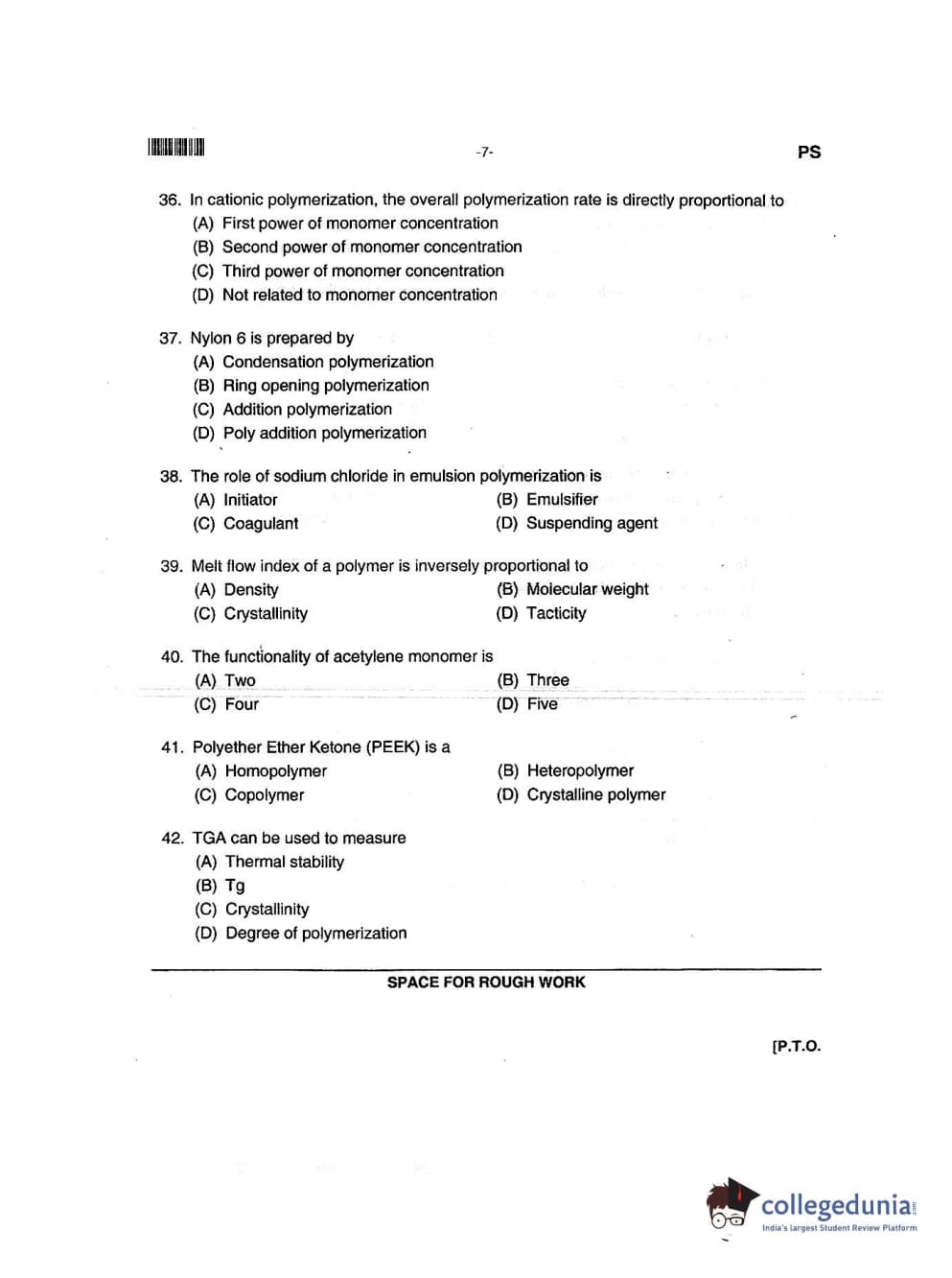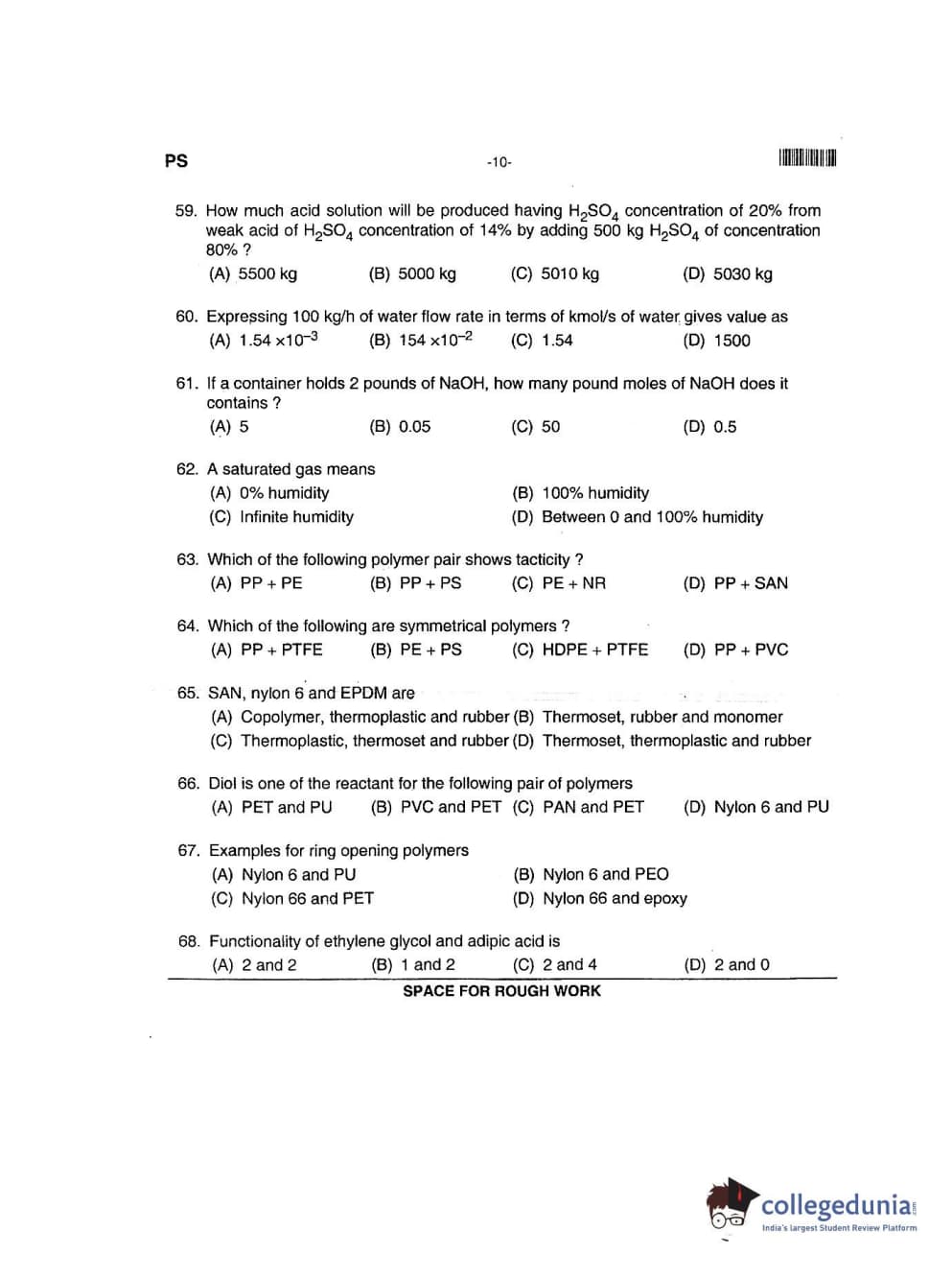 Karnataka PGCET 2018 Polymer Science and Technology Question Paper with Answer Key PDFs for Afternoon Session