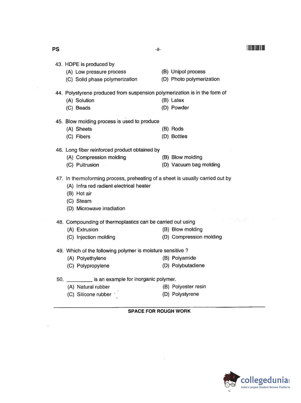 | Karnataka PGCET 2018 Polymer Science and Technology Question Paper PDF | Karnataka PGCET 2018 Polymer Science and Technology Answer Key PDF |