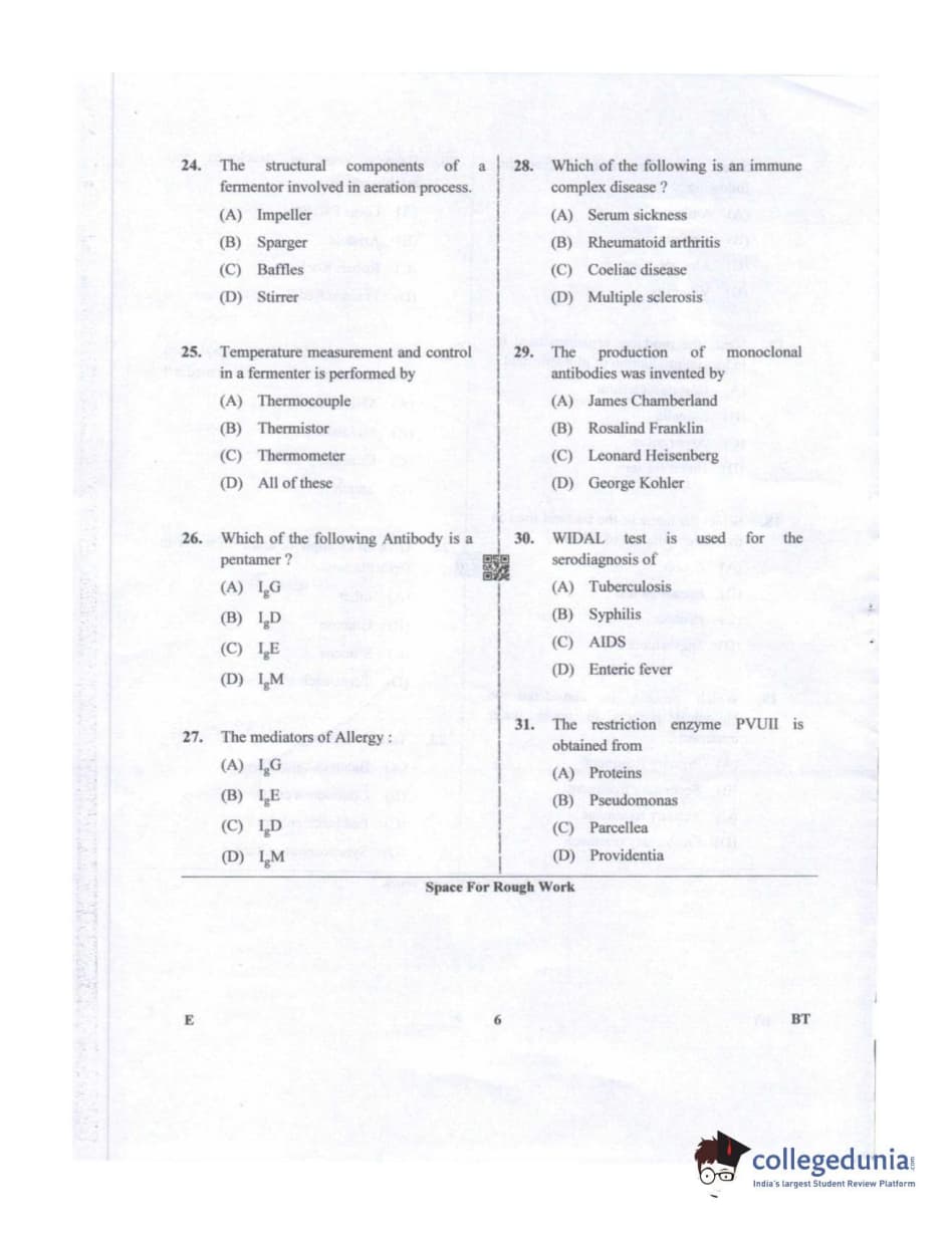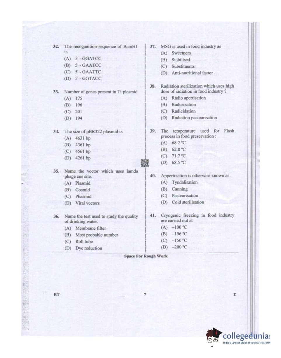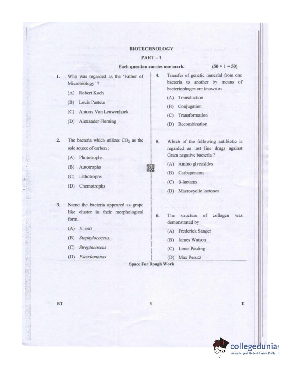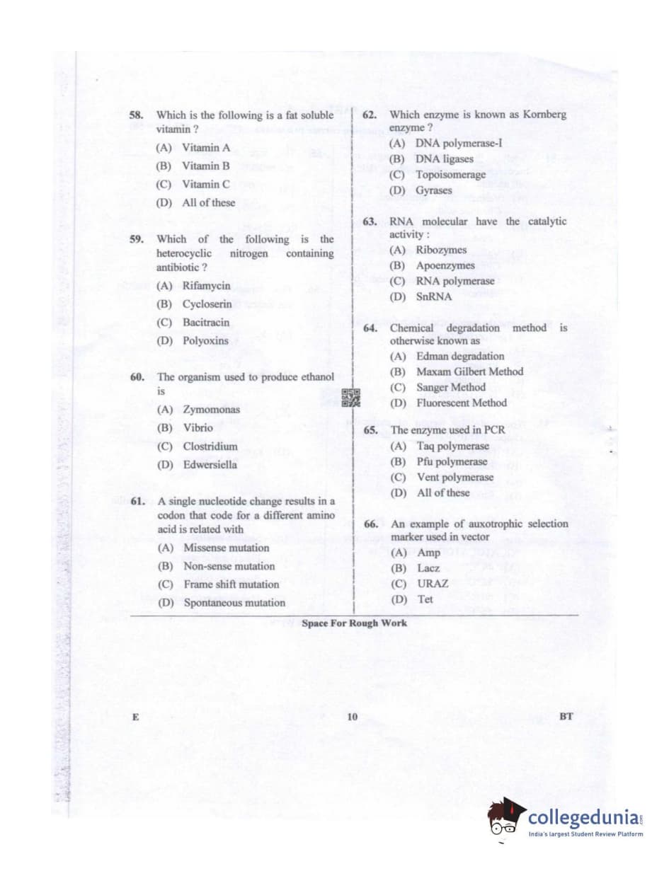 Karnataka PGCET 2019 Biotechnology Question Paper with Answer Key PDF for Afternoon Session