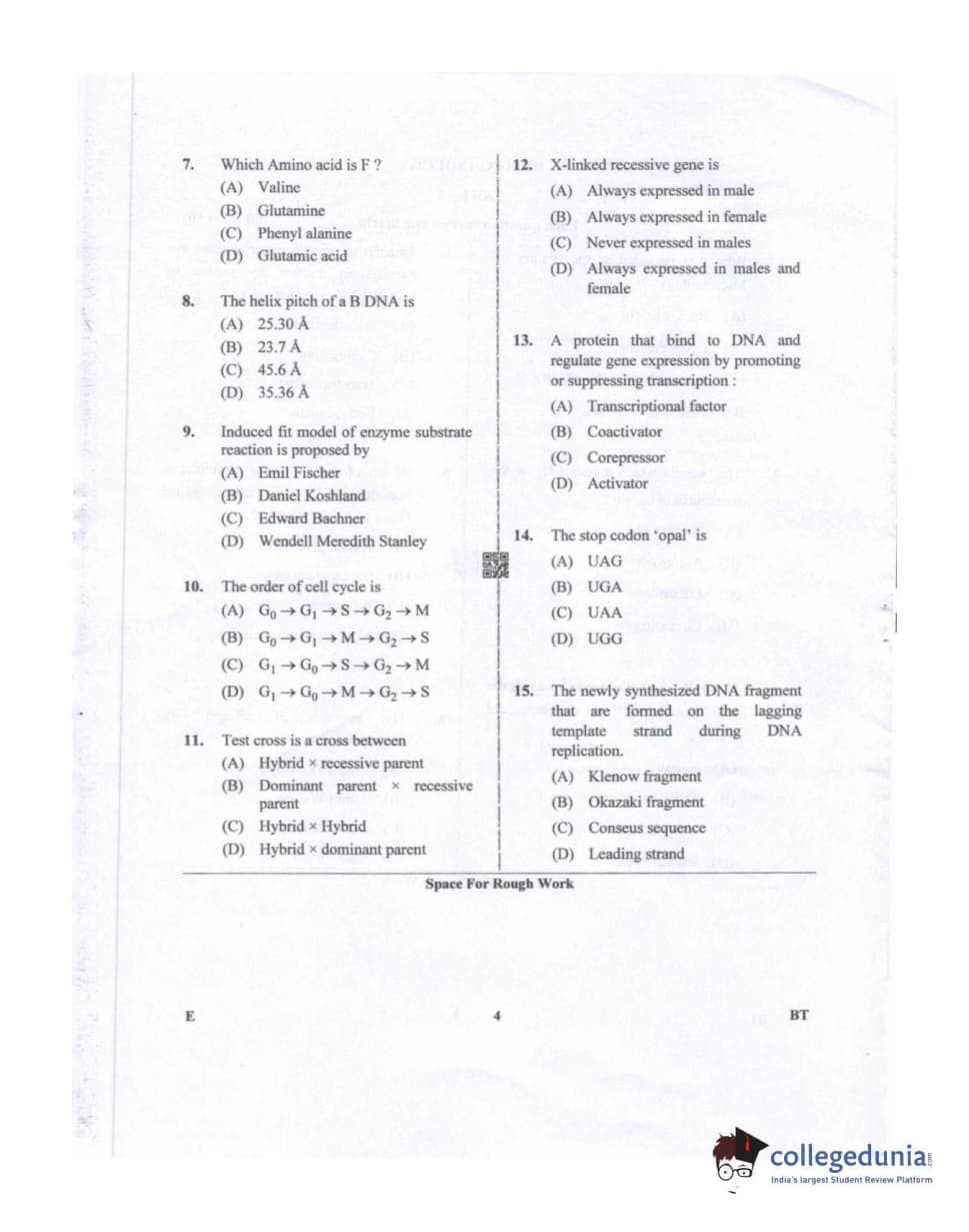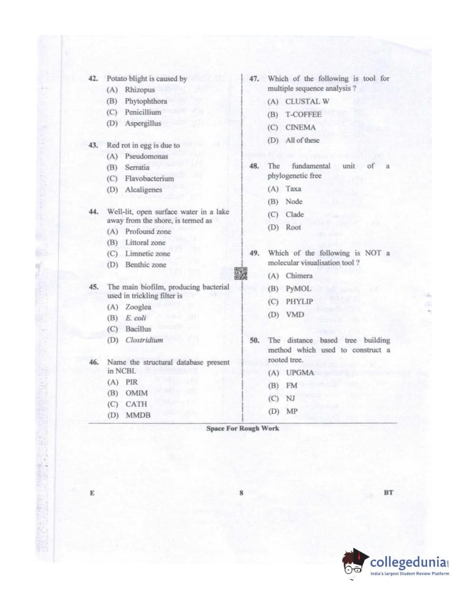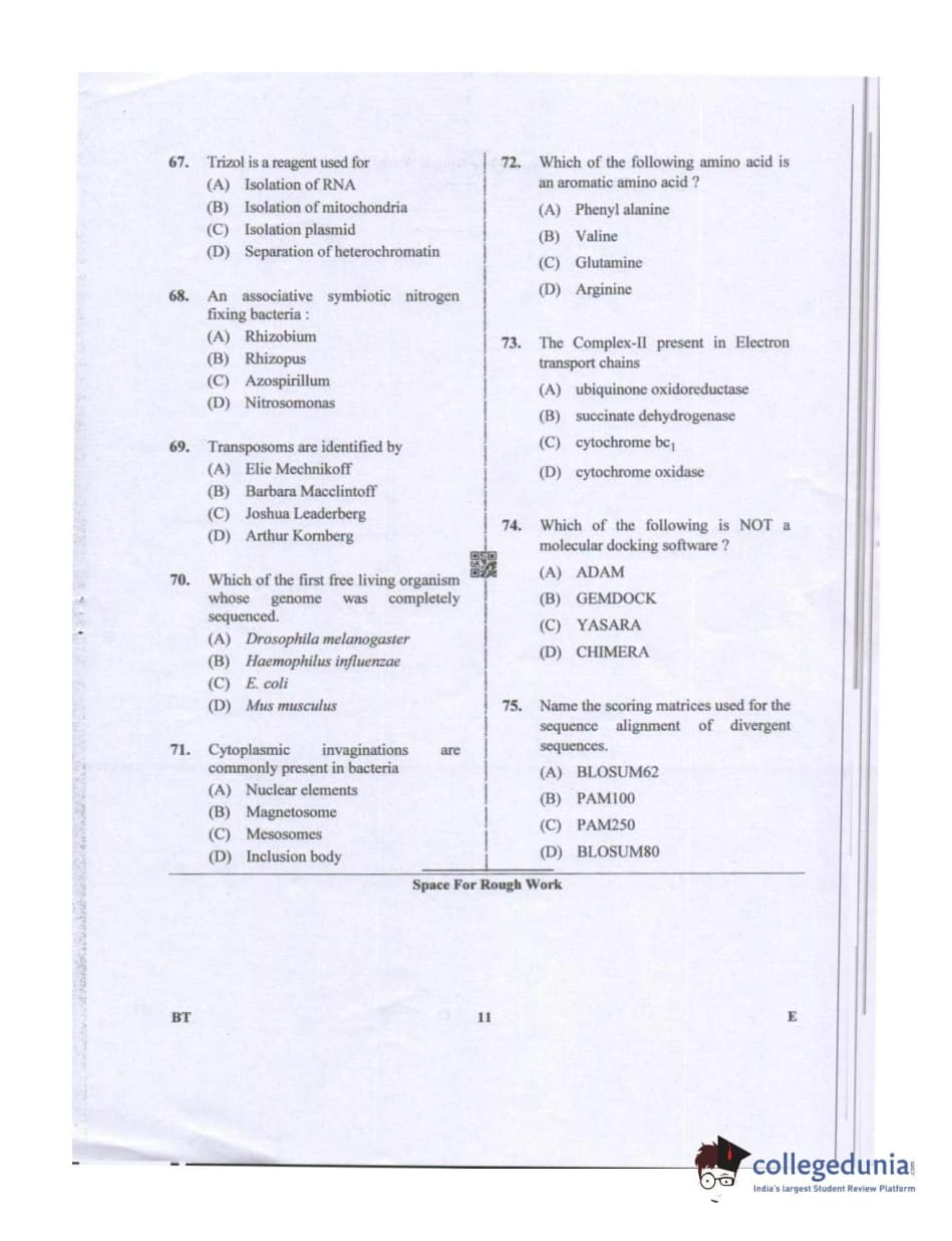 Karnataka PGCET 2019 Biotechnology Question Paper with Answer Key PDF for Afternoon Session