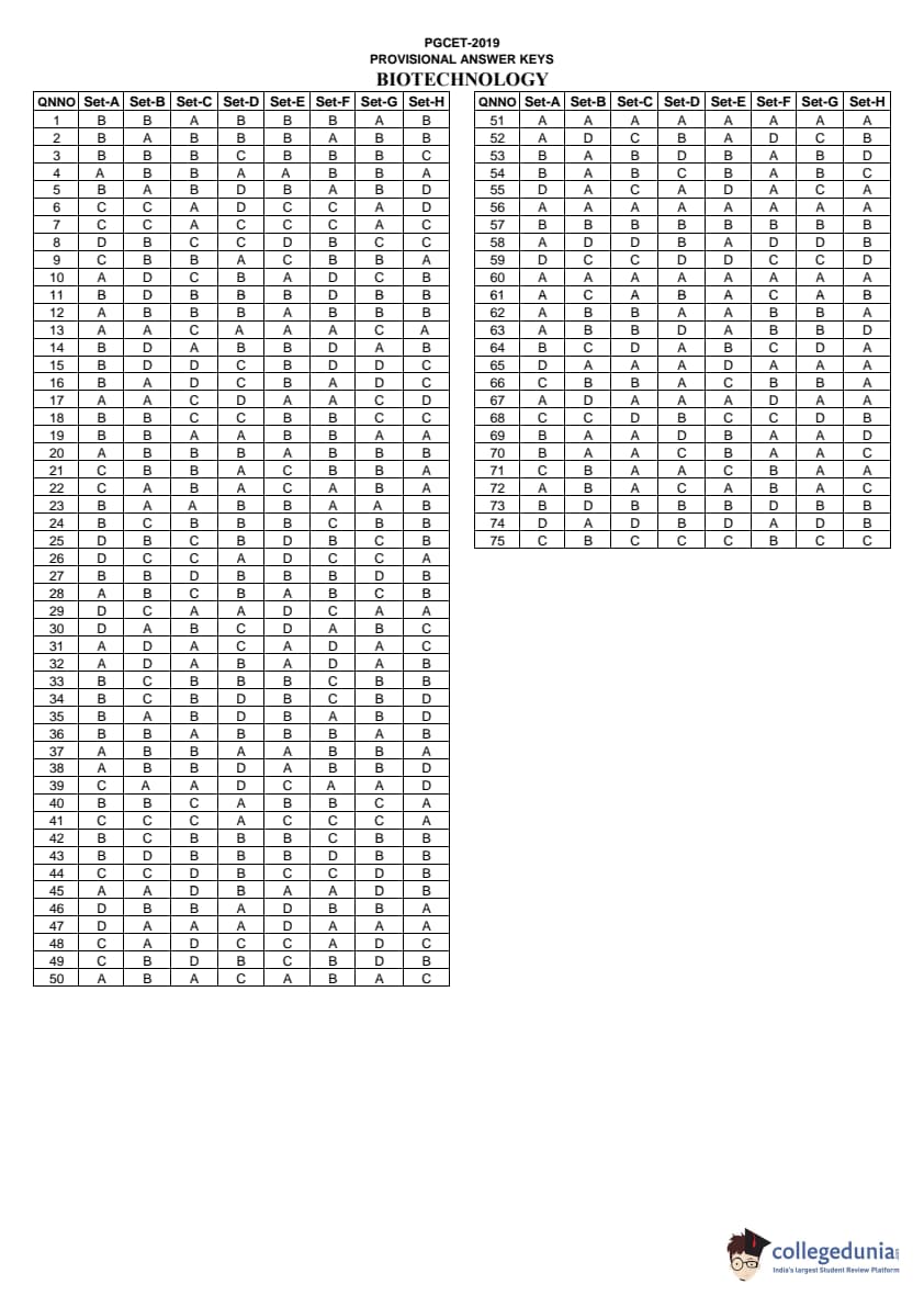 | Karnataka PGCET 2019 Biotechnology Question Paper PDF | Karnataka PGCET 2019 Biotechnology Answer Key PDF |